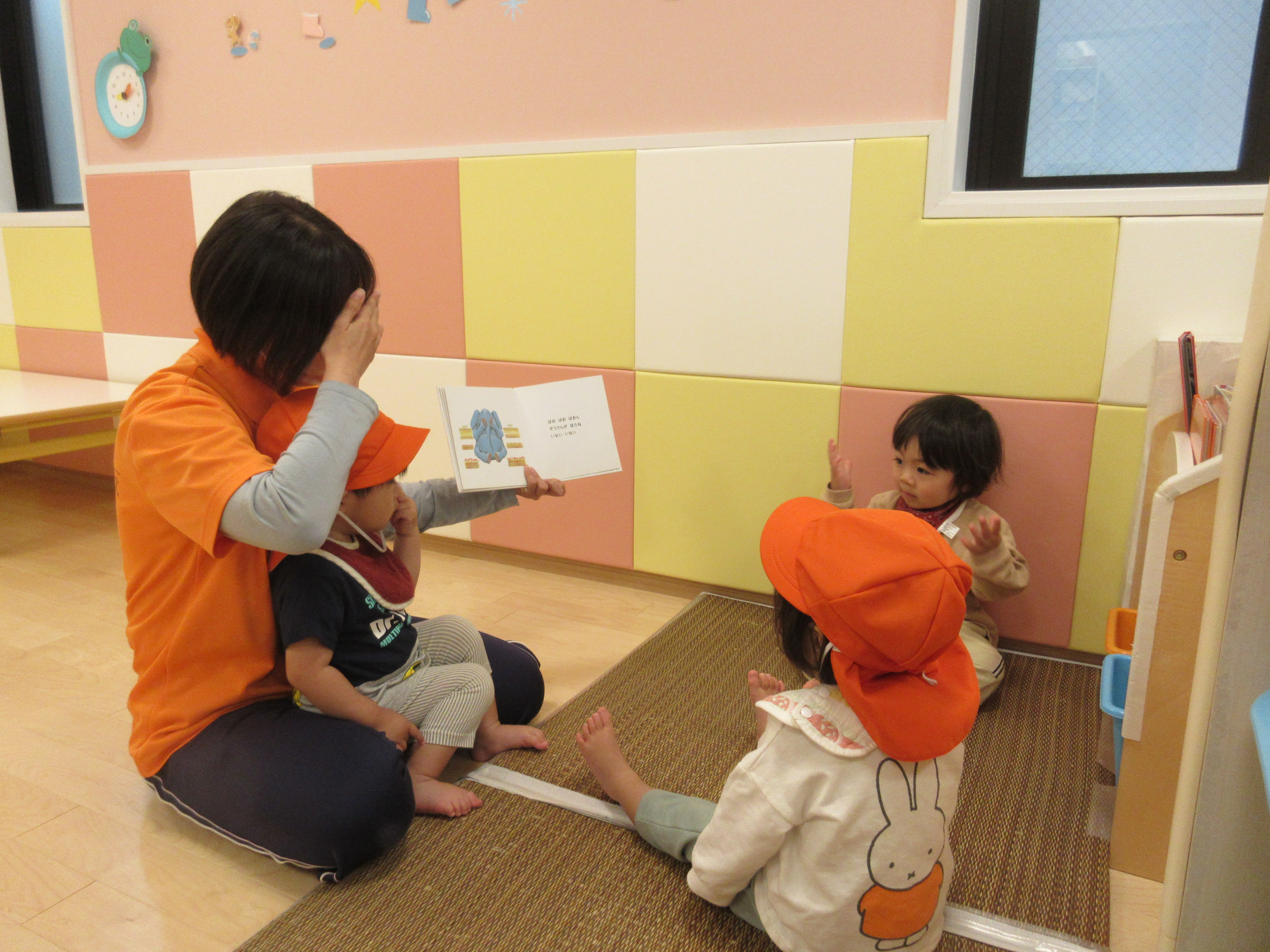 「いないいない」のところで真似をして自分の顔を隠す子もいましたよ![]()