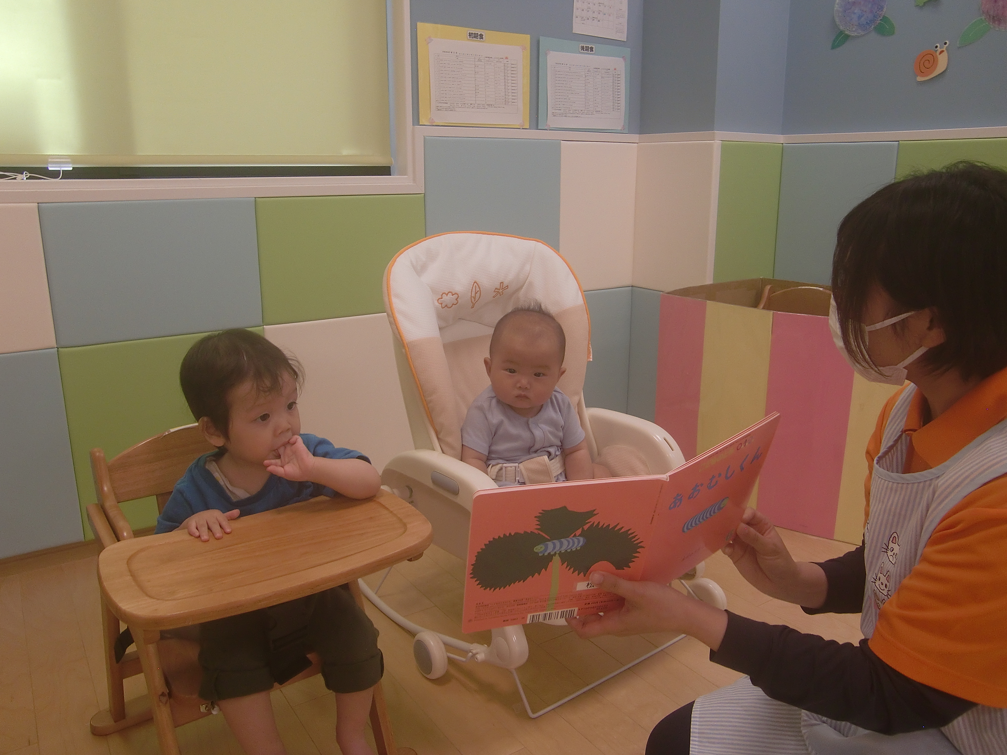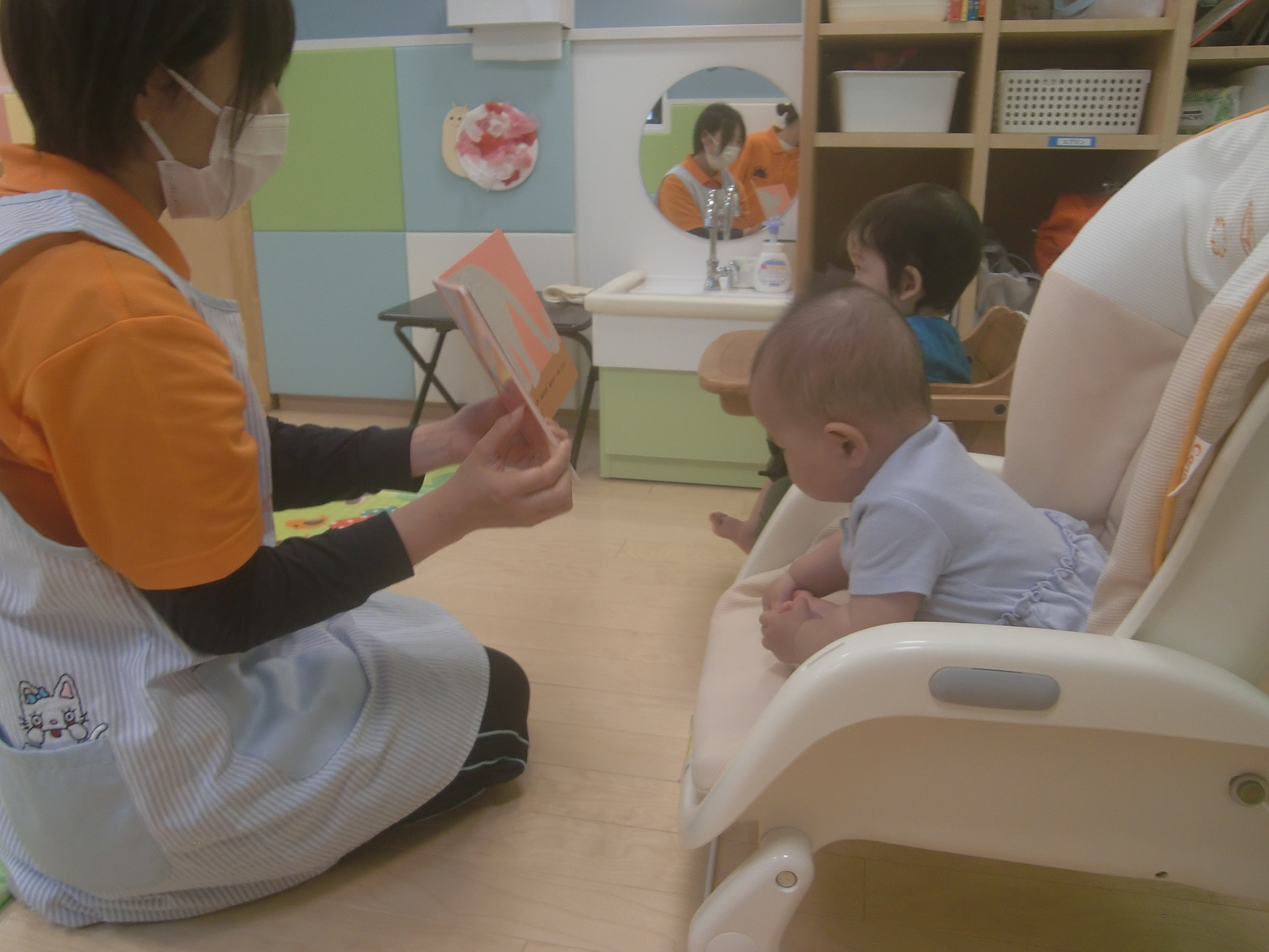 絵本の絵を見たり、保育士の顔を見たりと交互にちらちらと見ている姿も可愛かったです![]()