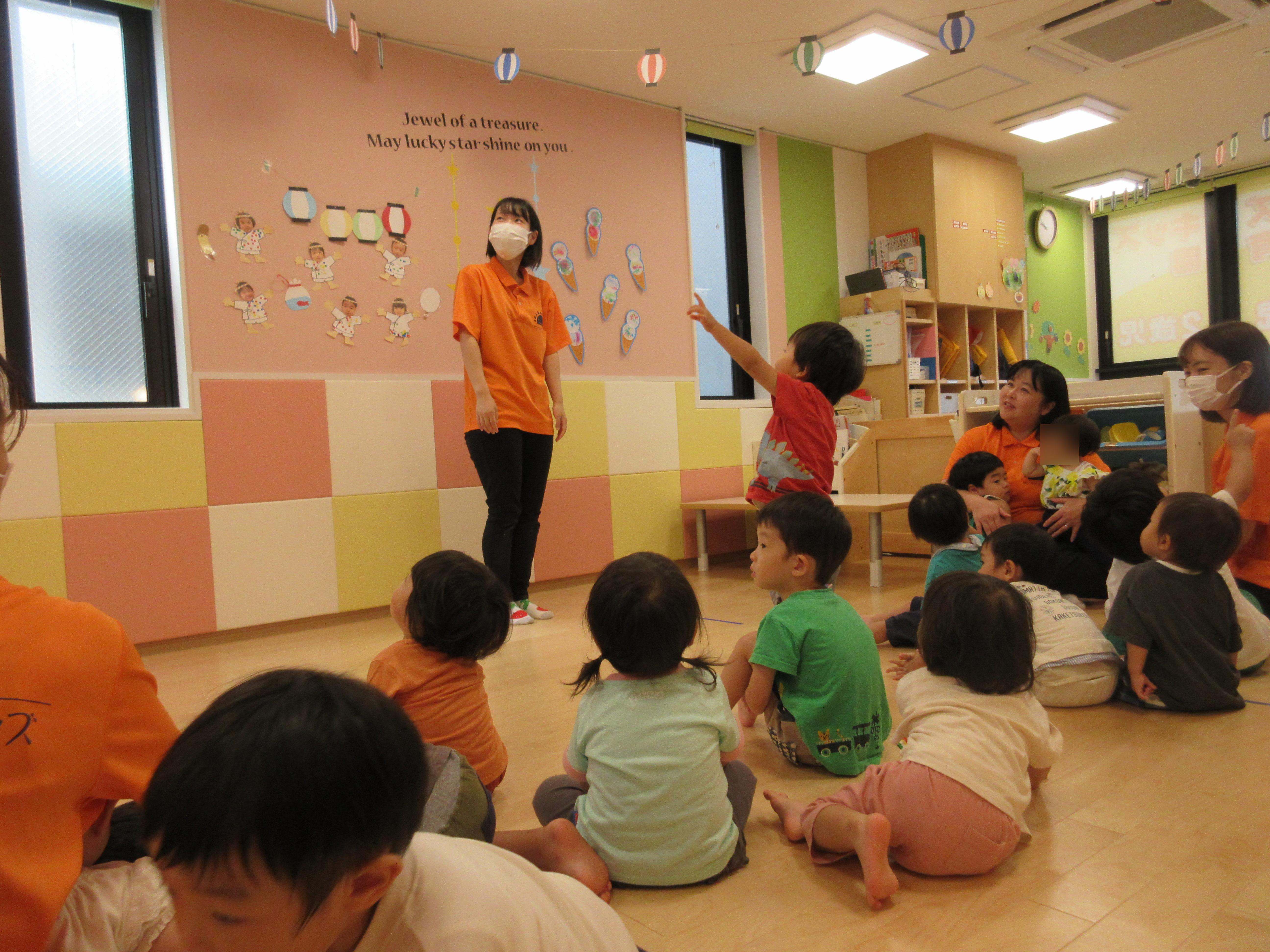 お部屋のちょうちん飾りに気が付いた子どもたち![]()