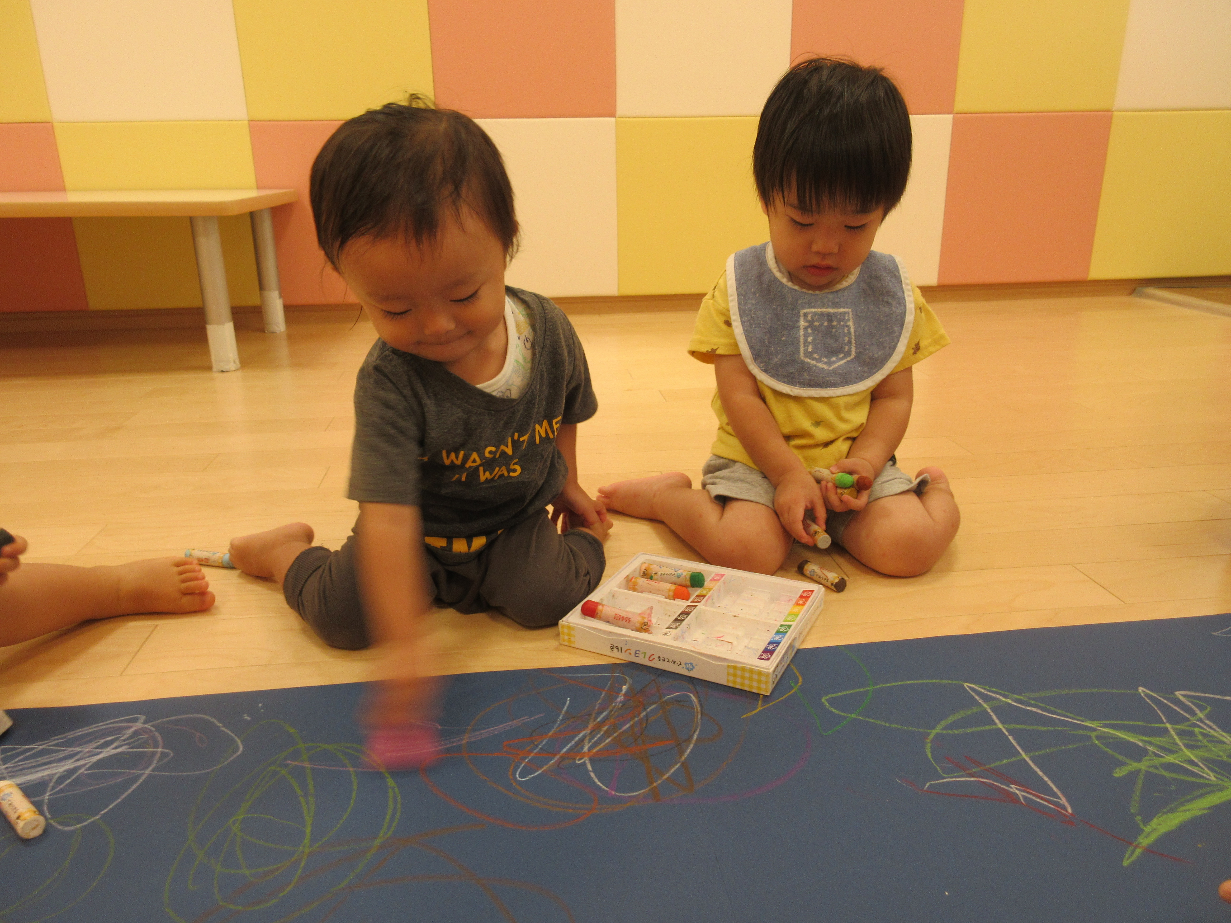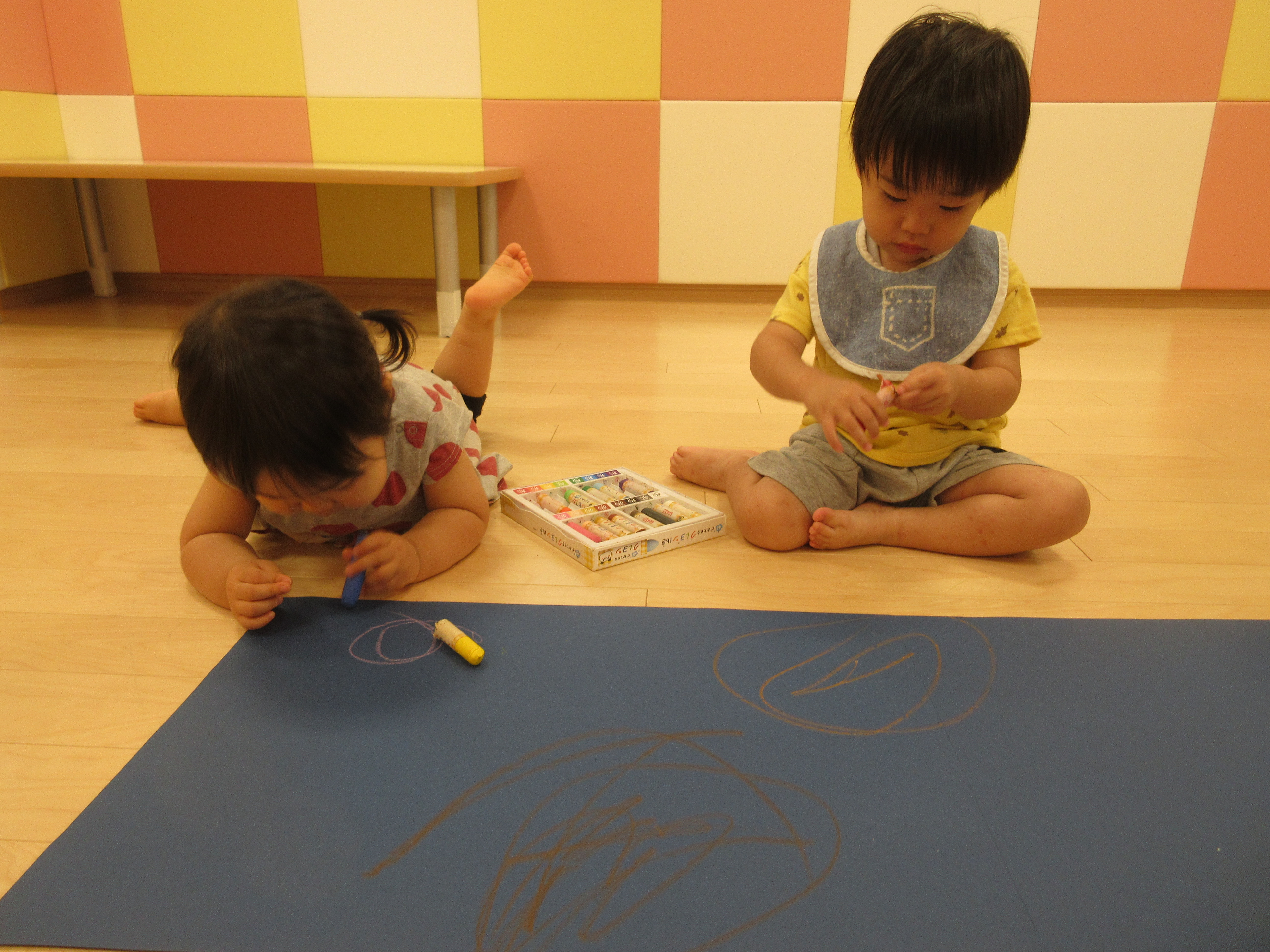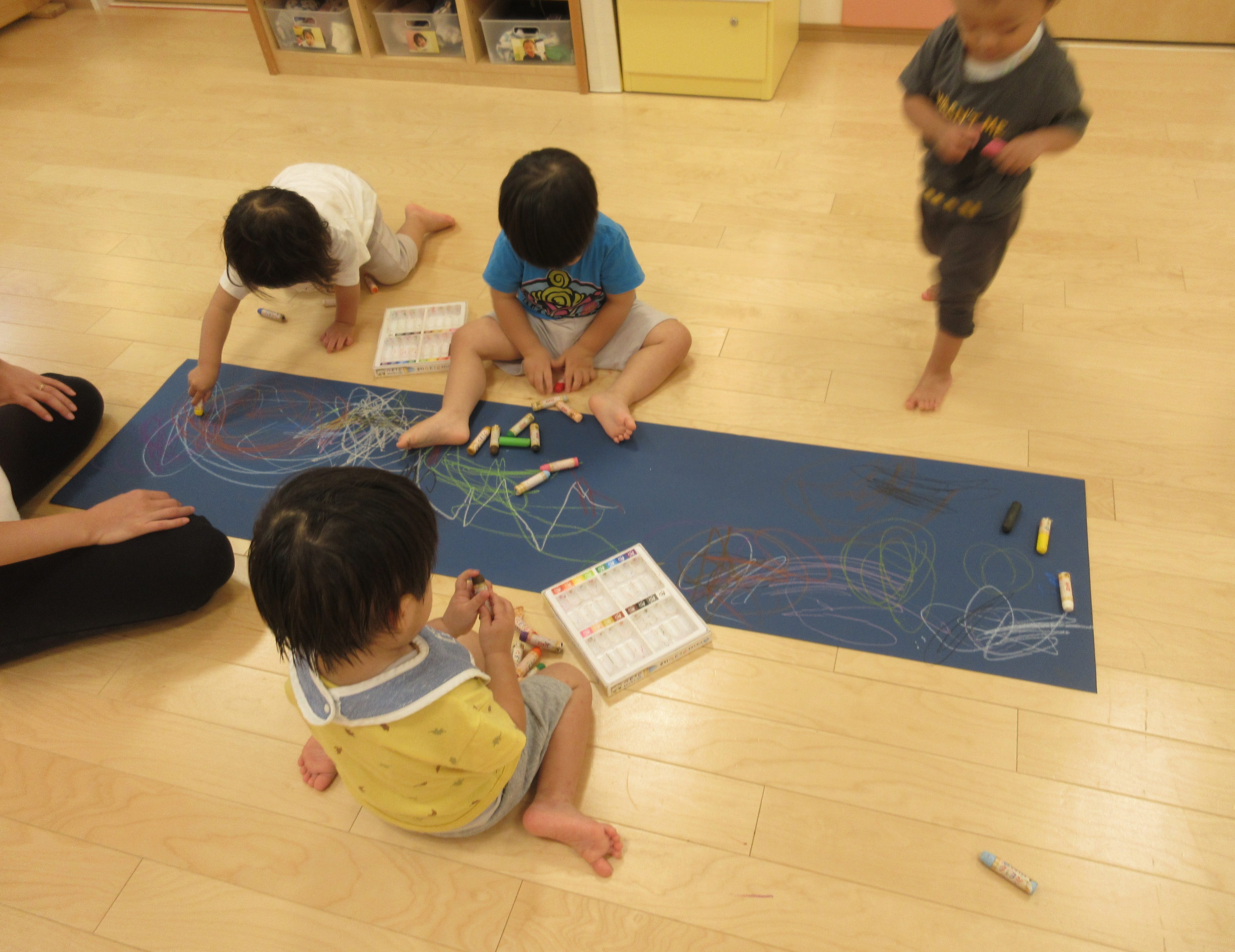 大きな画用紙に好きな色のクレヨンで描いていきます![]()
