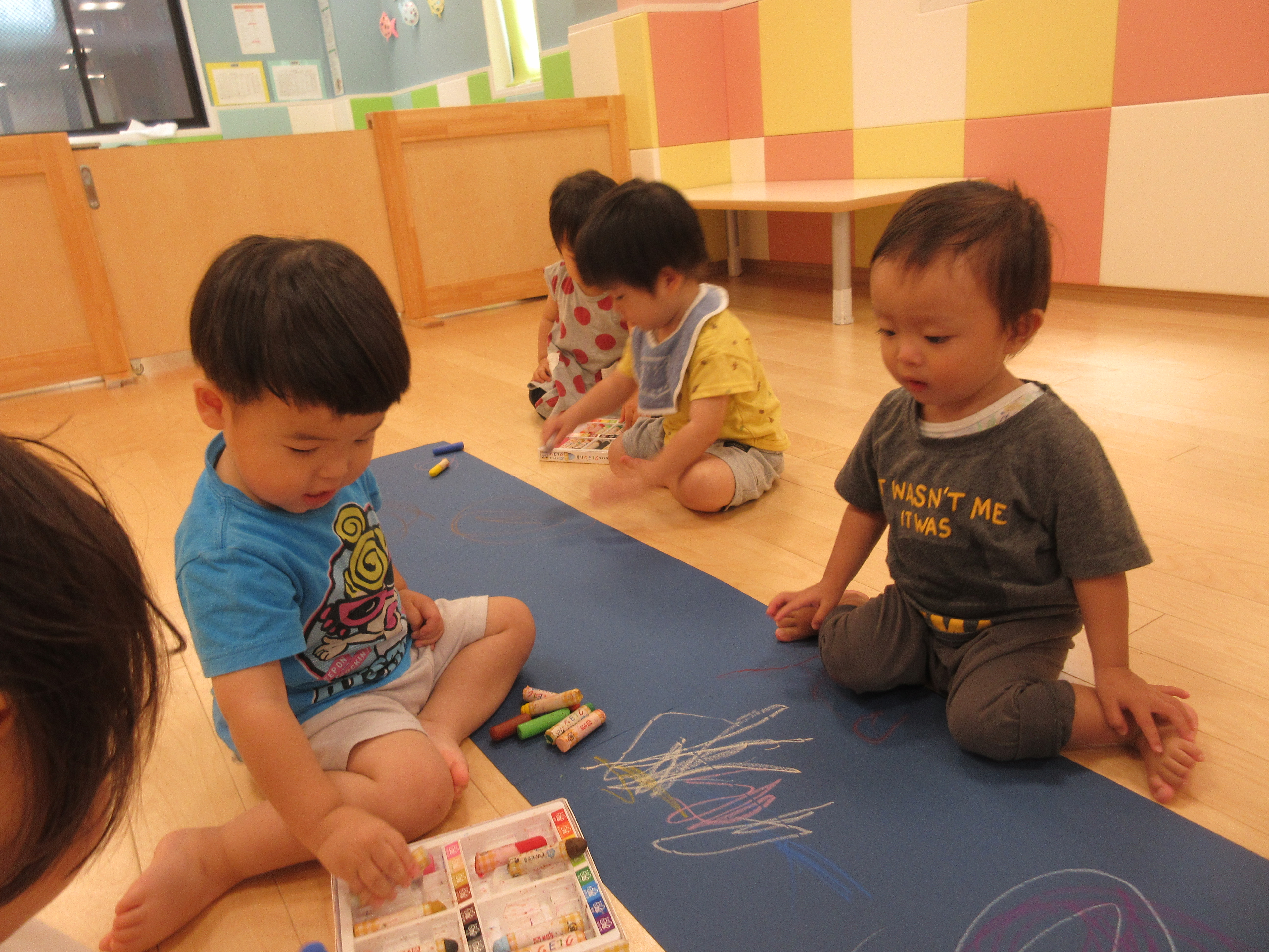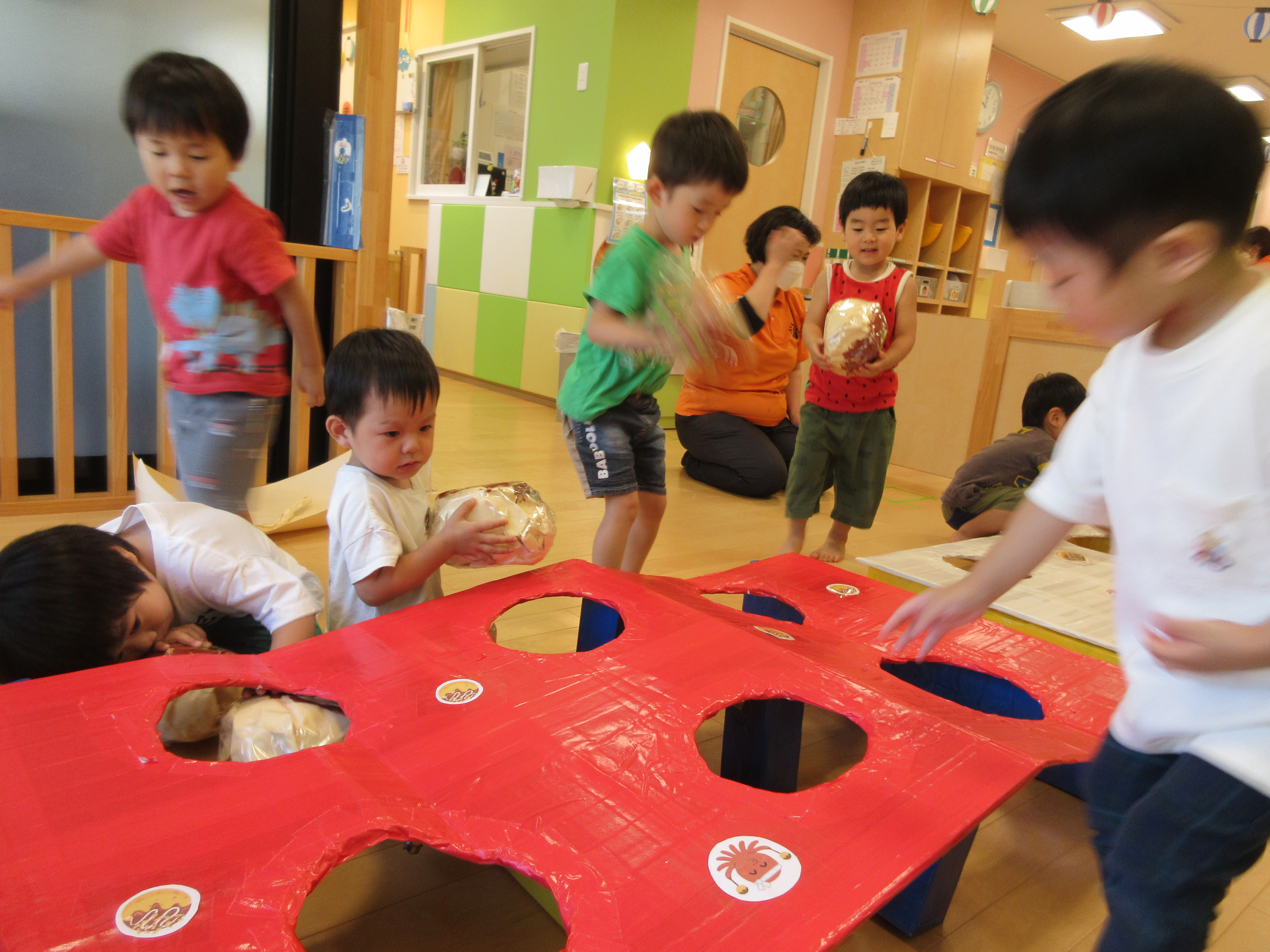 お休みの際に 花火を見た というお話も多く、「花火作ろうね」と声をかけると「はなび~」「ど~ん!!」と口にする子もいました![]()