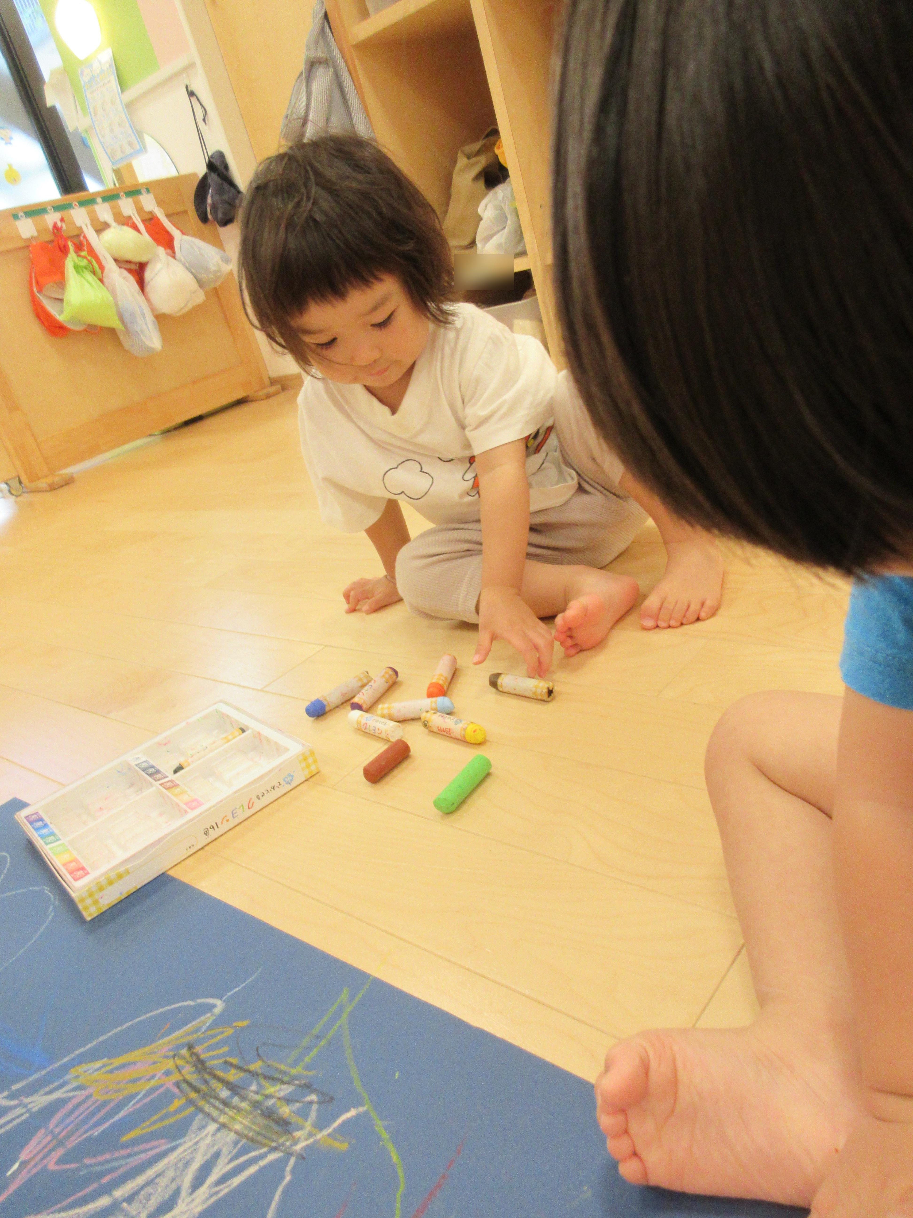「赤色がいい人~!」「青色がいい人~!」と先生が聞くと好きな色の時に元気よく「はーい」と手を挙げて返事をしてくれたりんごぐみさんです![]()