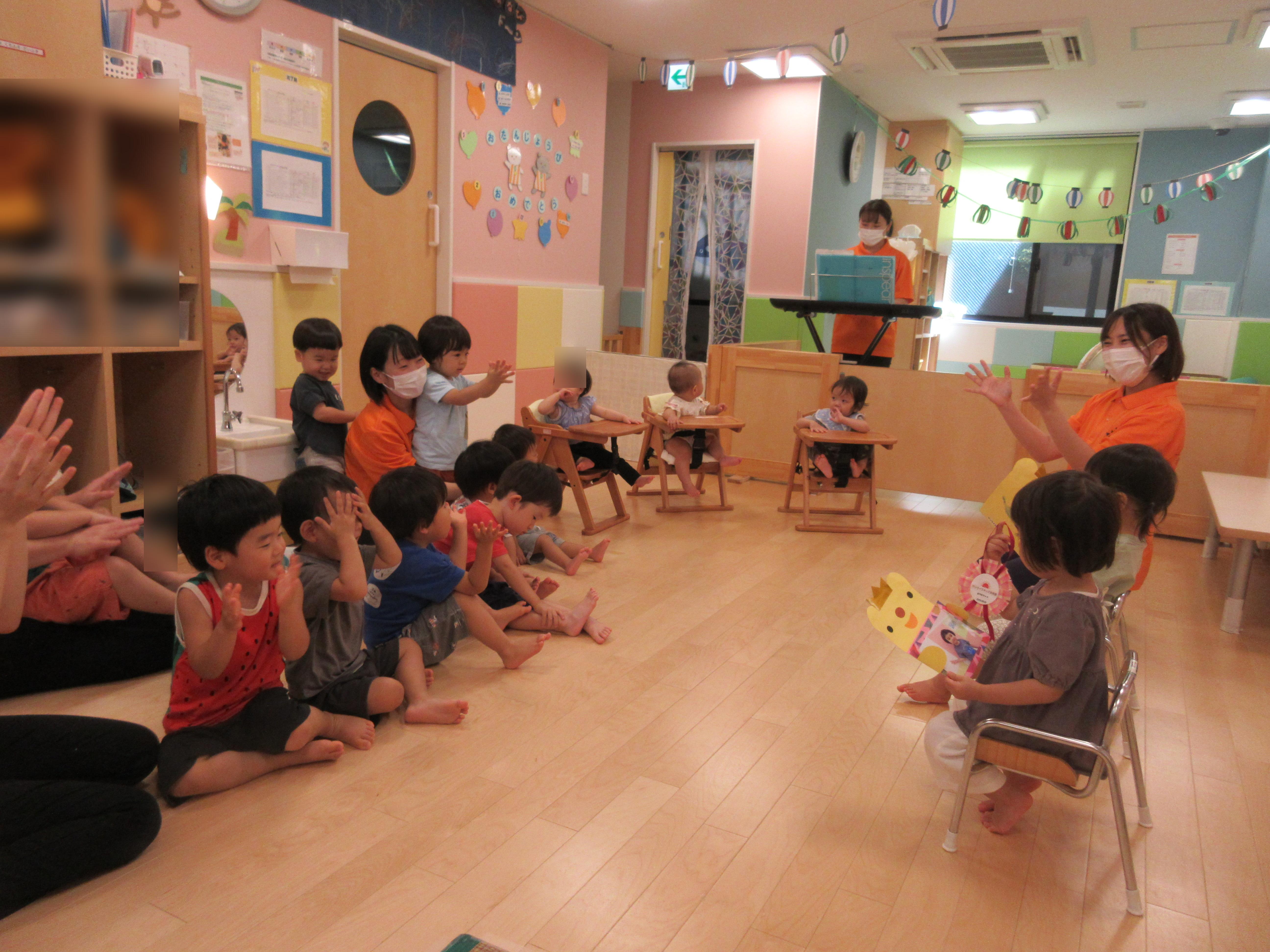 手をパチパチとたたいてお友だちをお祝いしていましたよ![]()