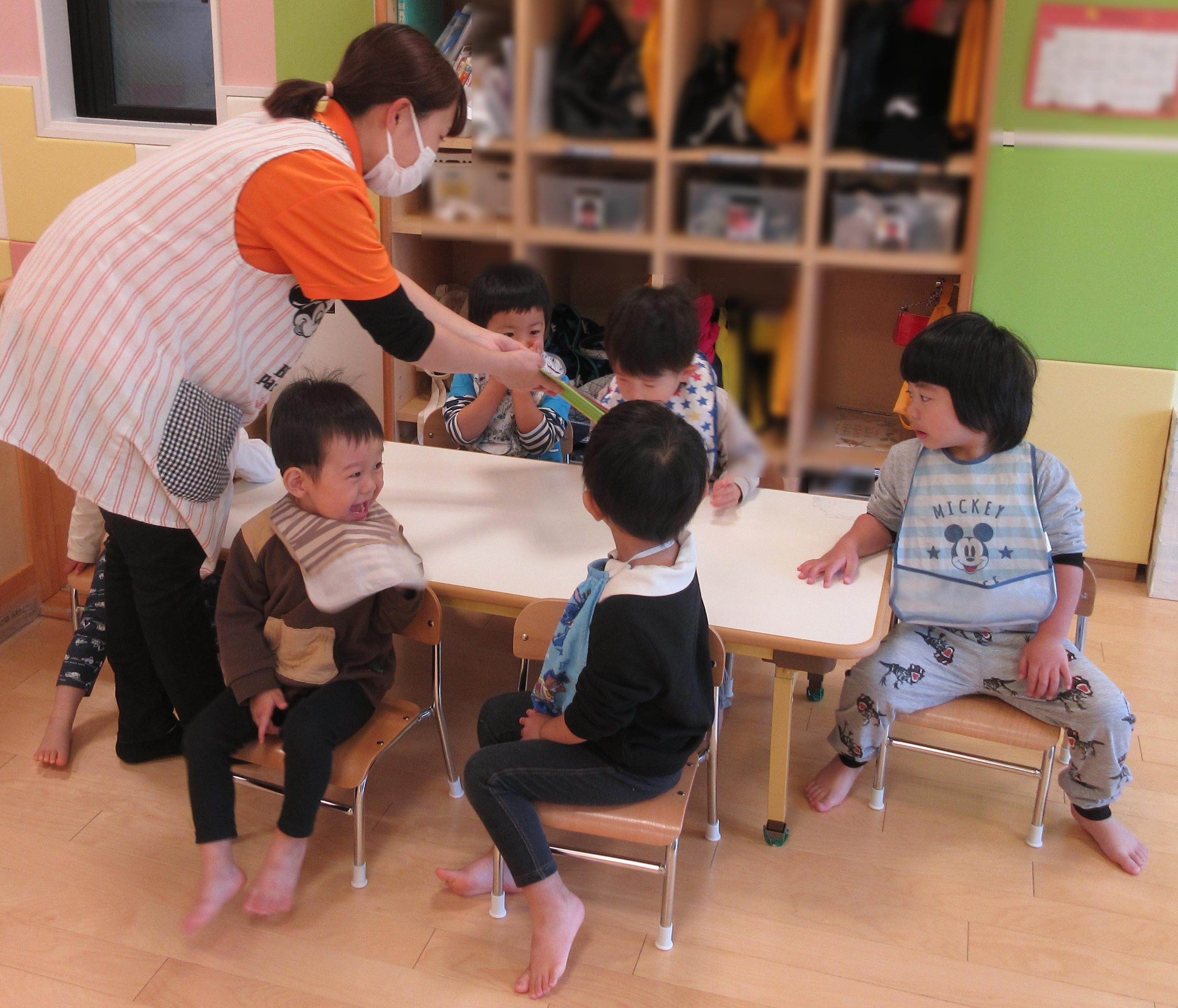 コロッケを作るお話で、おいしそうな表紙に子どもたちも本棚から手に取って見ていました