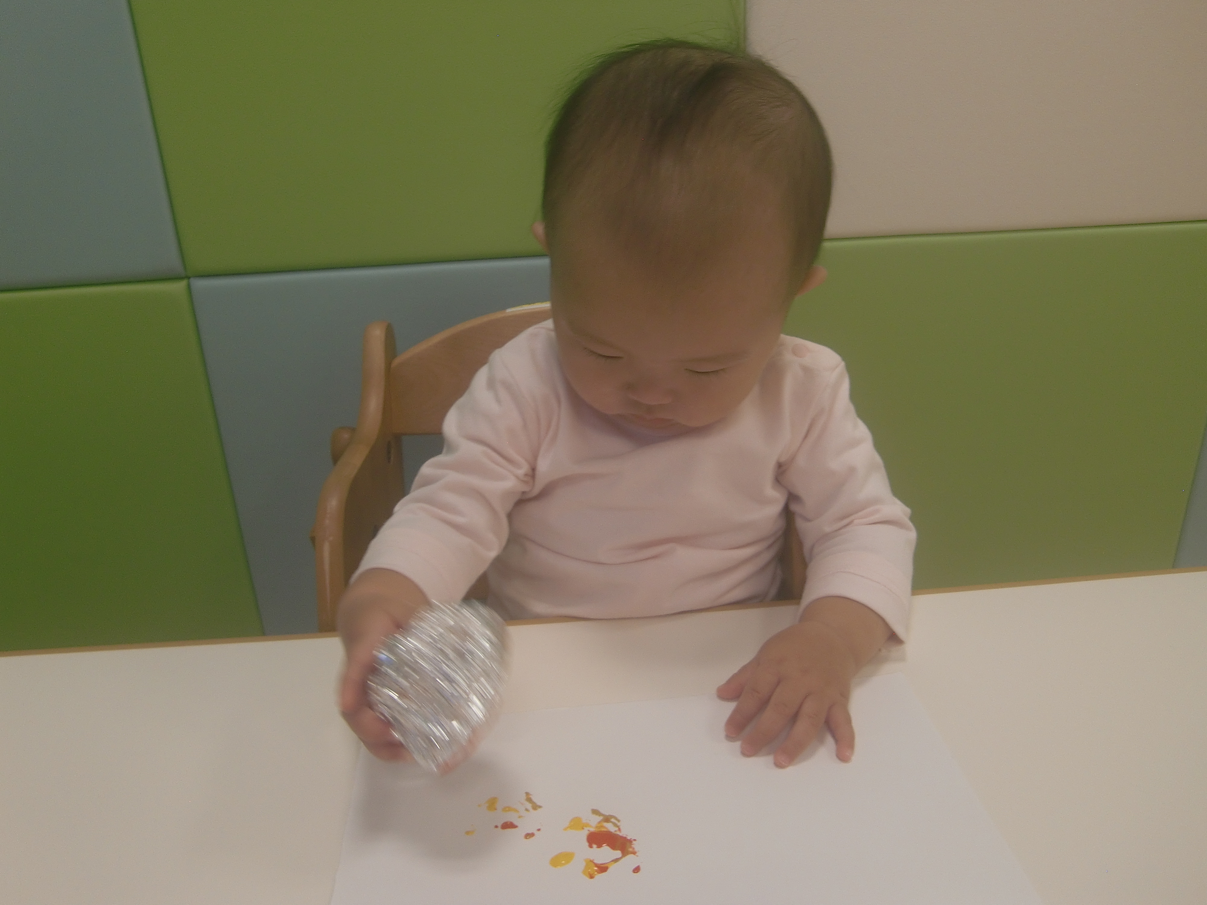 ⇩アルミホイルが掴みやすのか、ぎゅっと握ってペタペタと沢山スタンプしてくれました![]()
