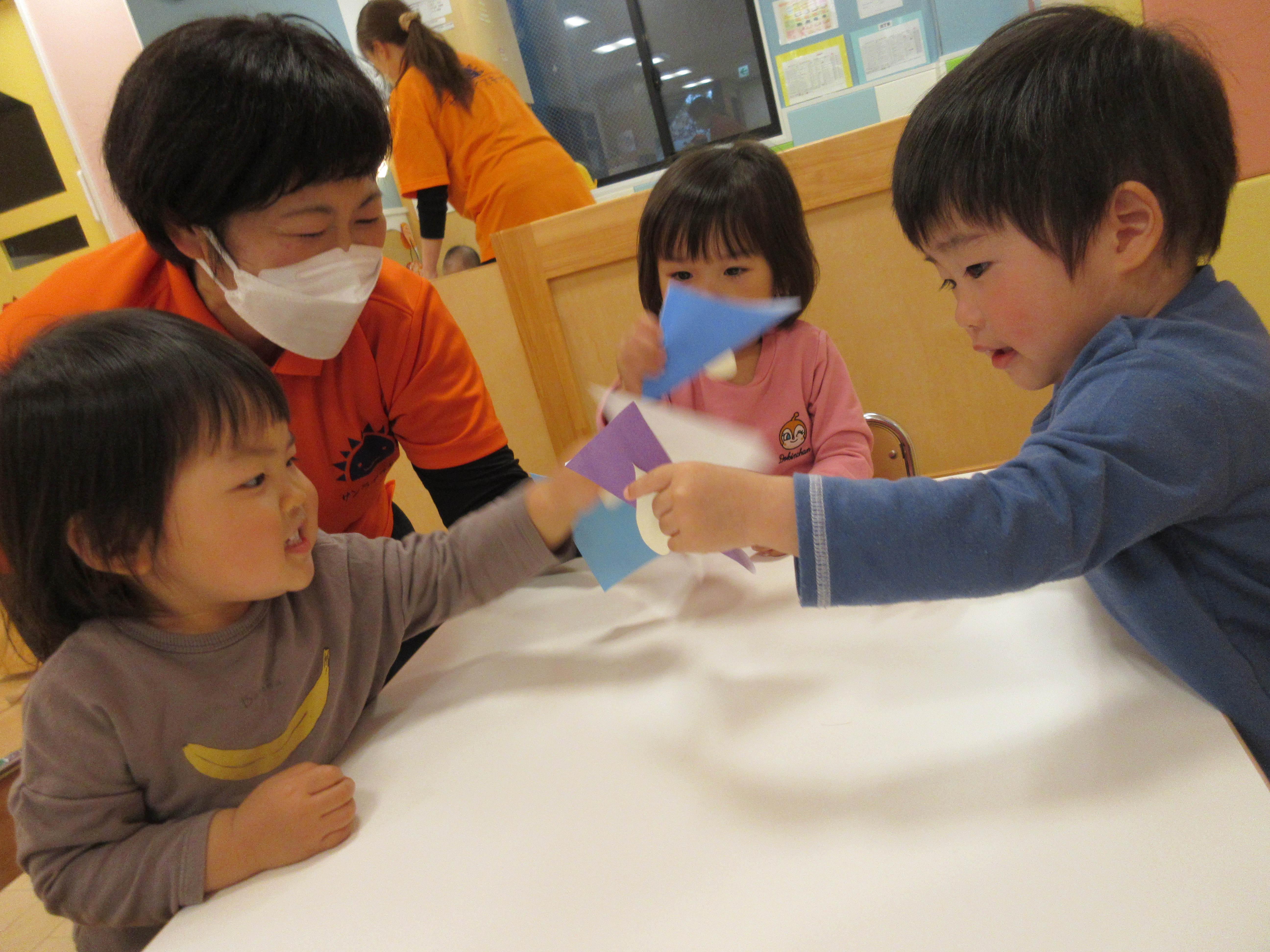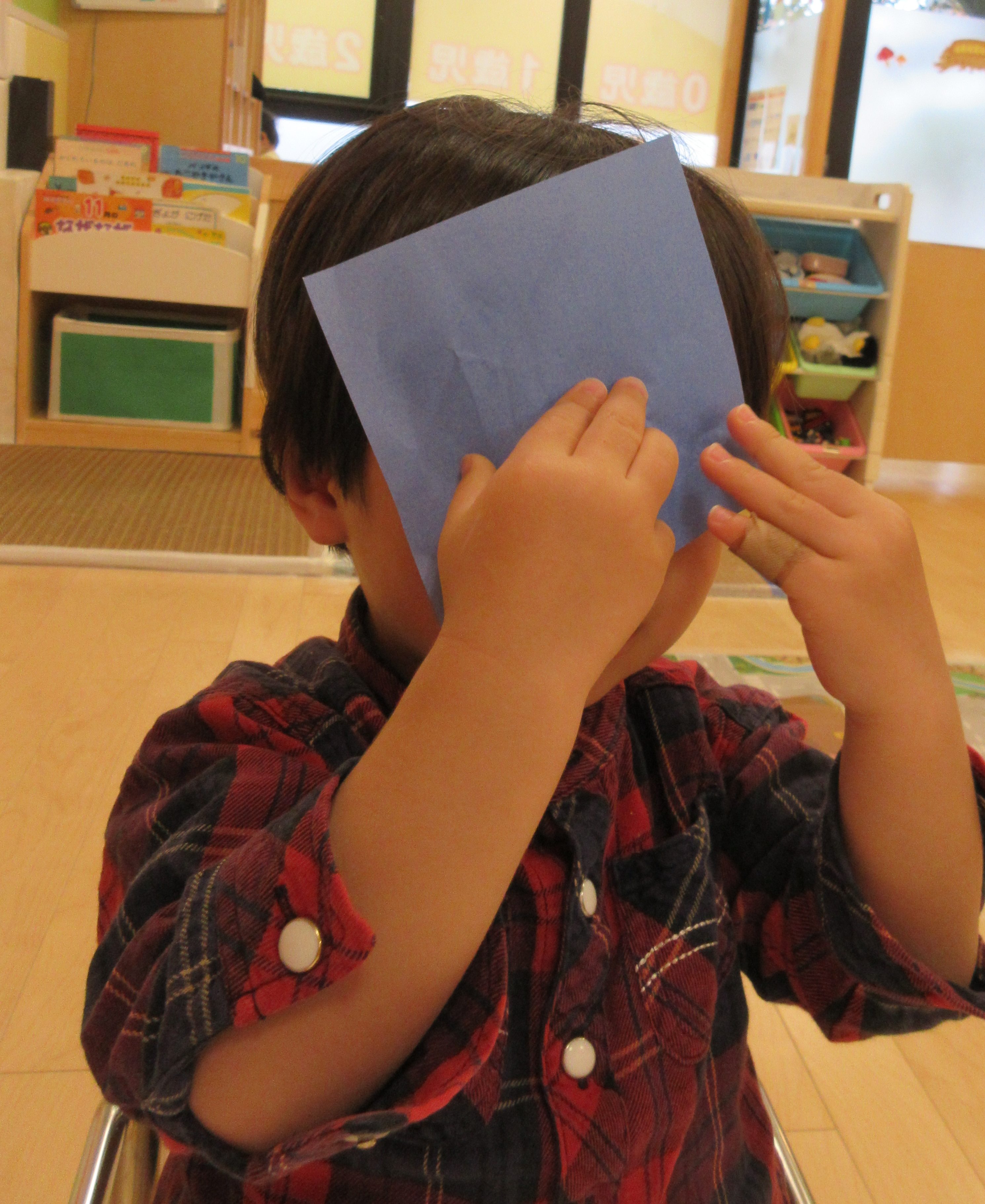 ⇩折り紙で顔を隠している子もいましたよ![]()