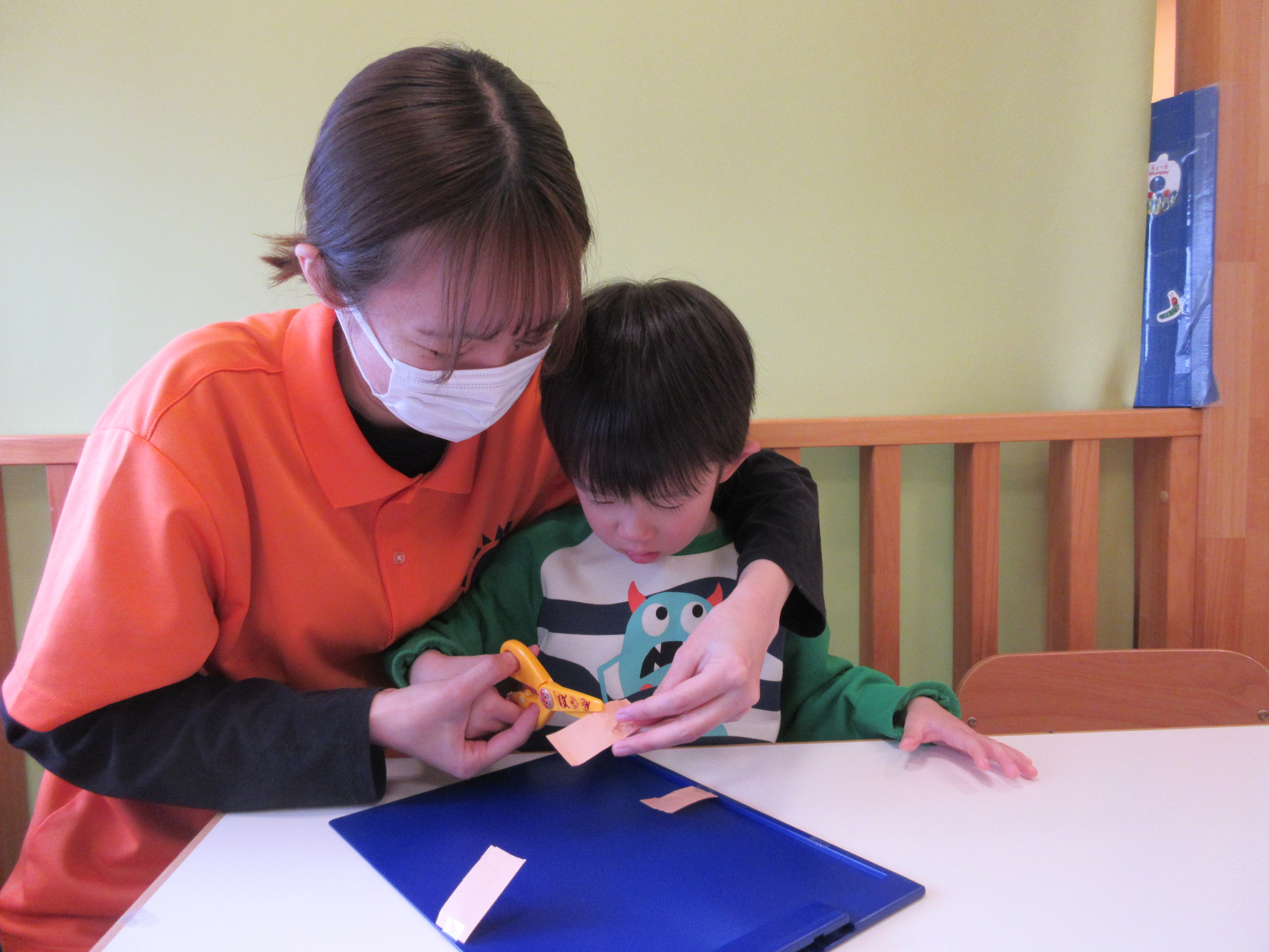 今回少しでしたがハサミを使って製作を行なったので卒園までの製作の中でまた、ハサミを使った製作を取り入れていくことができればと思っています