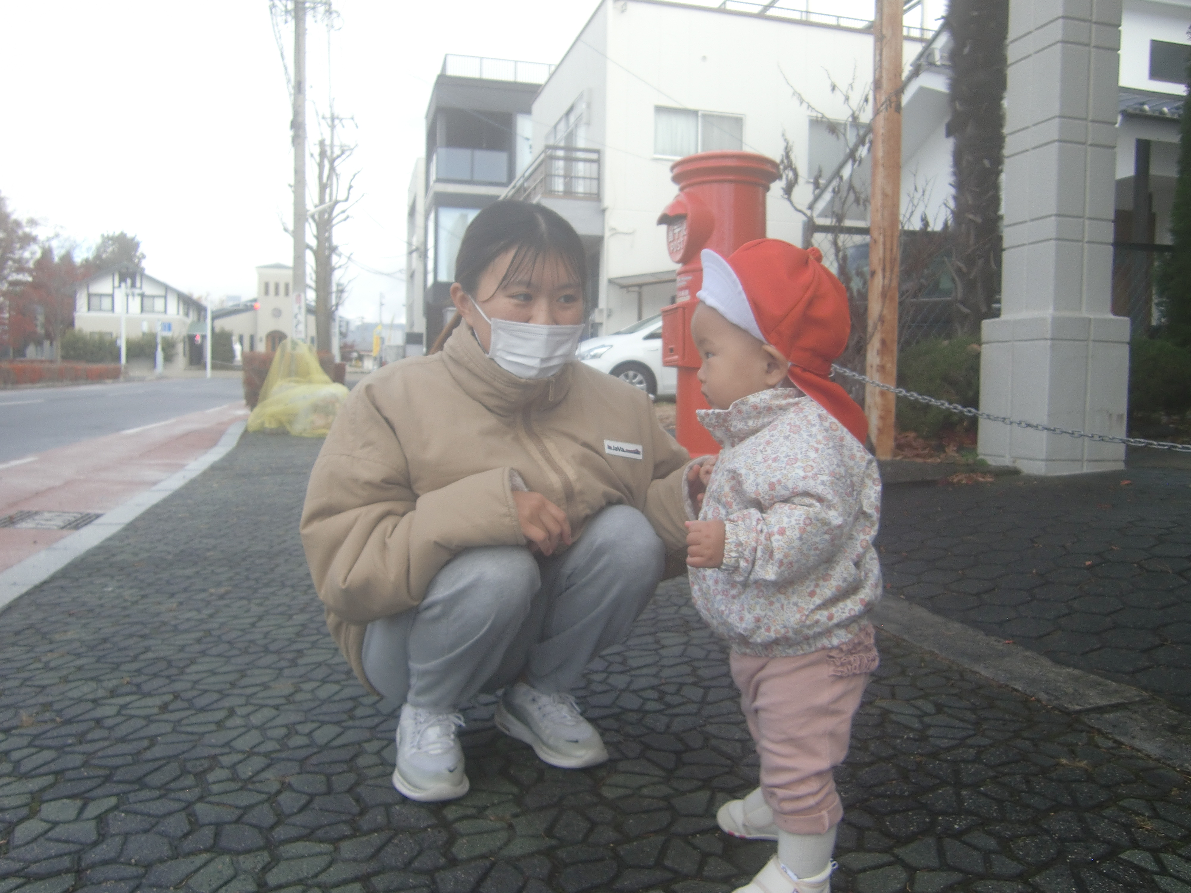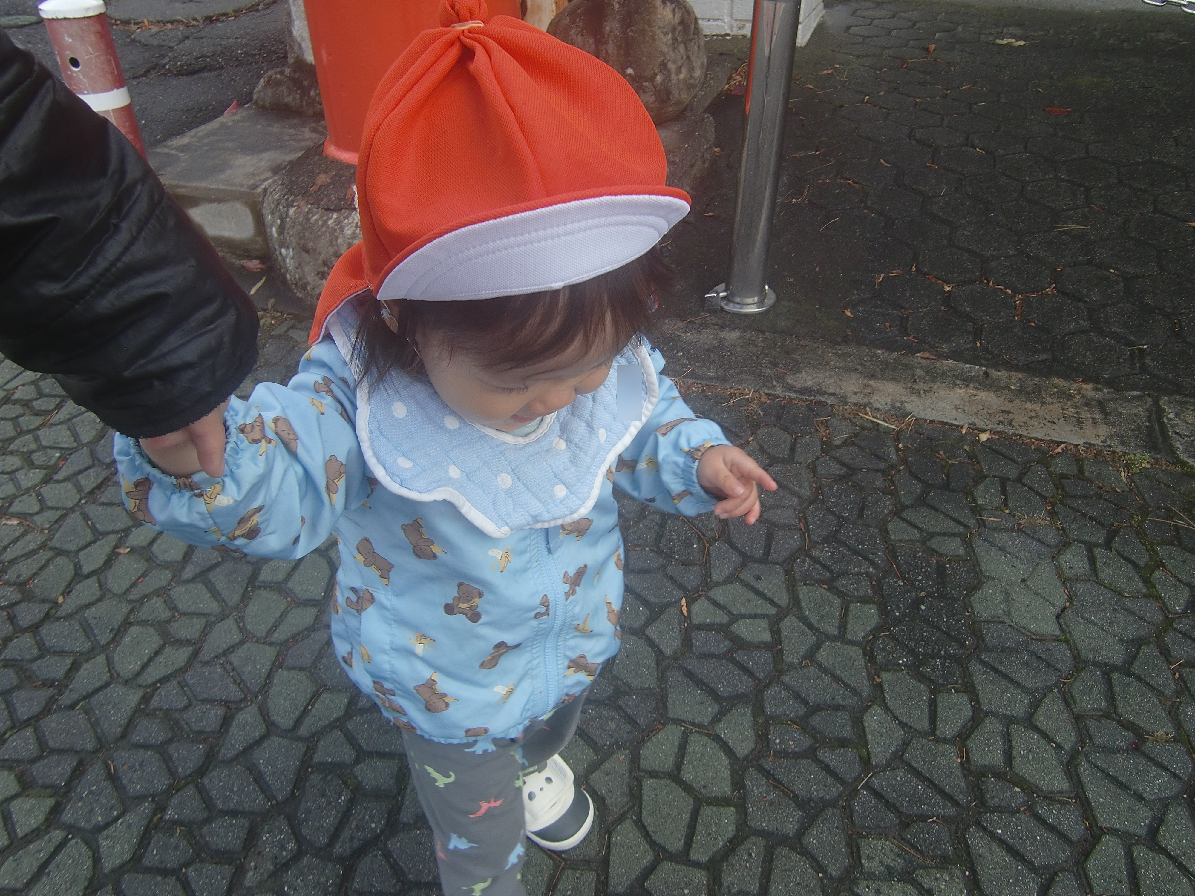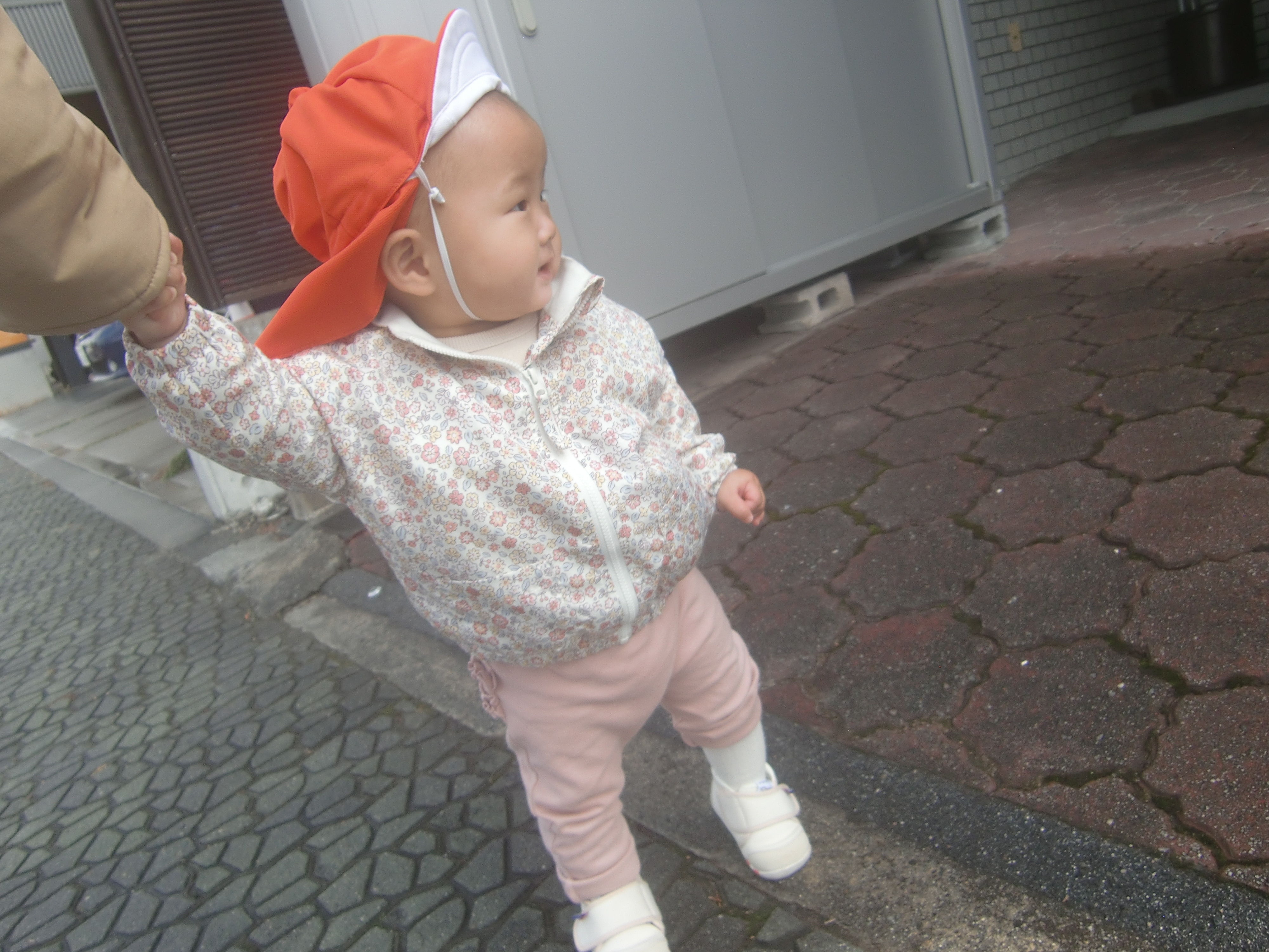 外を歩けることが嬉しいのか、保育園を出発する前からニコニコと笑っていました![]()