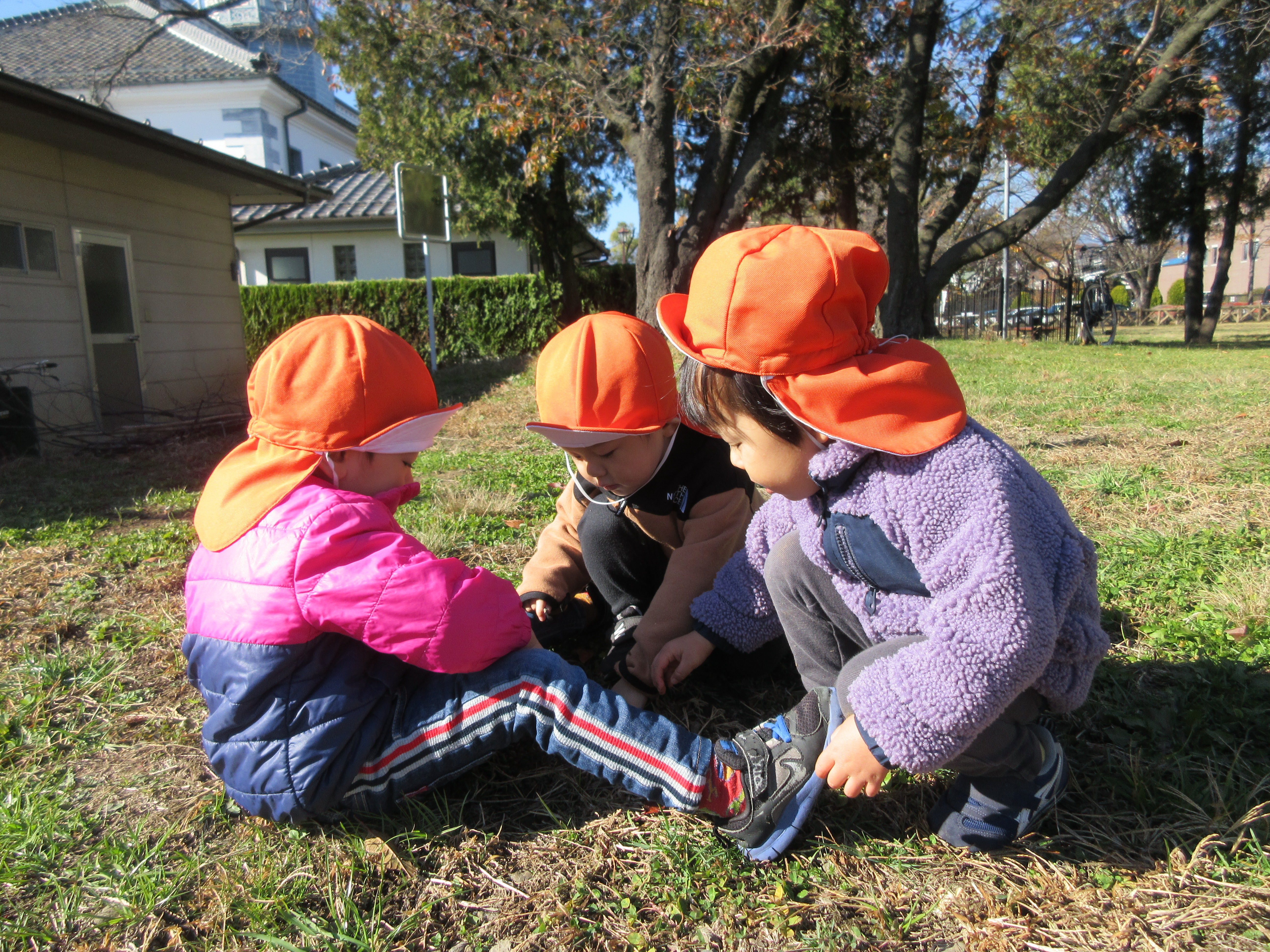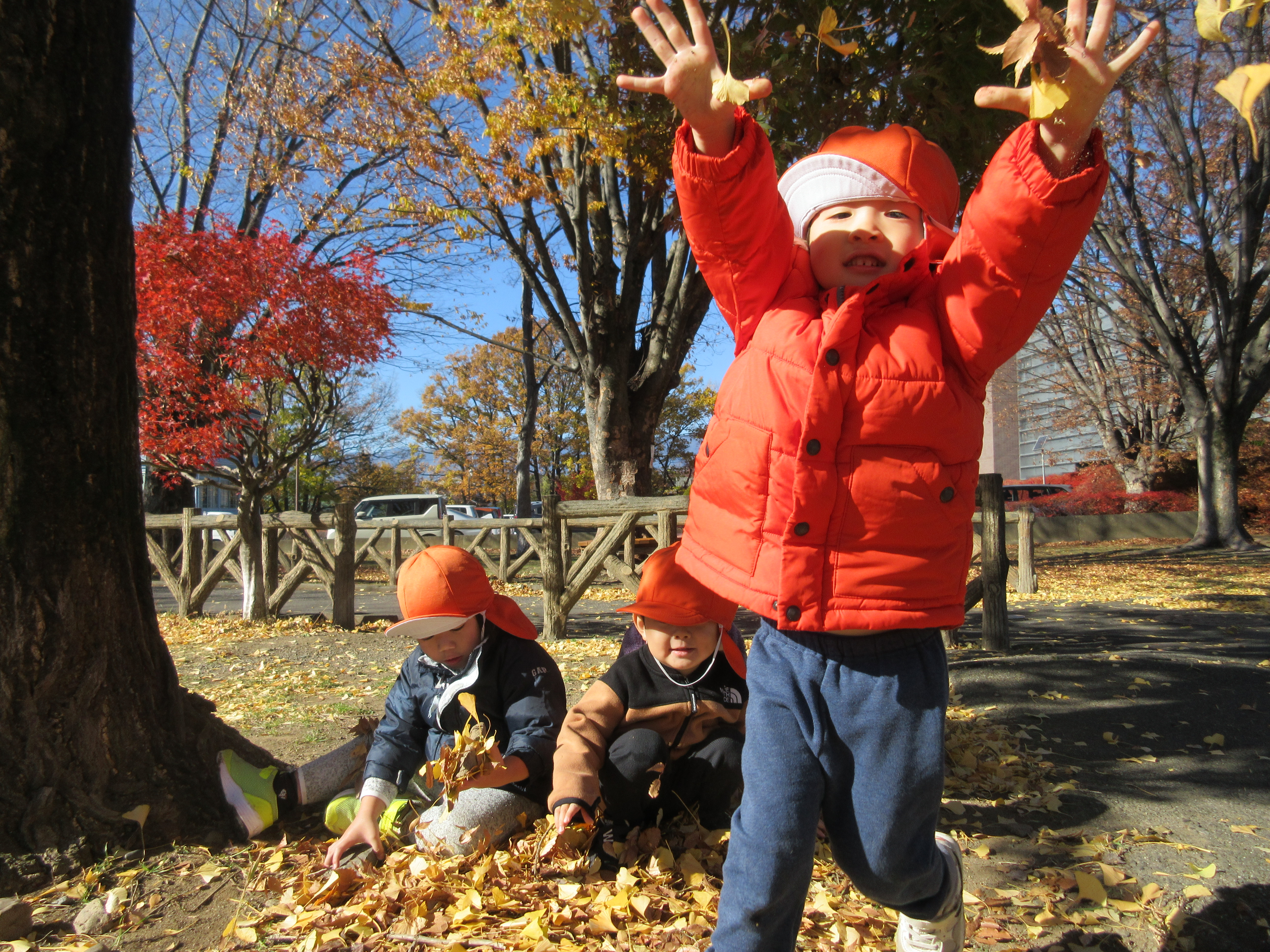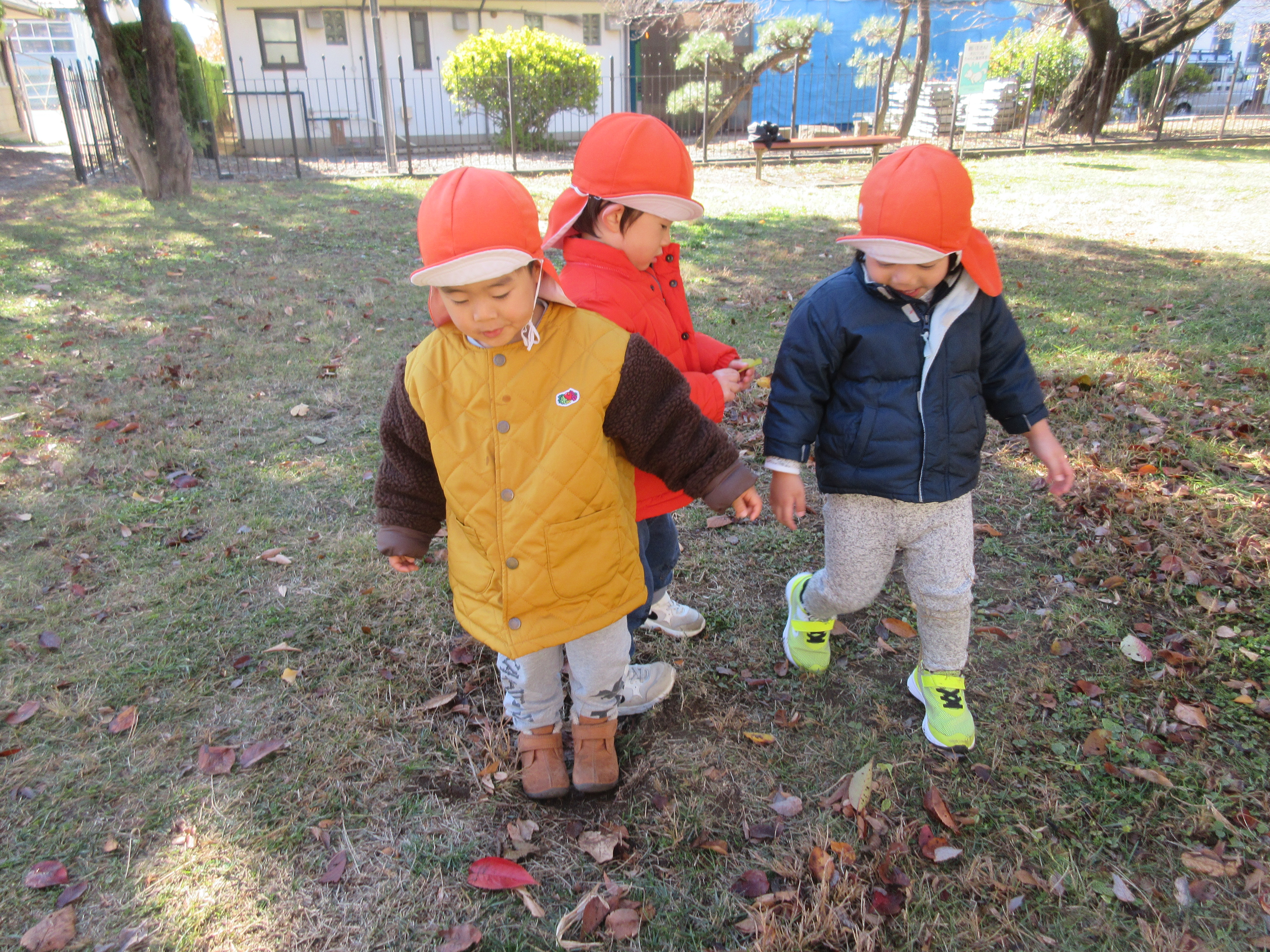 ⇧穴の中に落ち葉がたまってふわふわに…感触がおもしろくてみんなで踏んでいます![]()