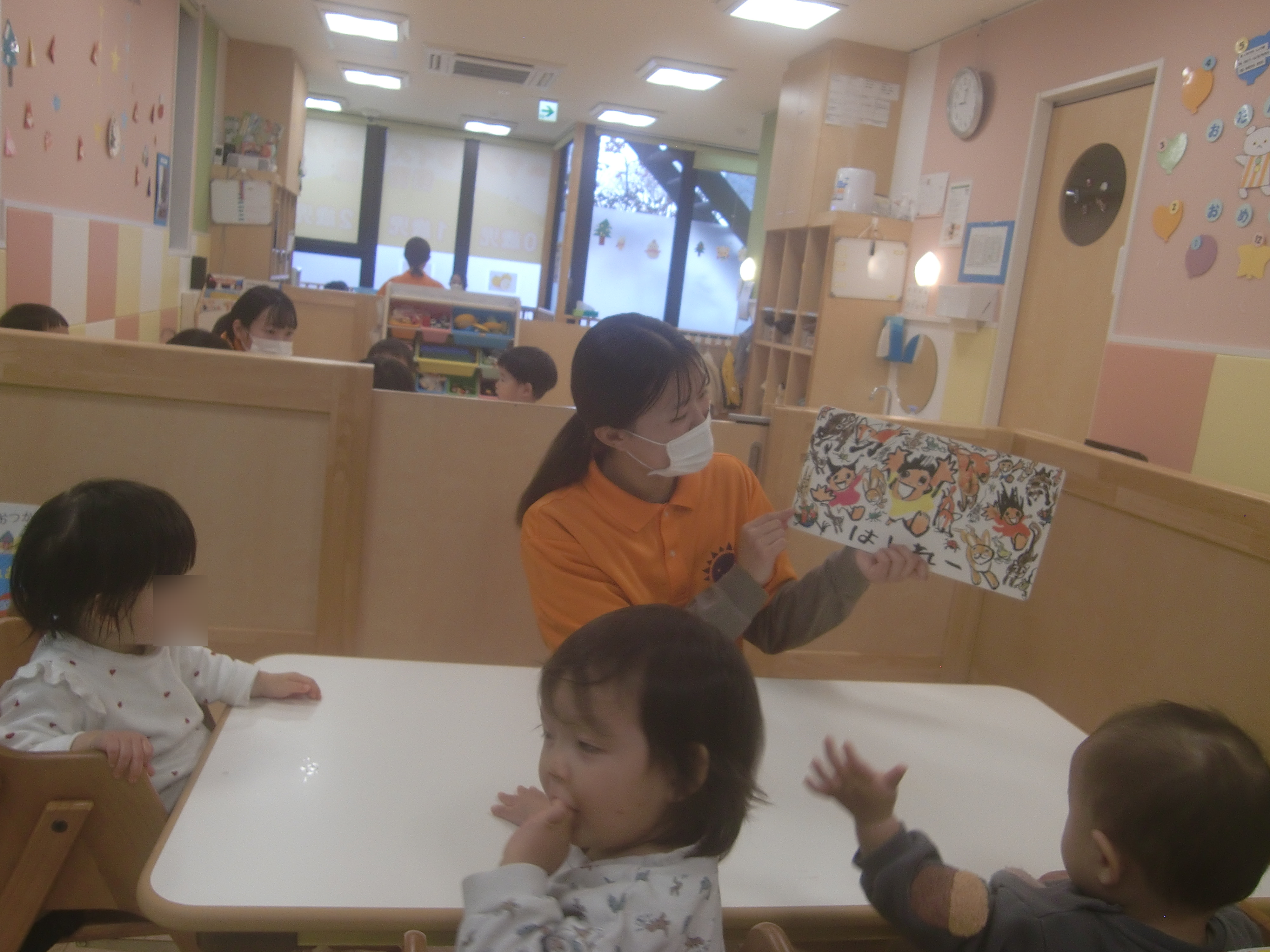 『はしれ』と『こっち』の2つのセリフしかないため、子どもたちも覚えやすいようで真似をして言っています![]()