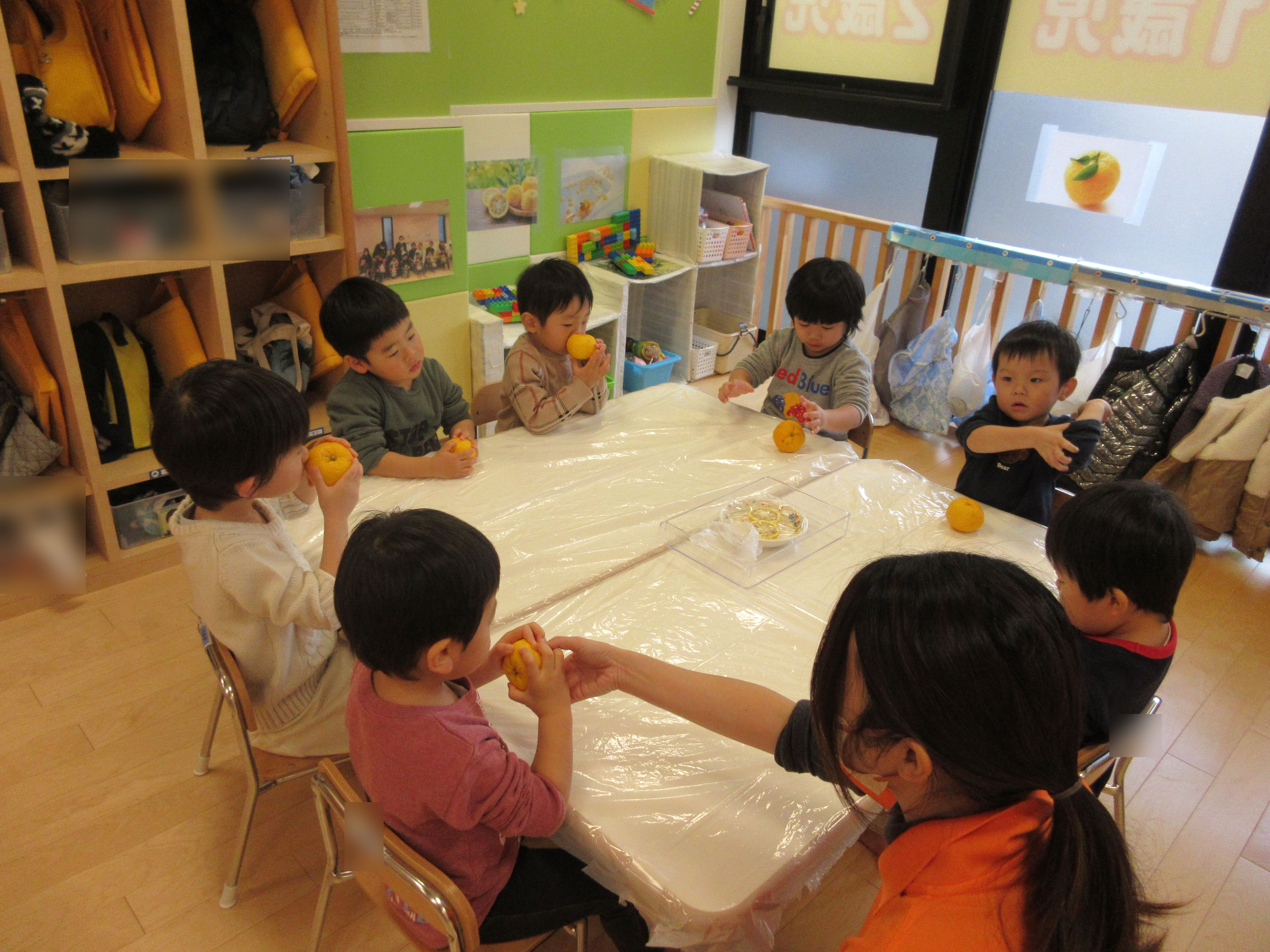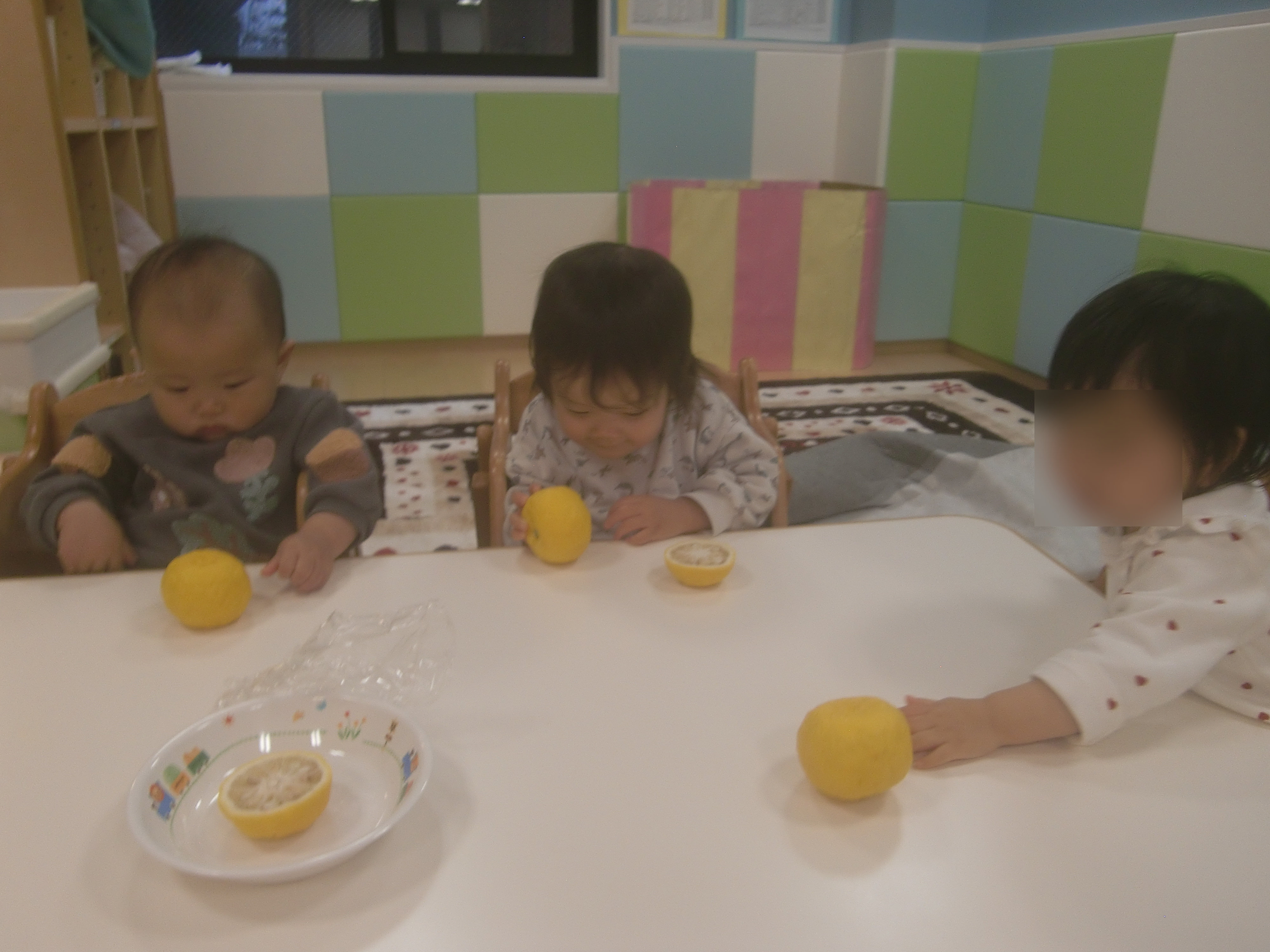 ゆずを見た時には「みかん!」と言っていた子も「ゆず!」と名前をすっかり覚えていました![]()
