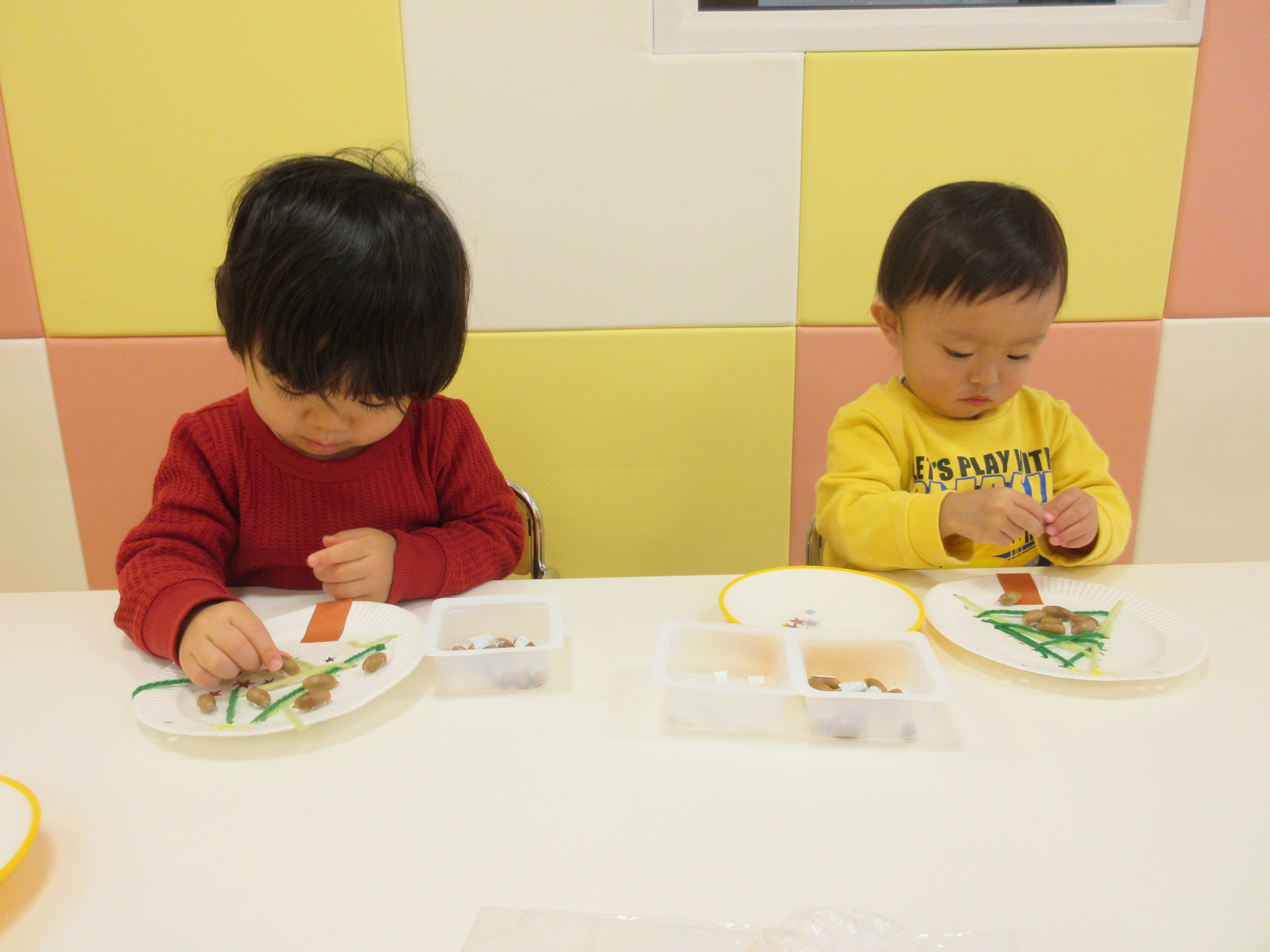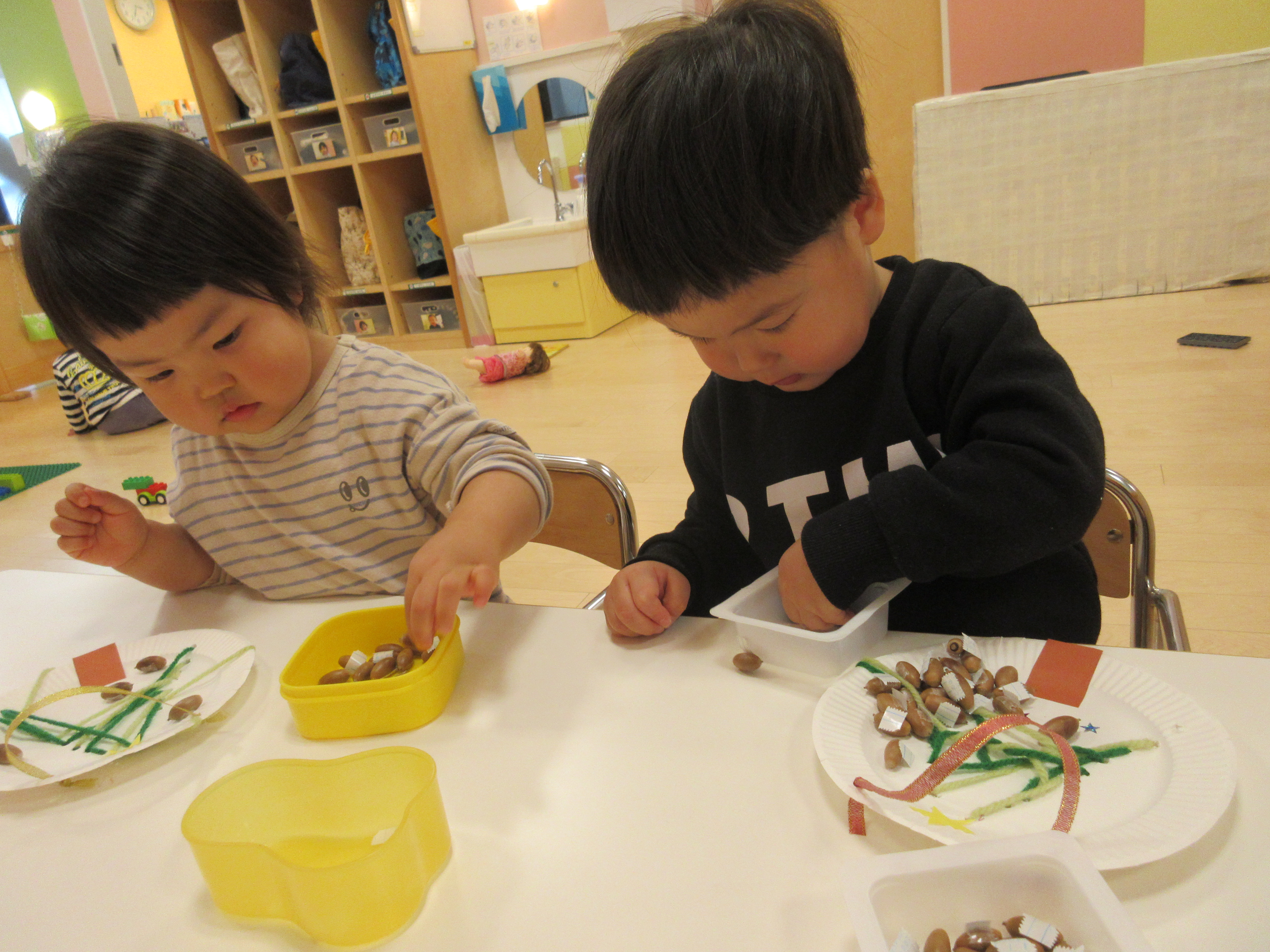 「どんぐりころころ~」と歌いながら貼りつける子や