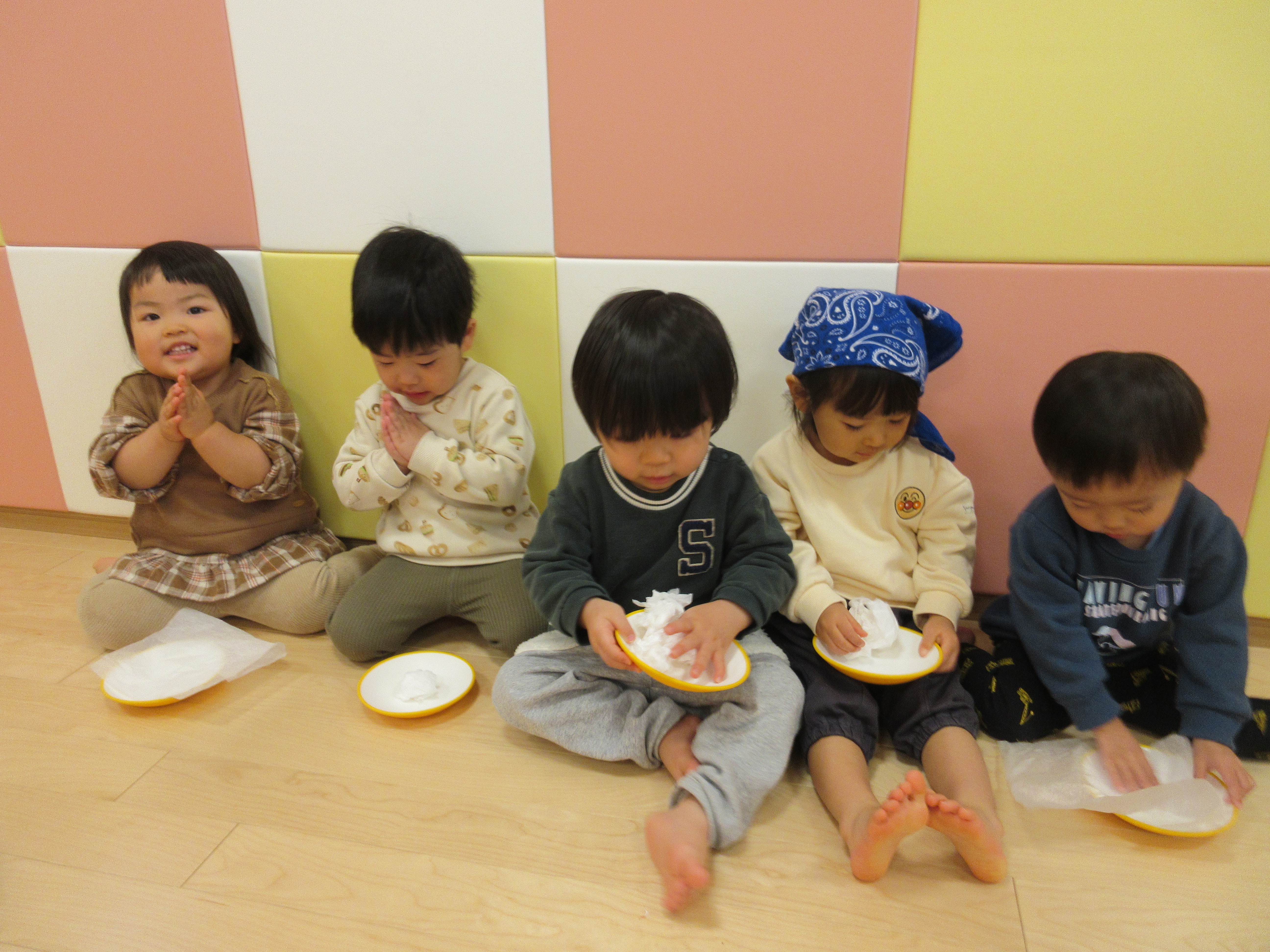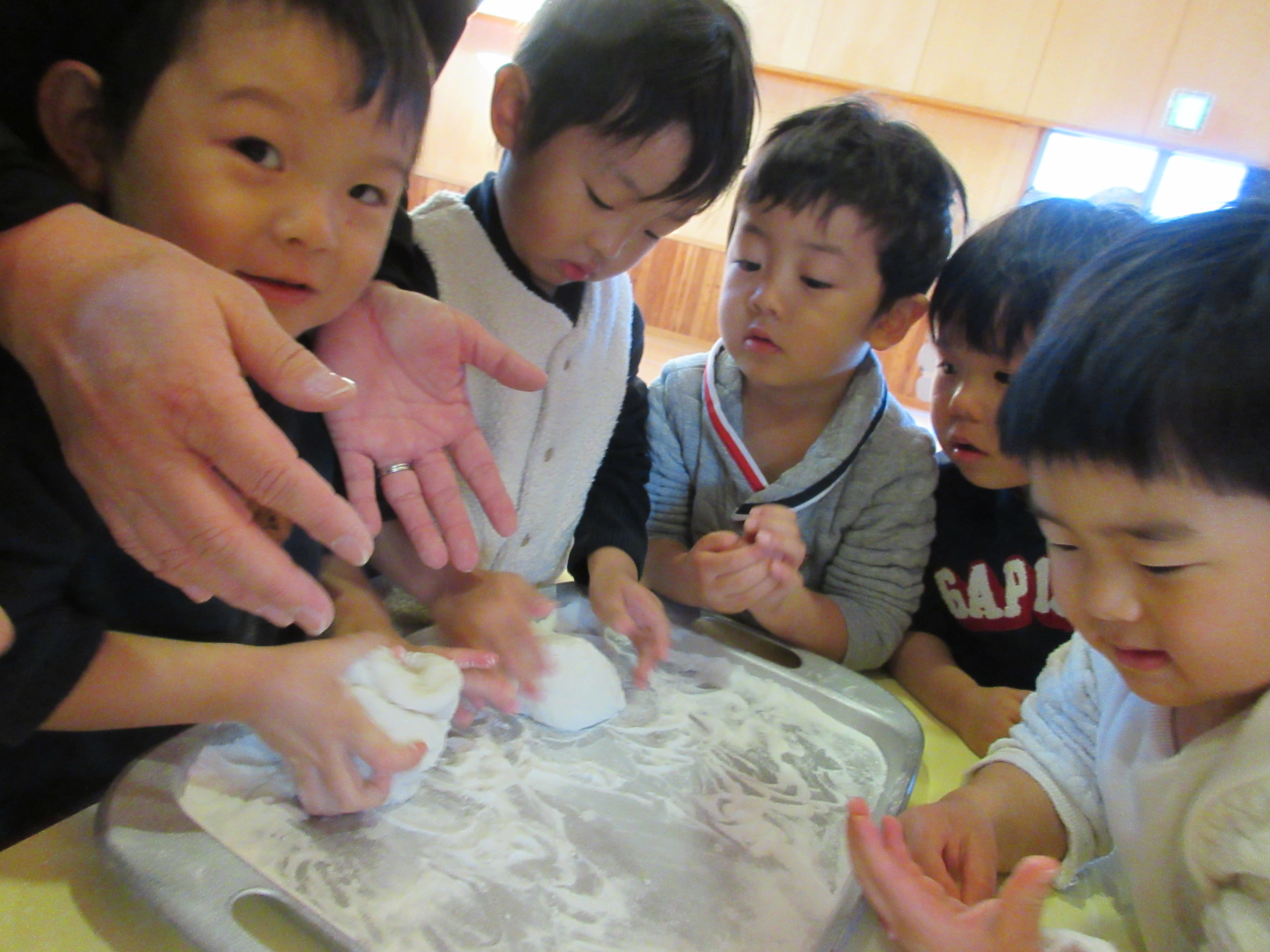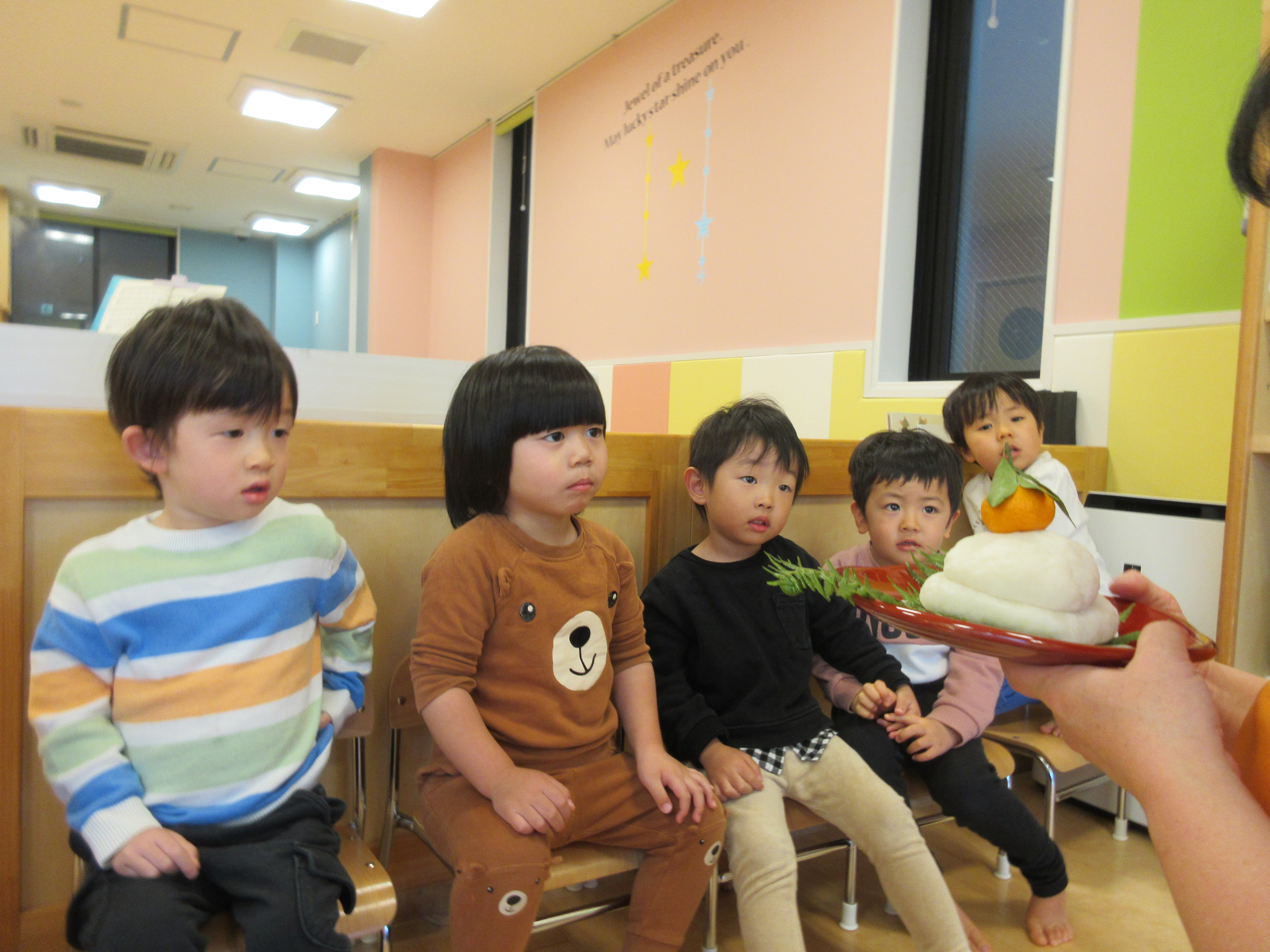 今回の鏡餅は保育園の玄関に飾らせていただきましたので、登園時や降園時に見ていただけたらと思います![]()
