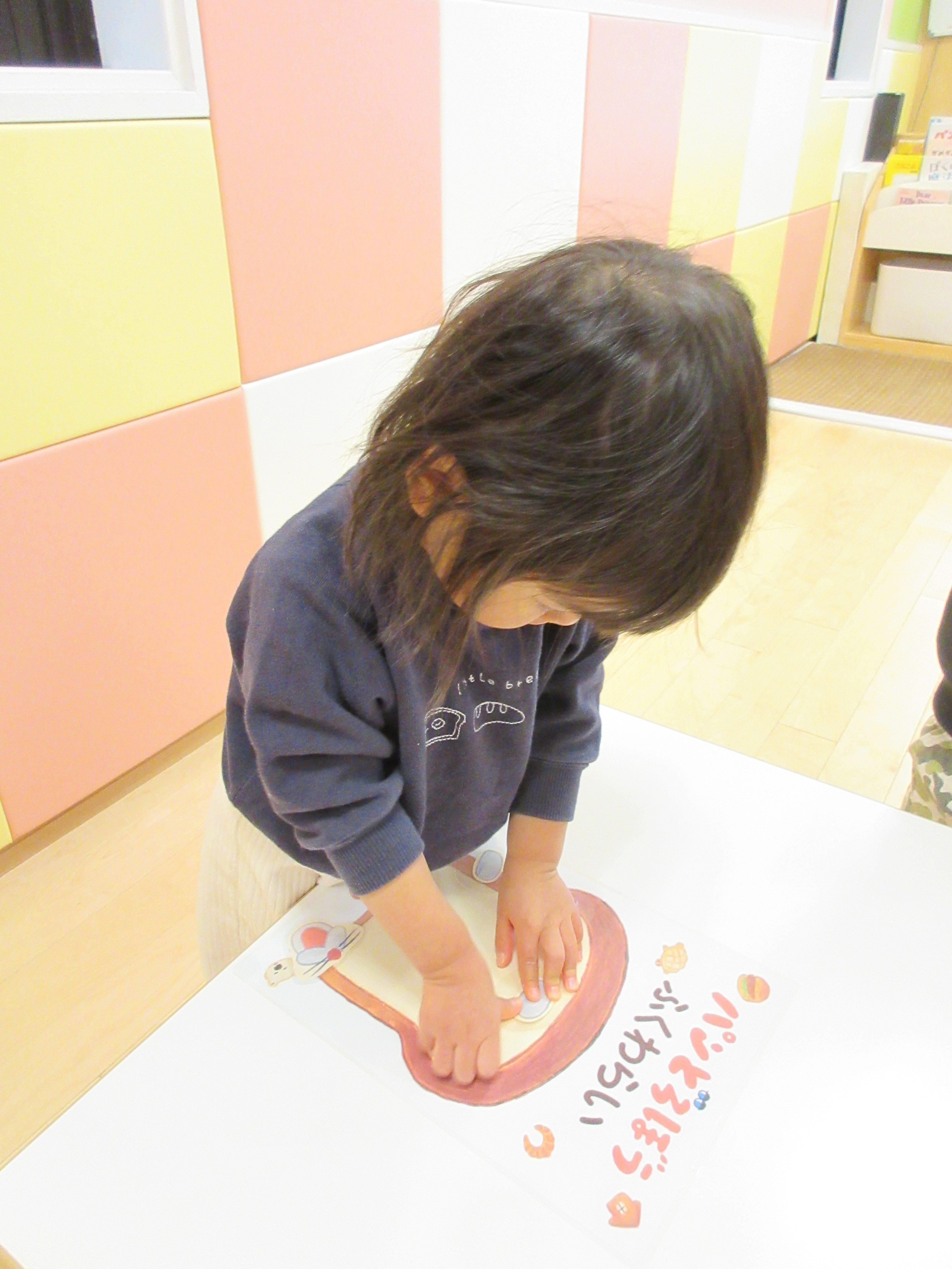 「ここかな~??」と悩みながら顔のパーツを貼っていました。