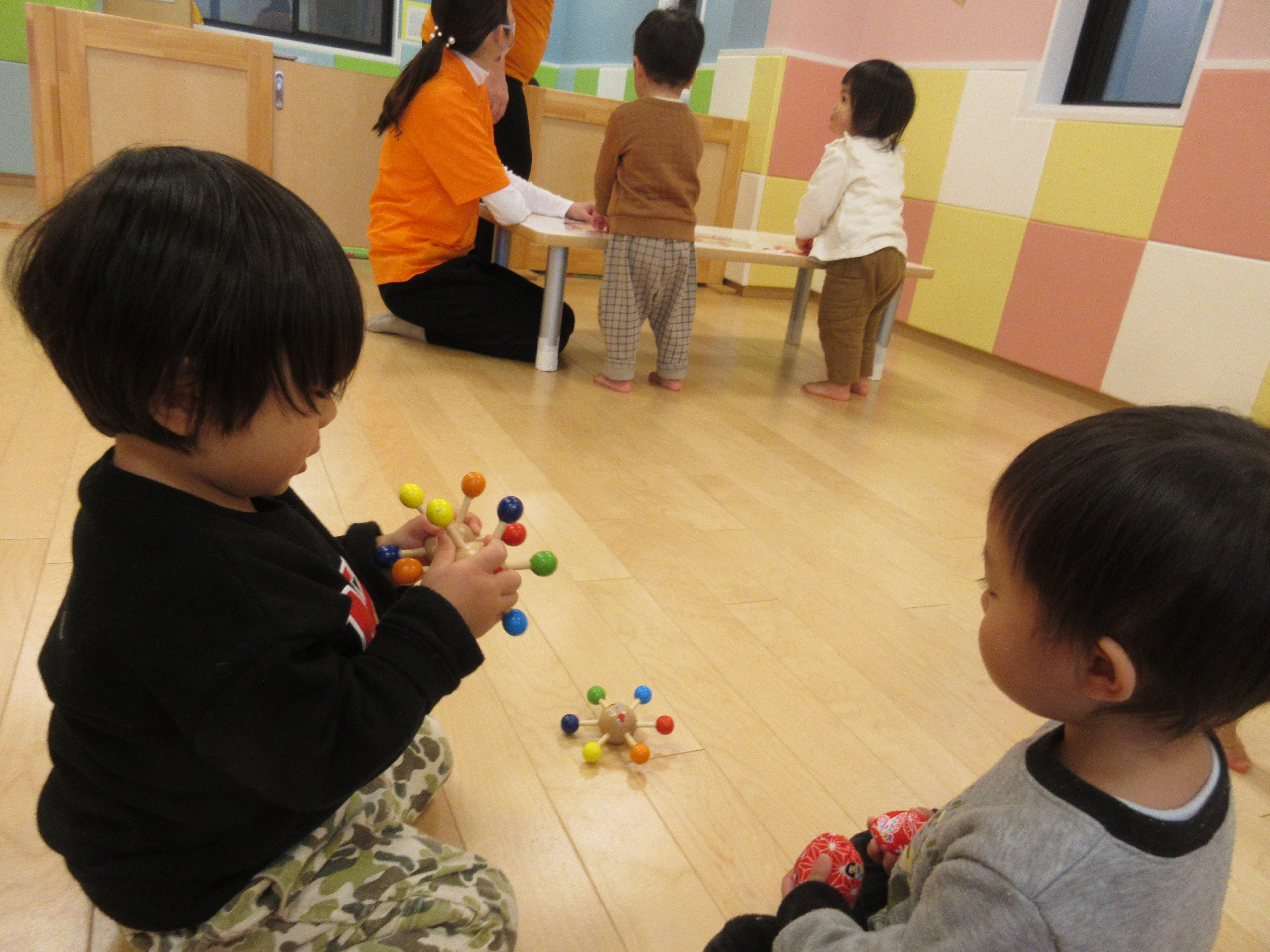 コマやお手玉も今回用意したりと様々なお正月遊びに触れたいちごぐみさん。