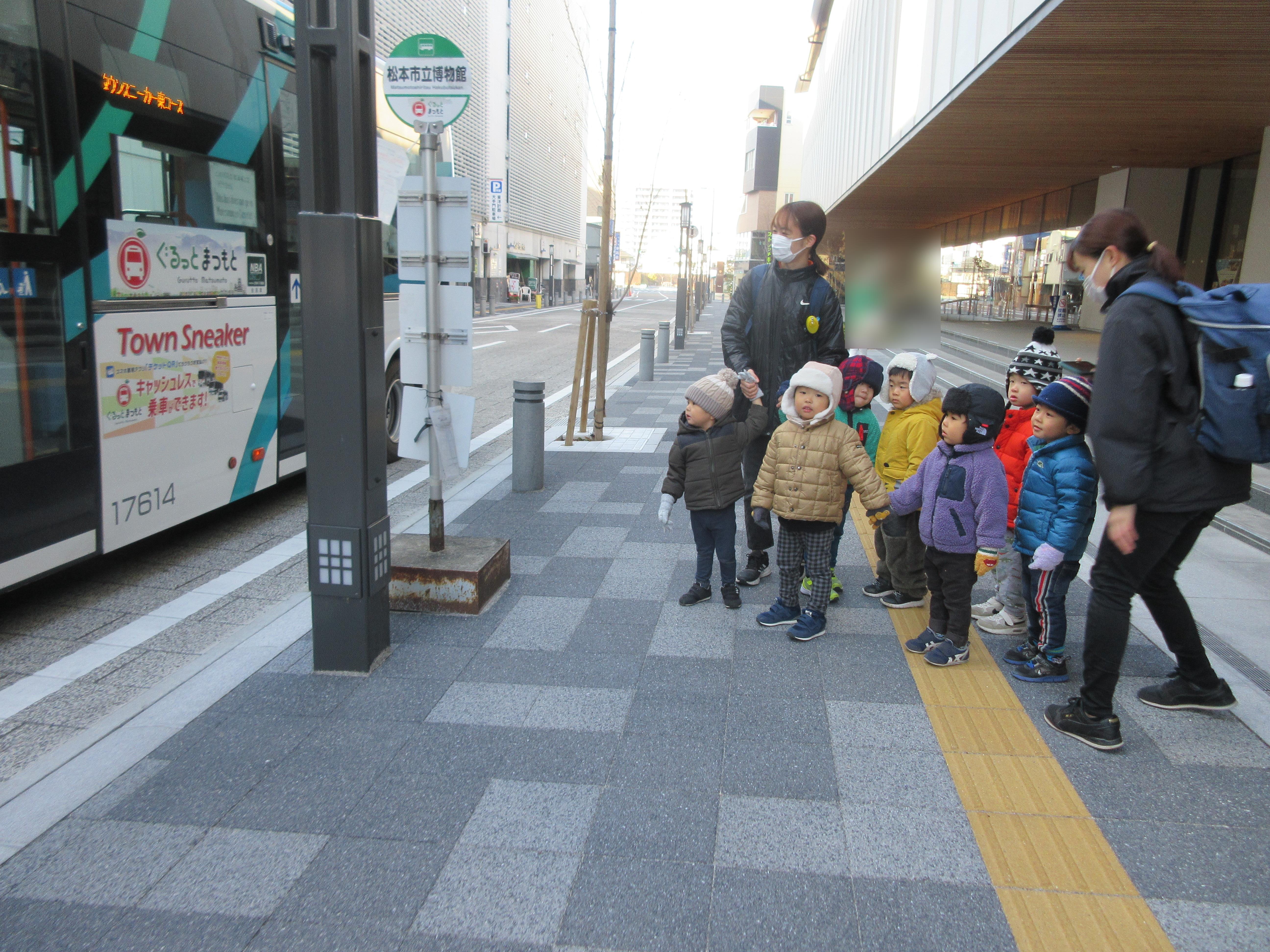 ⇩バスが来るとバスを見つめて喜んでいた子どもたち![]()