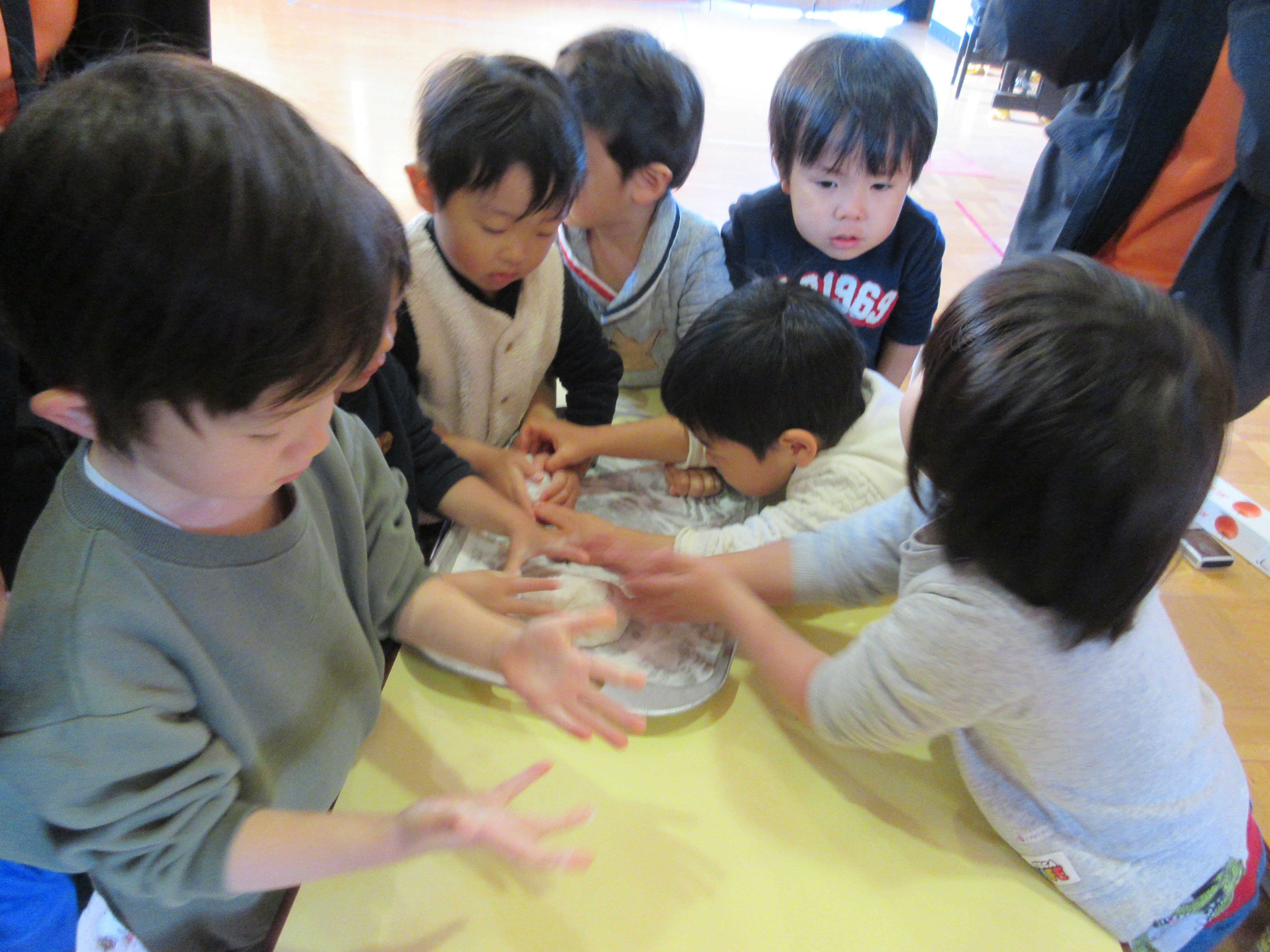 最初にあがた保育園さんの園長先生にやり方を教えていただき、