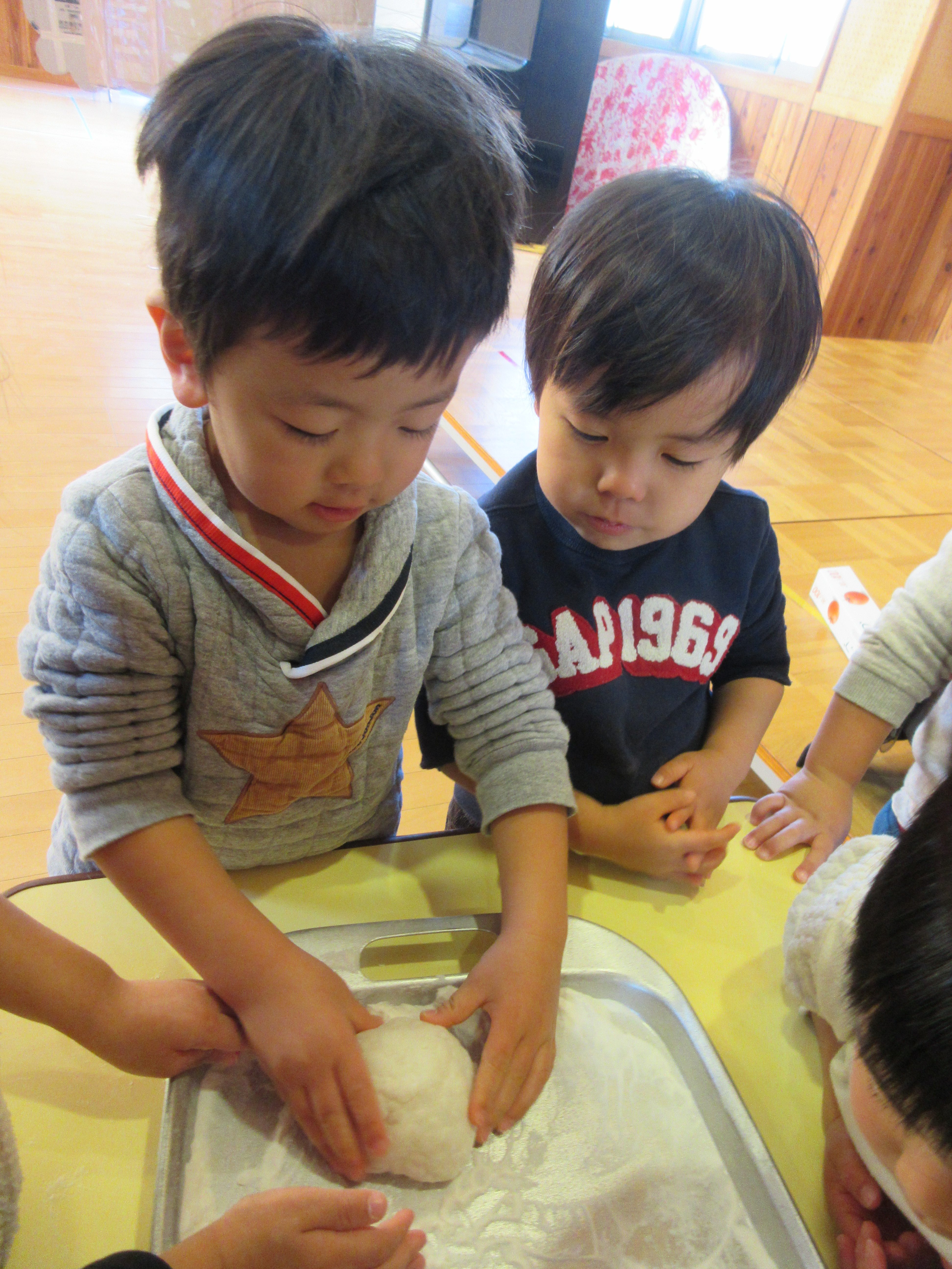 その後に子どもたちがそれぞれお餅の形を整えていきました。
