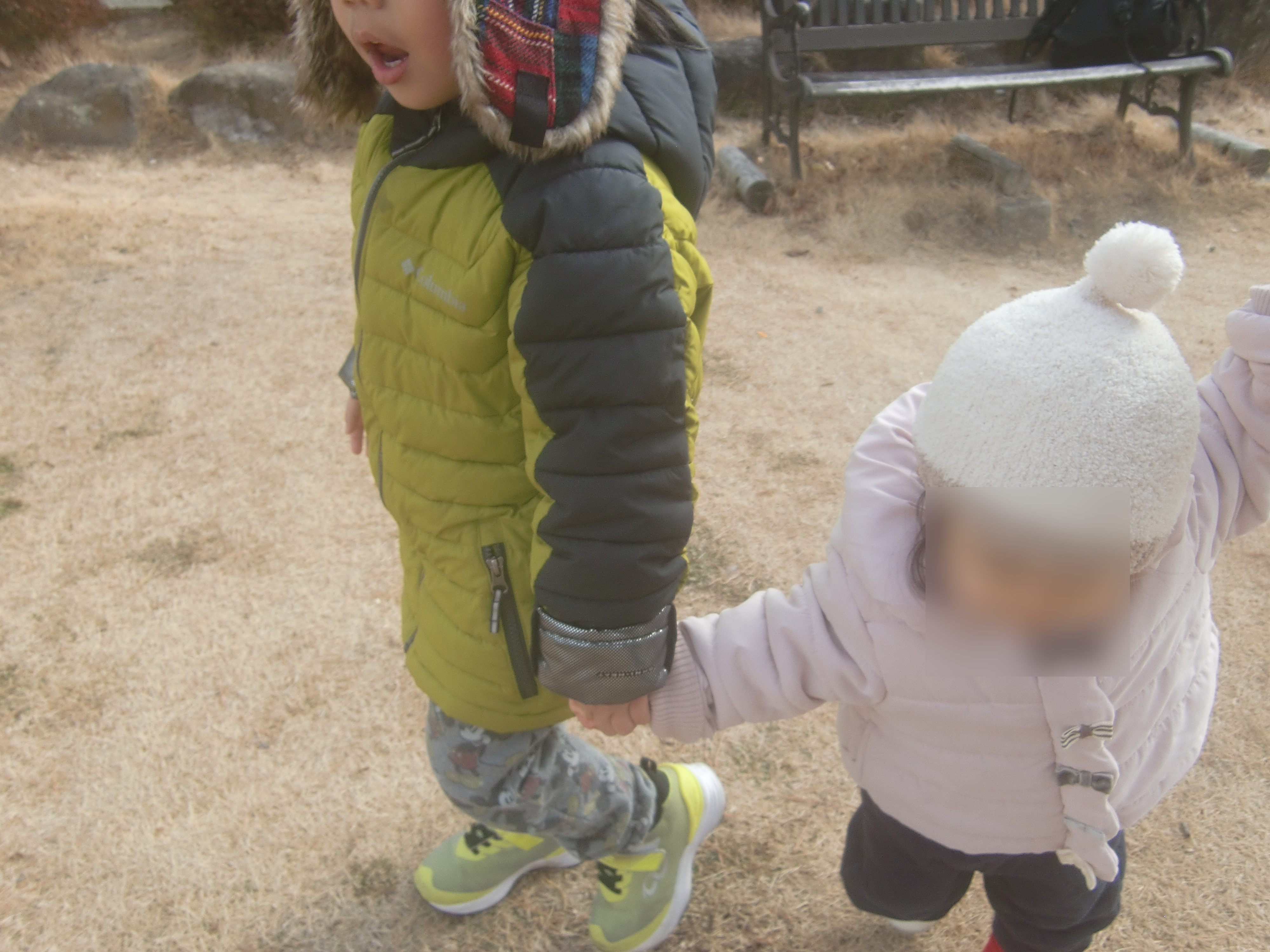 ⇩りんごぐみのお兄さんが来てくれ、手を握りペースを合わせてゆっくり歩いてくれました![]()