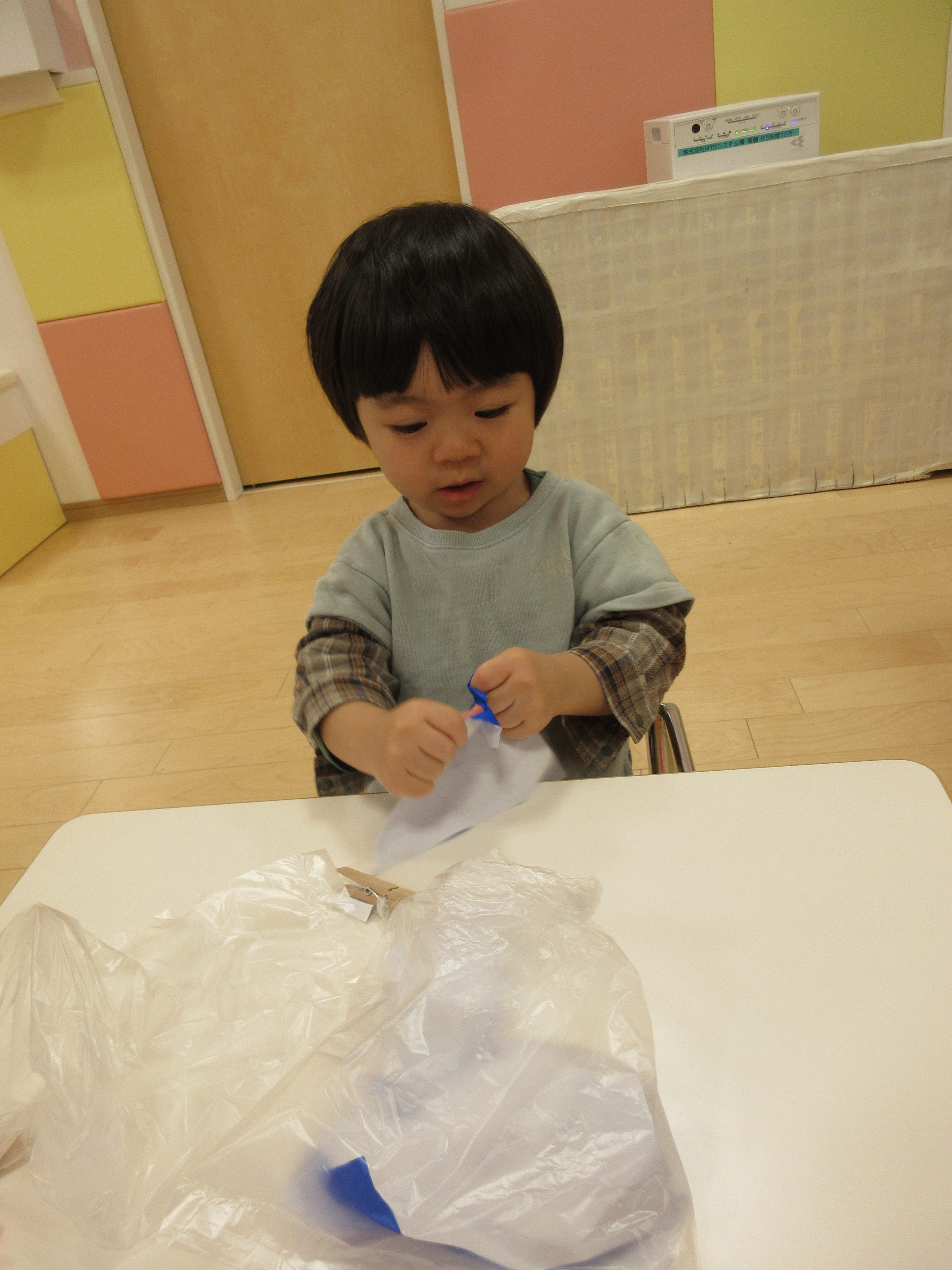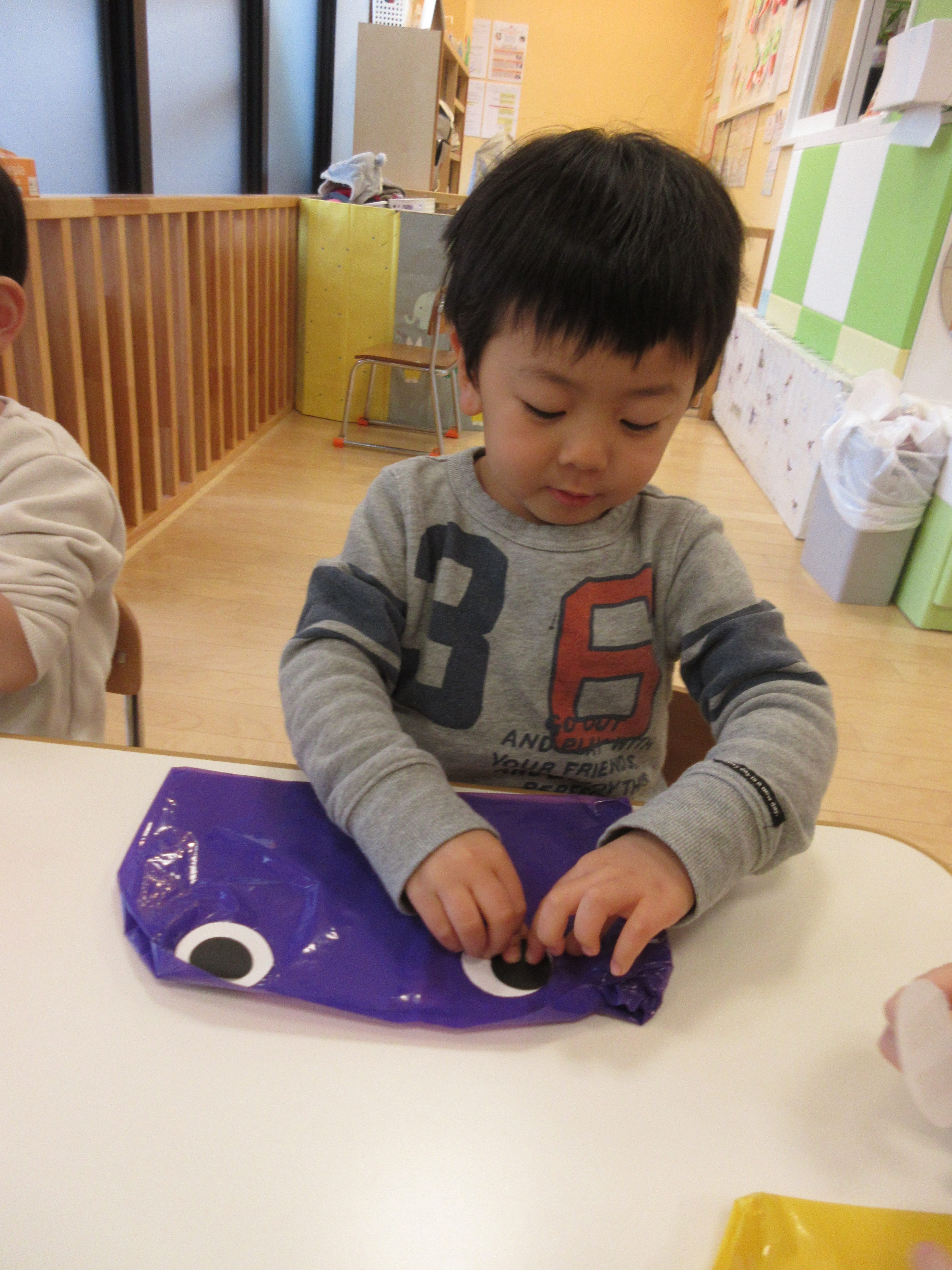 試行錯誤しながら自分で破くことができると嬉しそうにしていました![]()