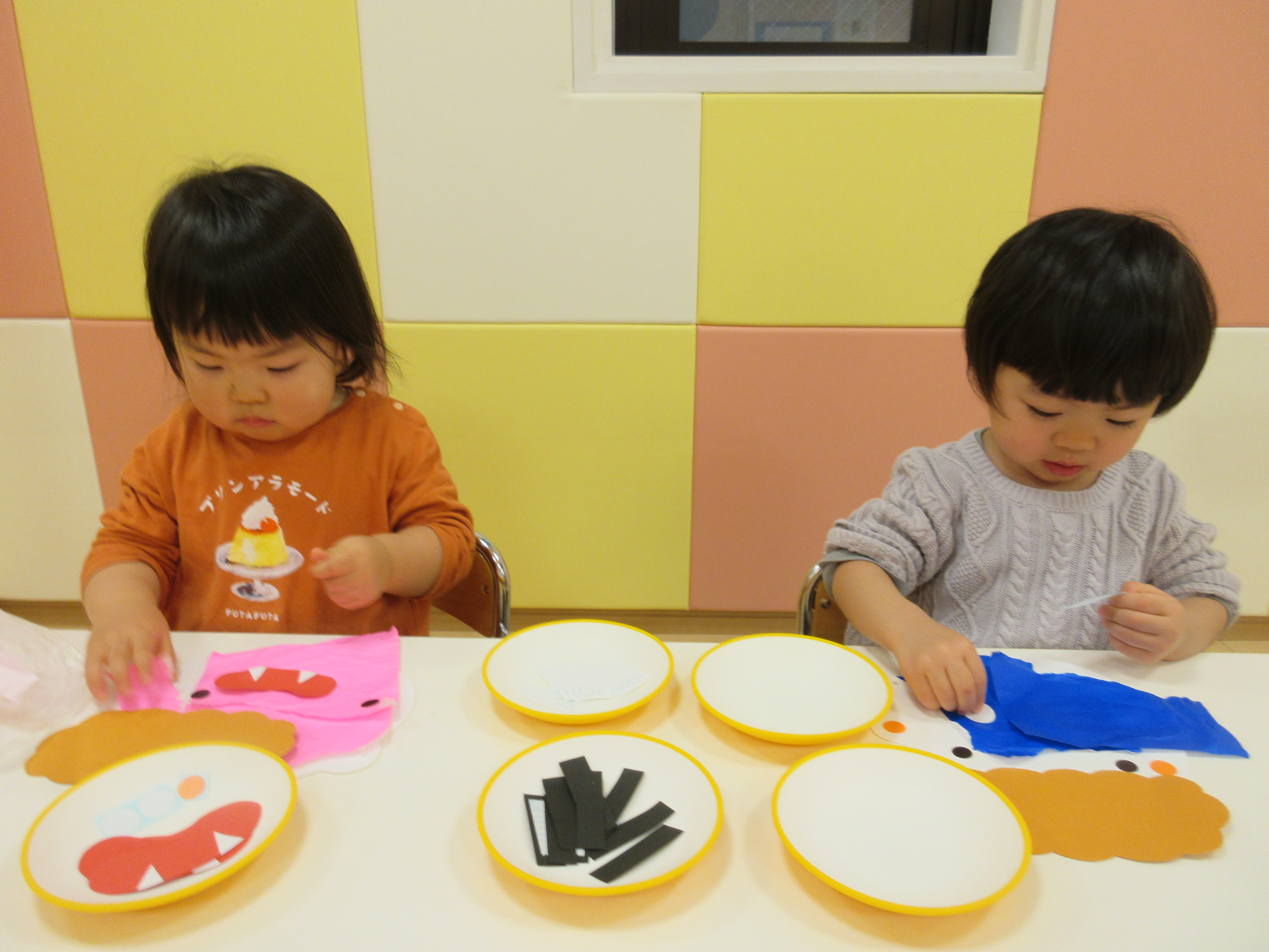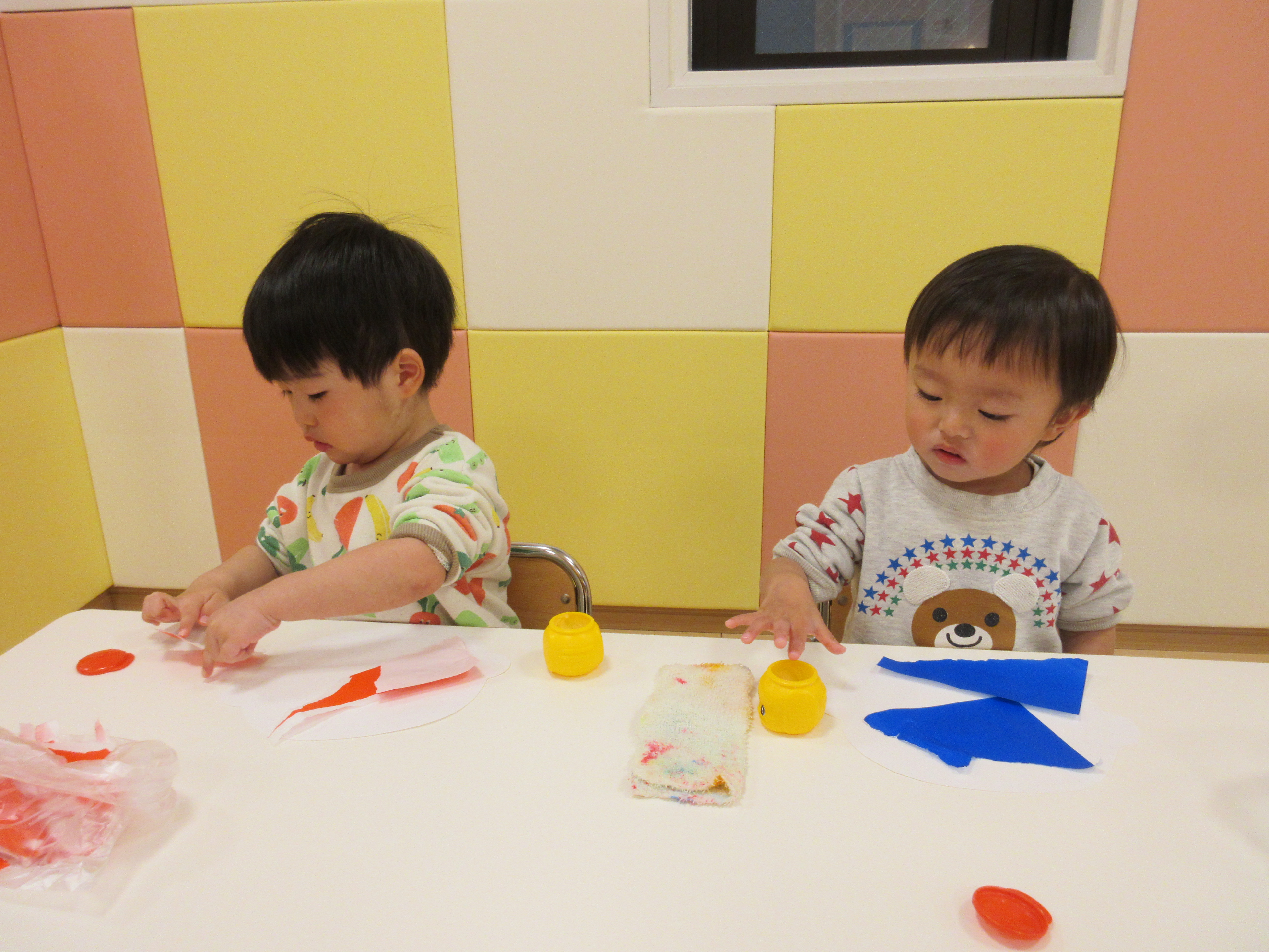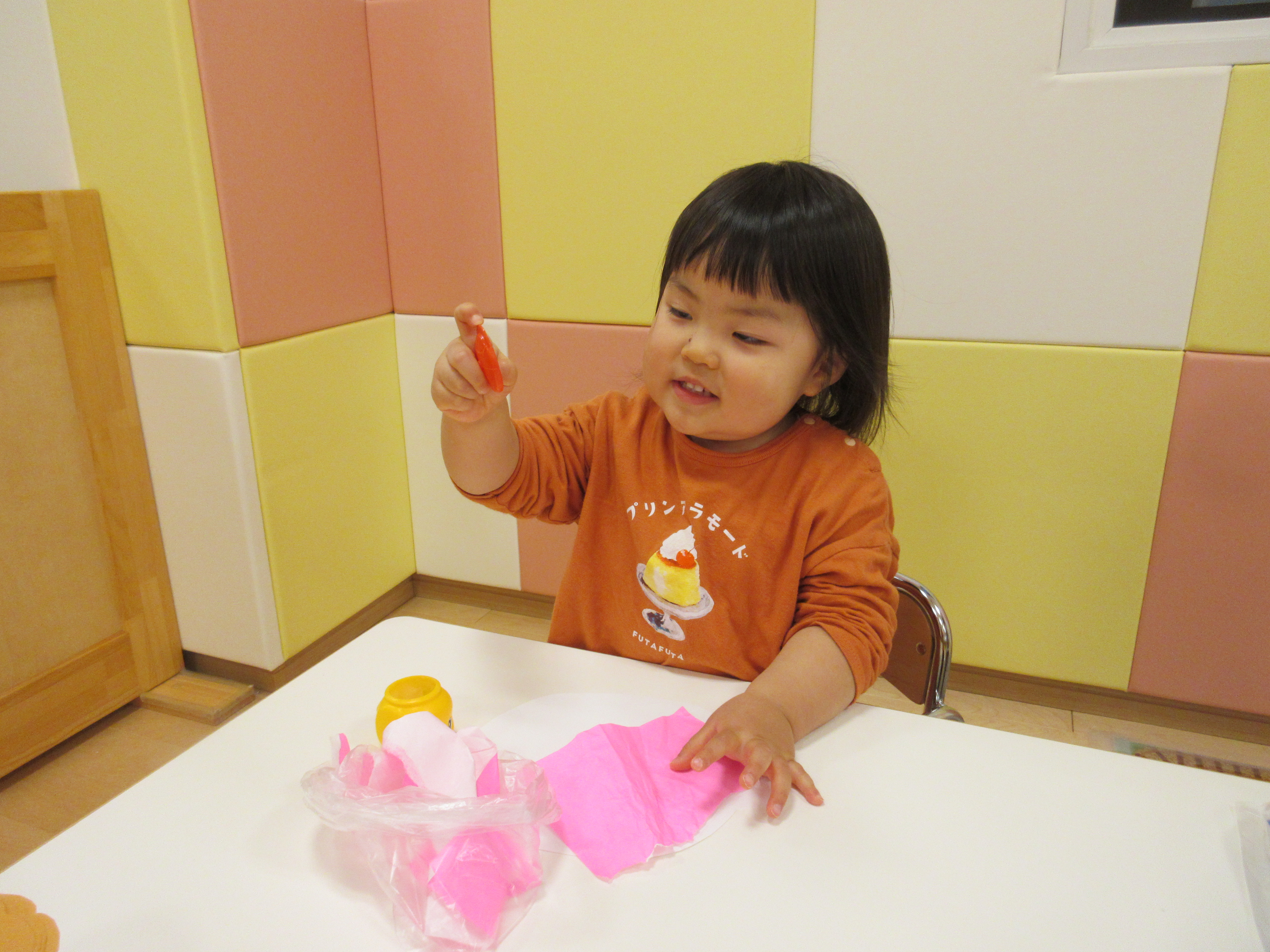 完成した作品をお迎え時に嬉しそうに見せる子どもたちで、その姿に先生たちも癒されてしまいました![]()