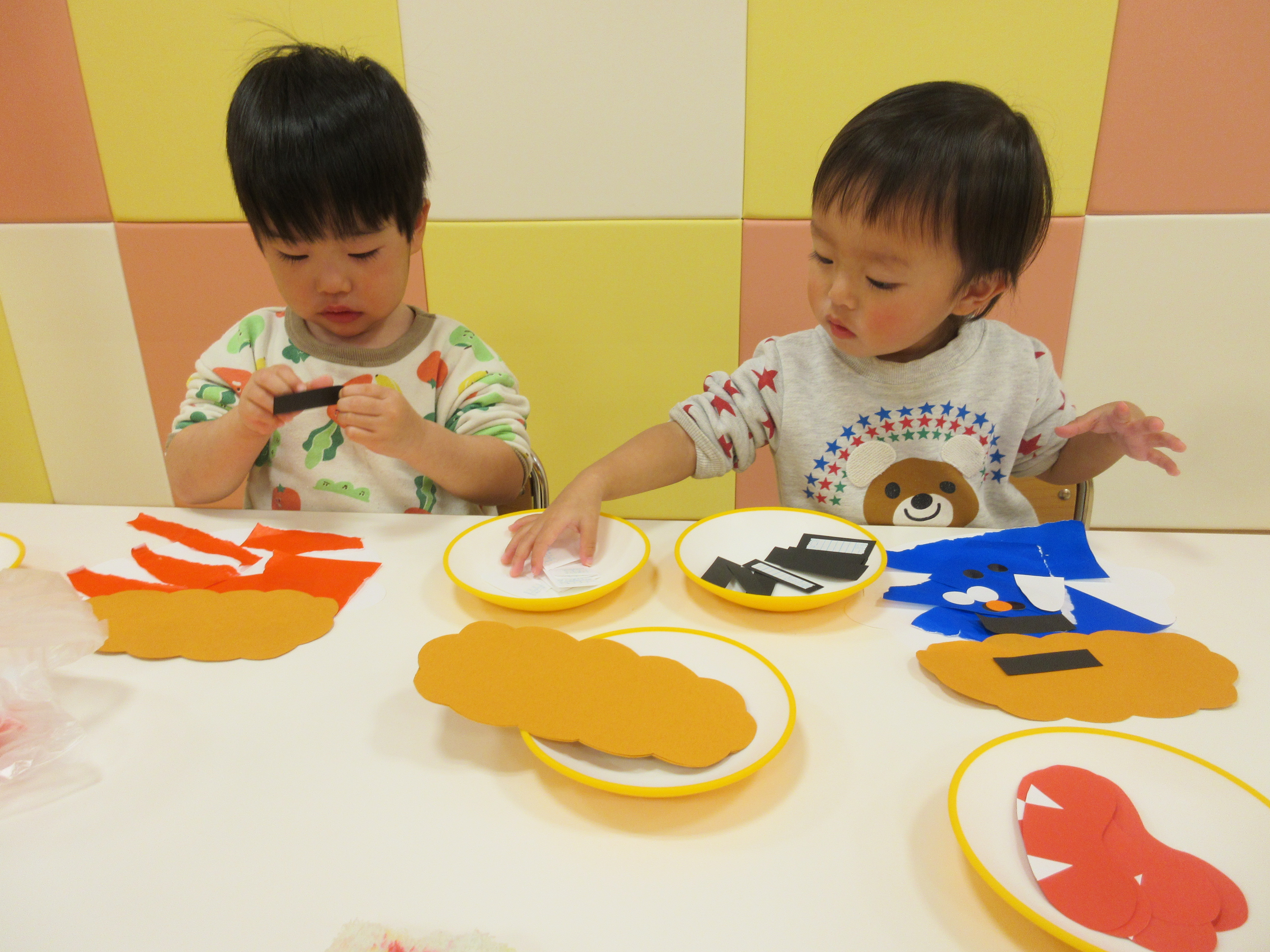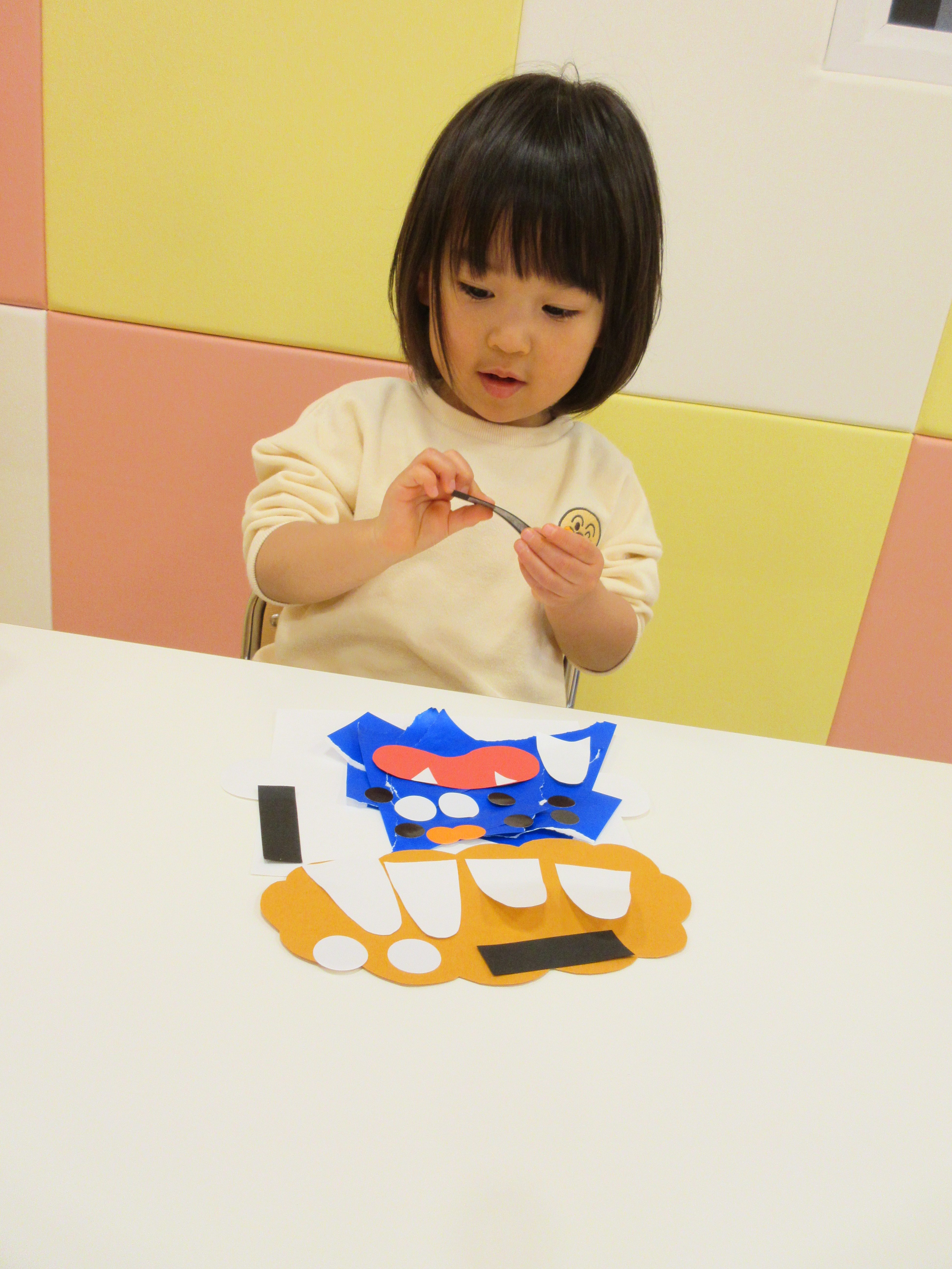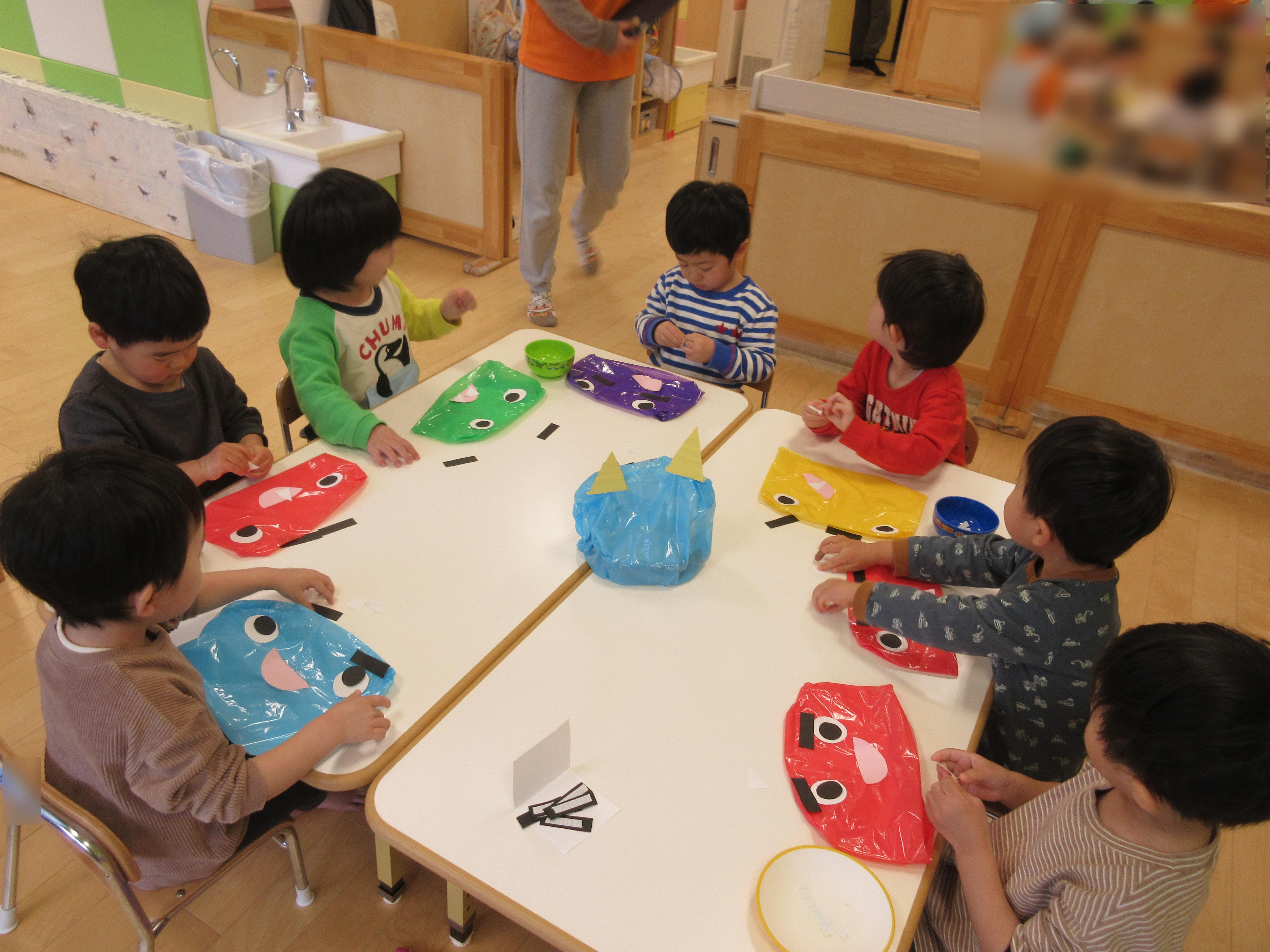 オニさんとお友だちになる第一歩として、好きな色のオニさんの製作![]()
