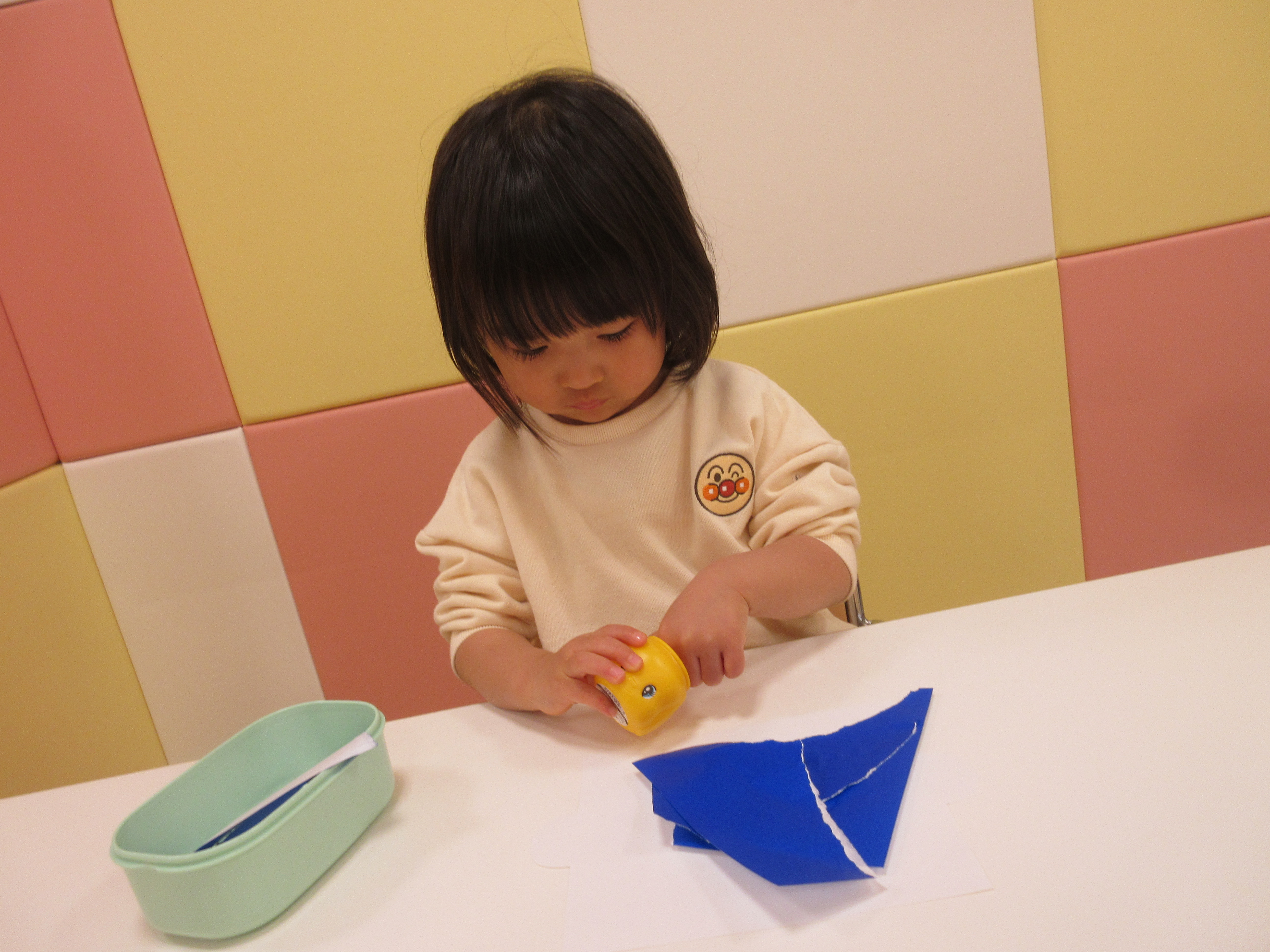 ⇩糊の容器が気に入って「これぼうし??かわいいじゃん!」と言う子もいました![]()