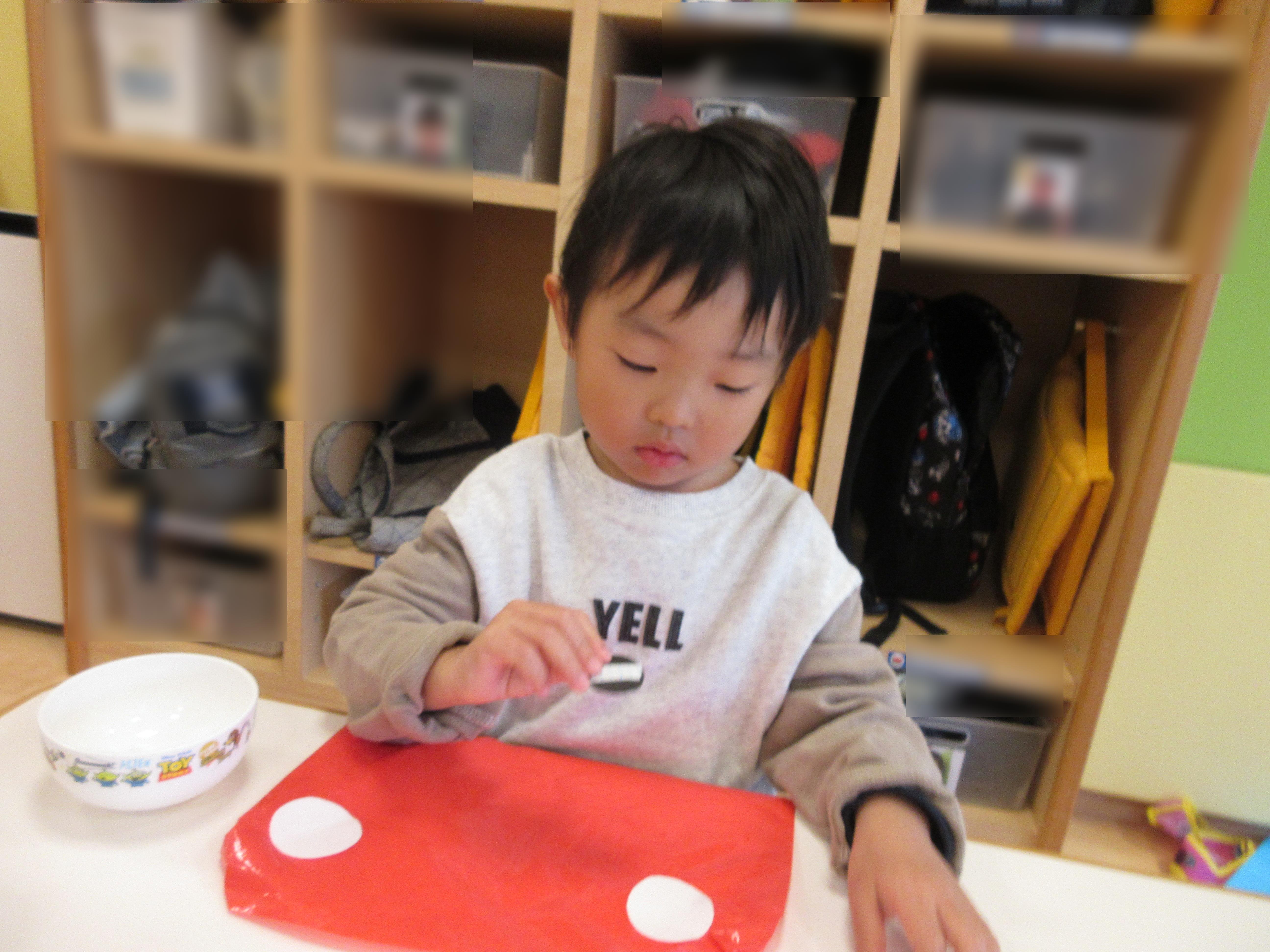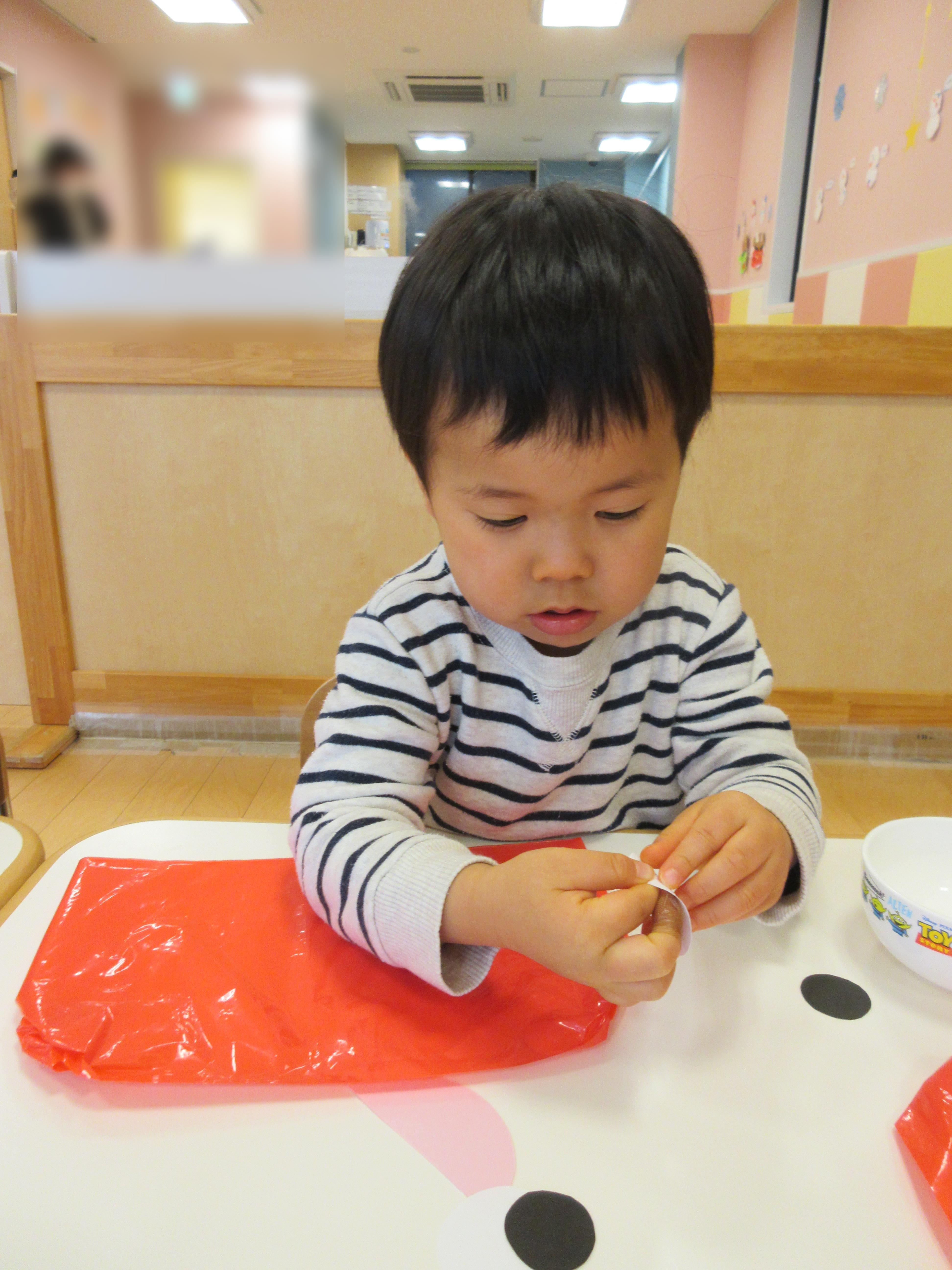 ⇩こちらの子は両手を使って一つずつ丁寧に貼っています![]()