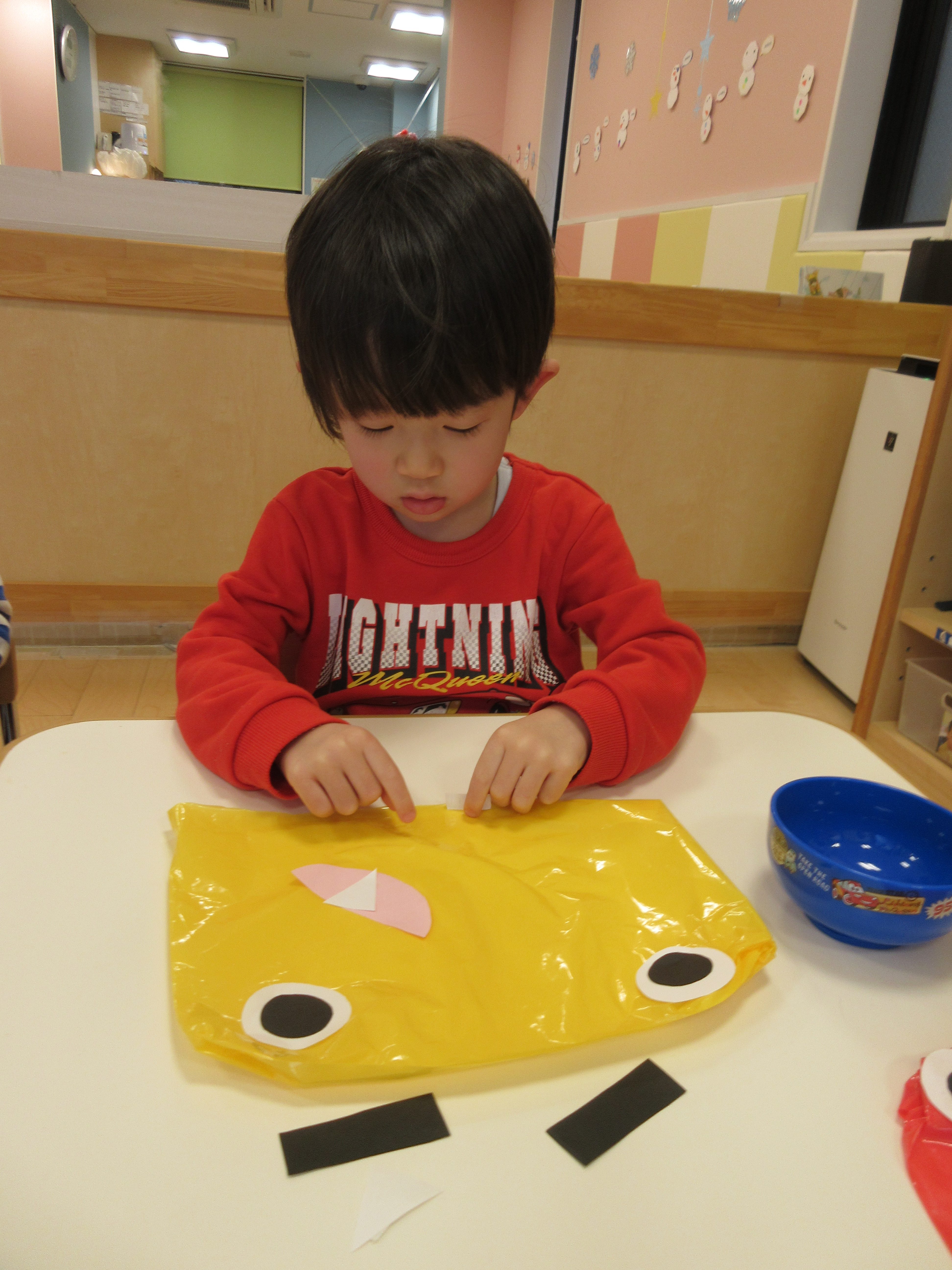 このお面をかぶって来週は豆まきごっこを楽しんでいきたいと思います。