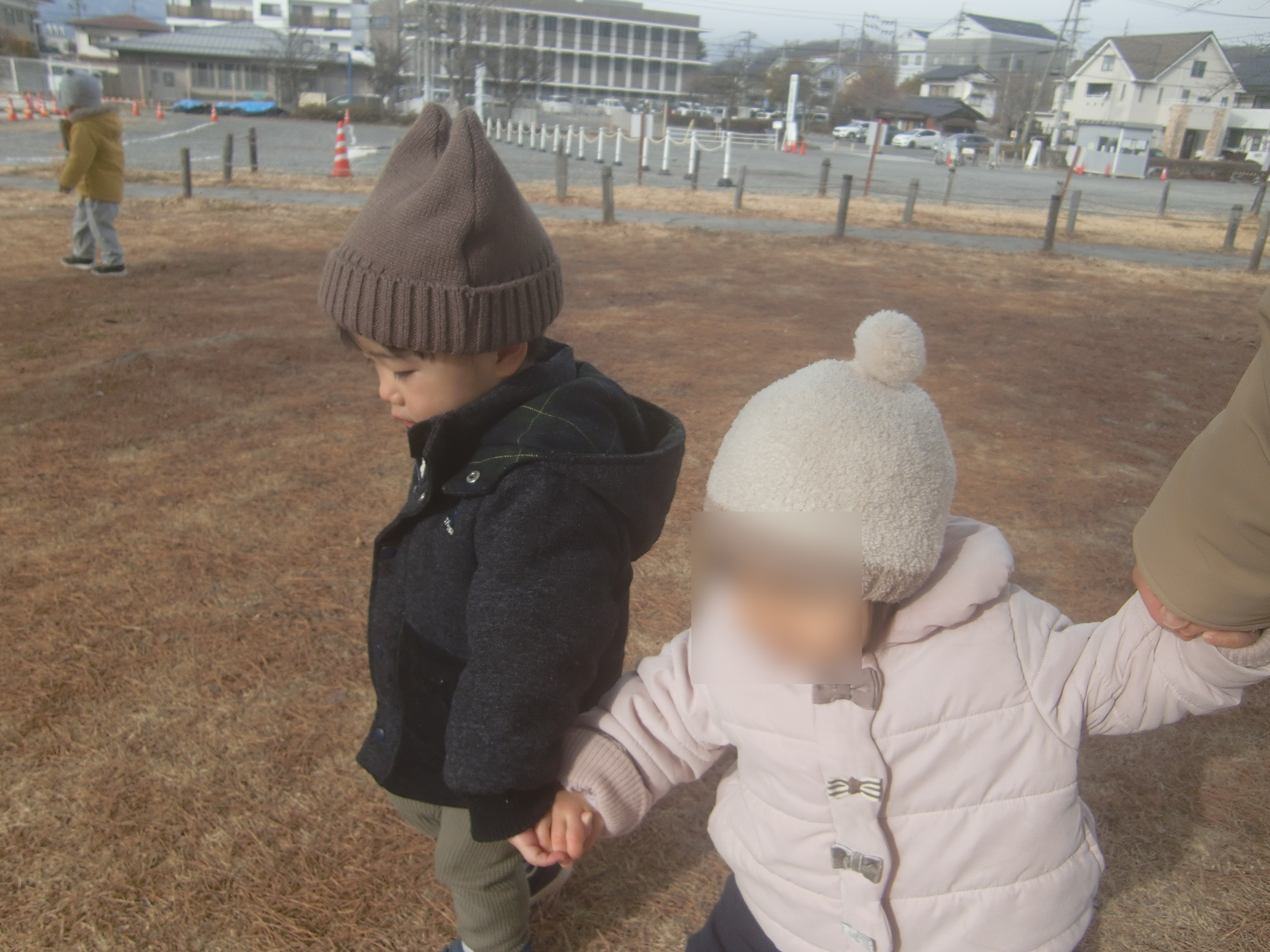 トコトコと歩けるようになり、先生と手を繋いで散策していると
