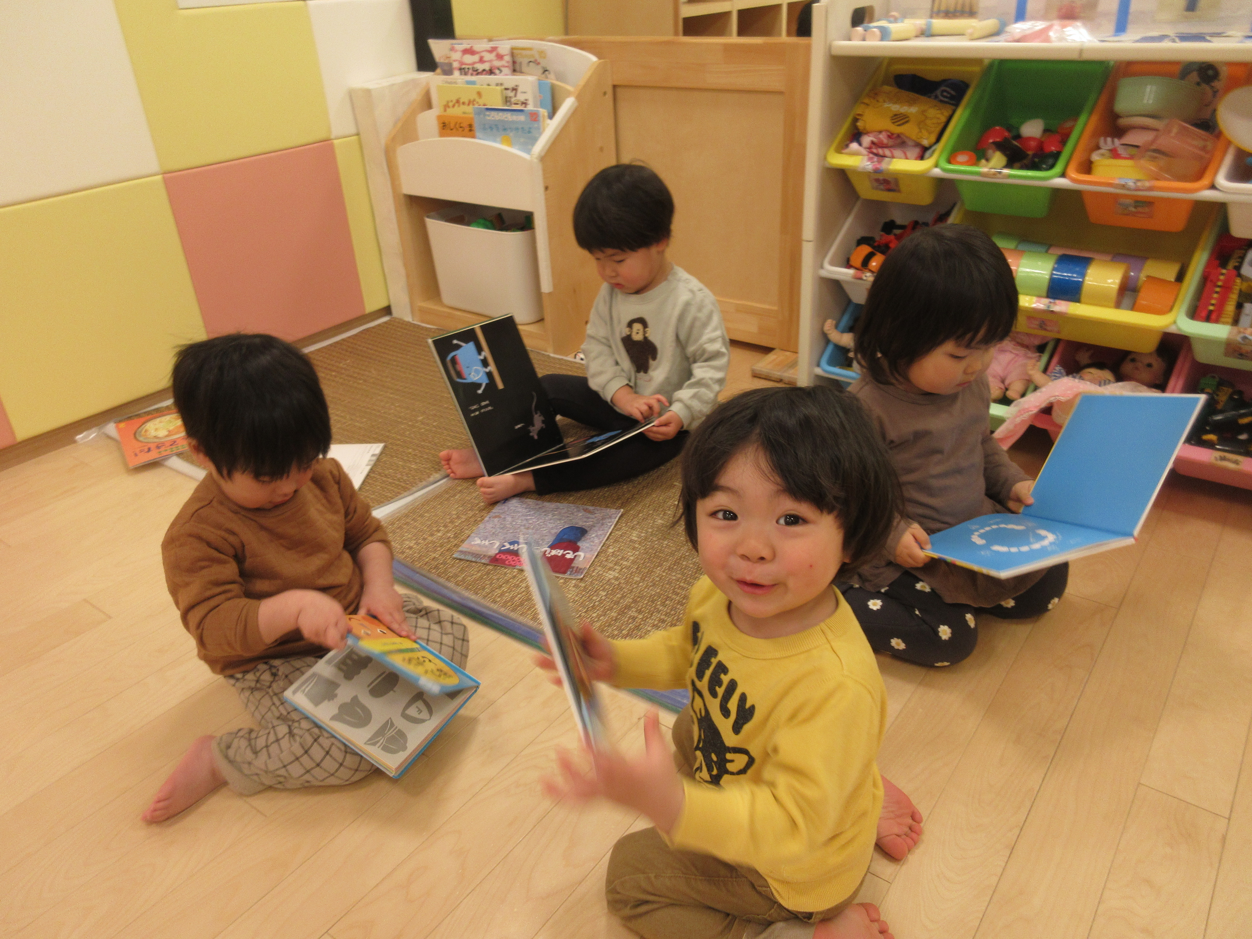 自分で1冊選び、思い思いに楽しむ子どもたちです。