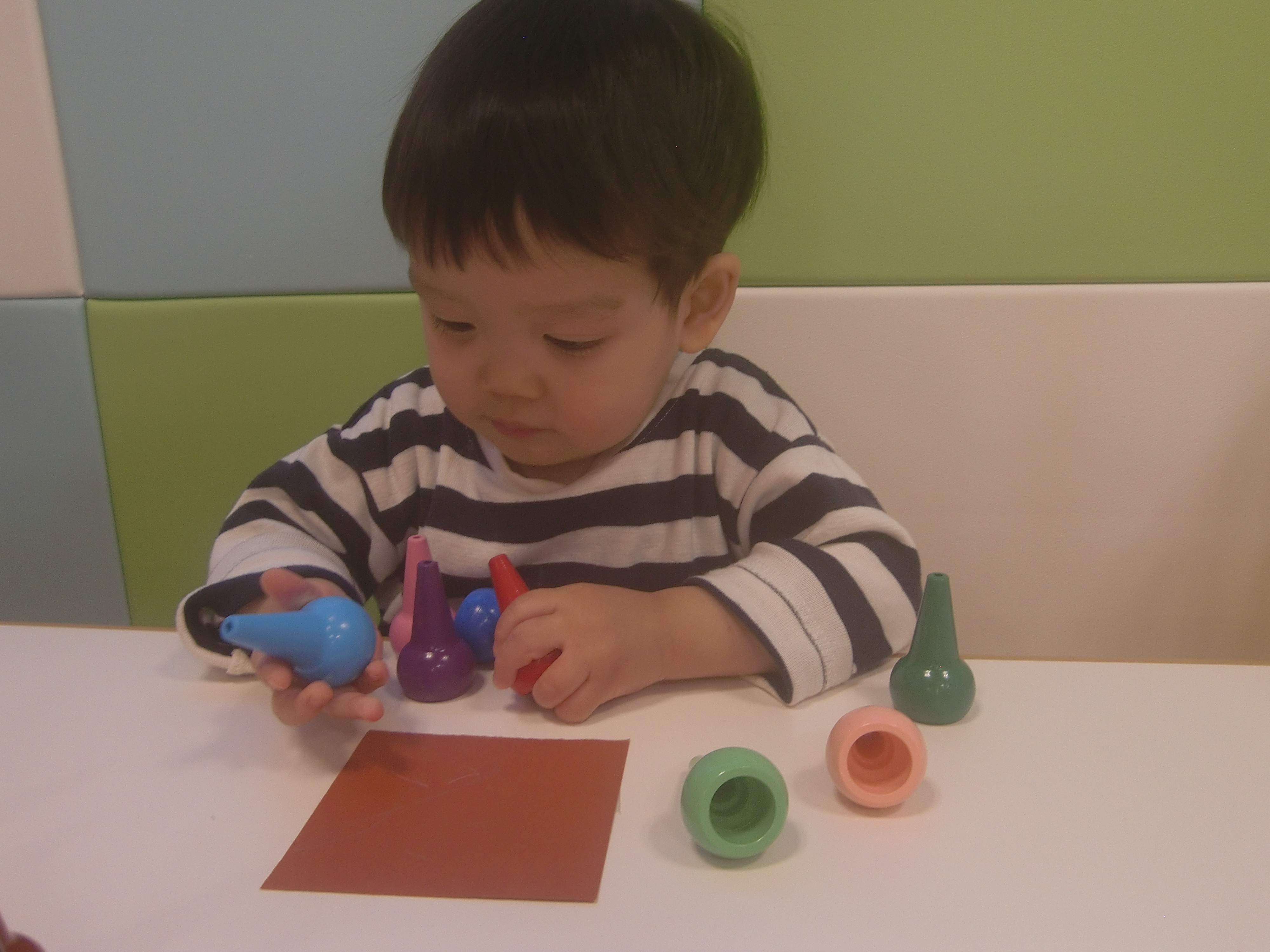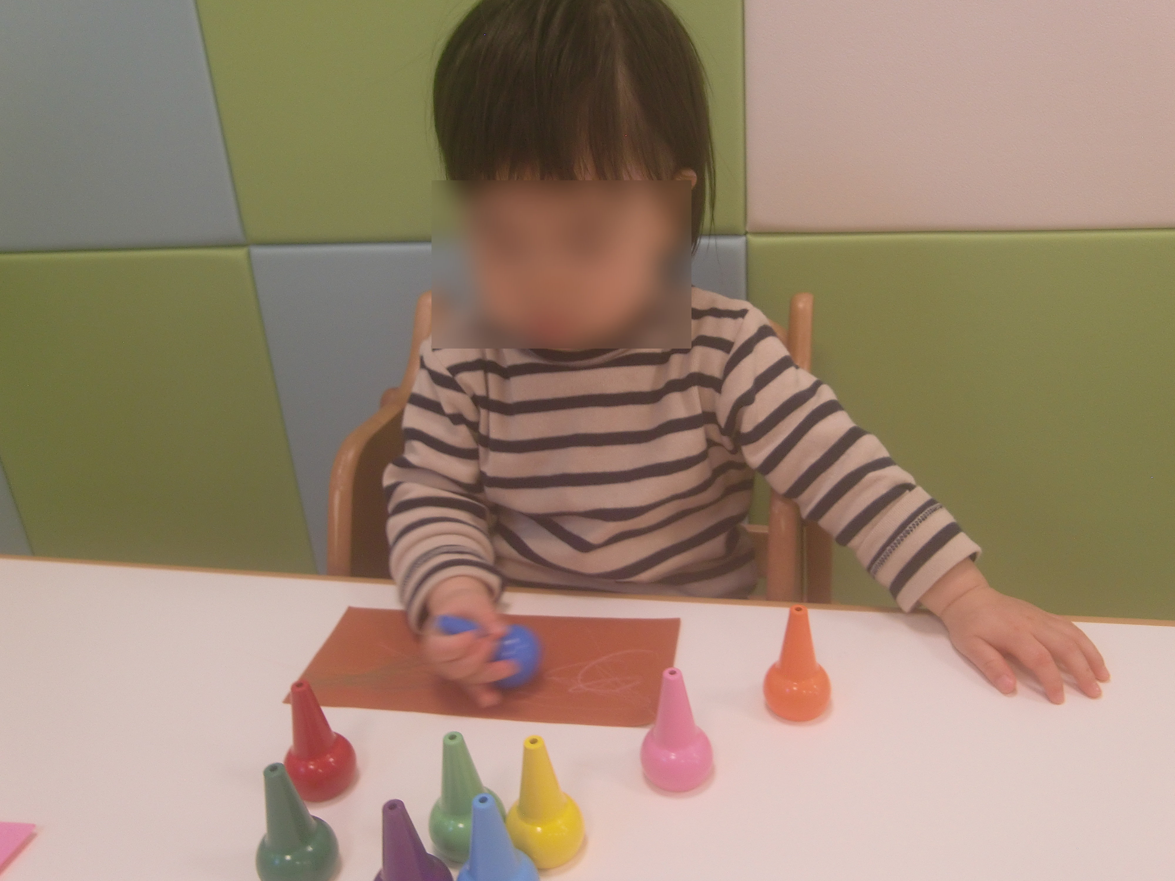 まずは、クリスマスプレゼントでもらったクレヨンを使っい