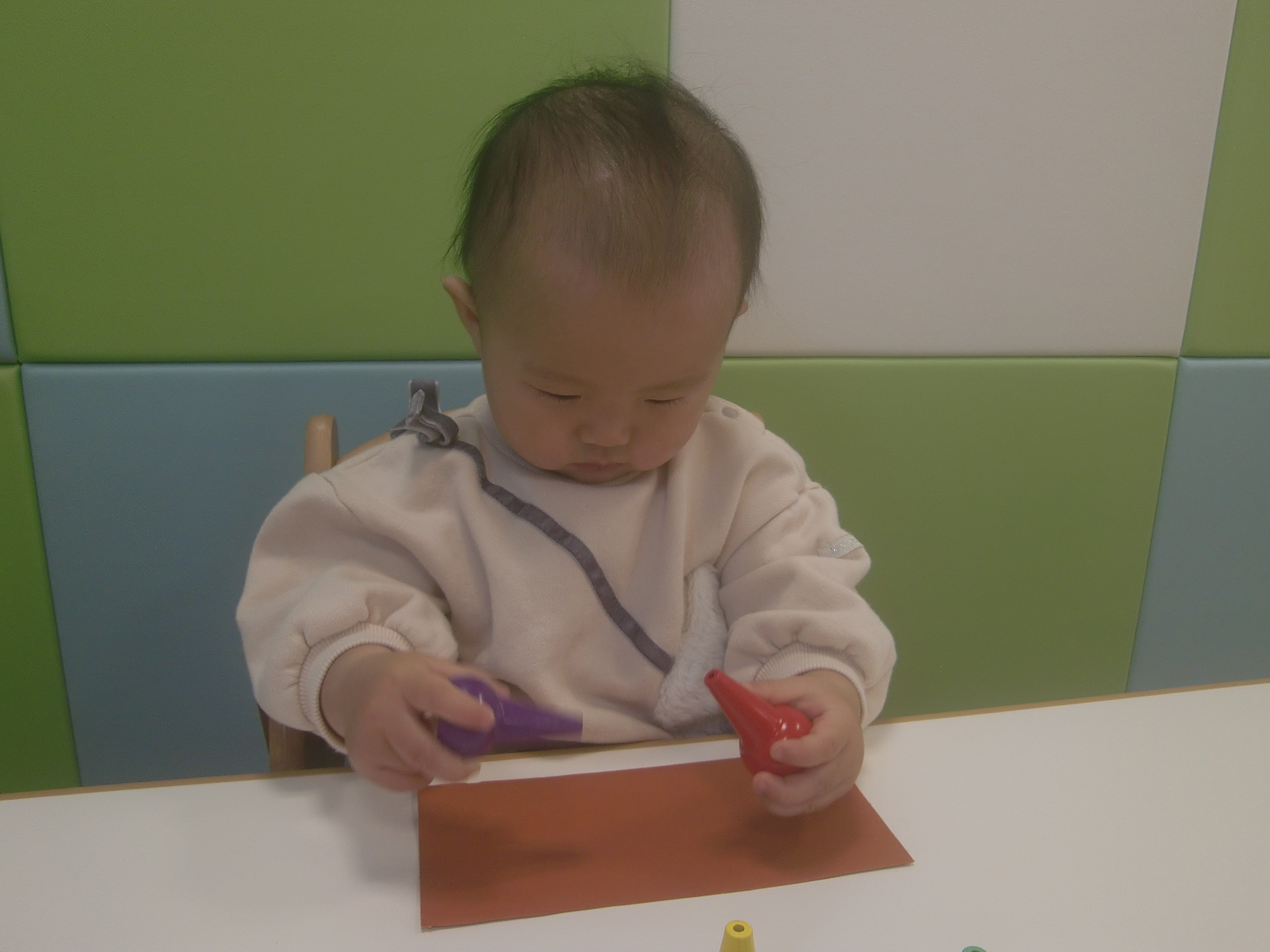思い思いに一通り書き終わると、みんなクレヨンを重ねて遊んでいました![]()