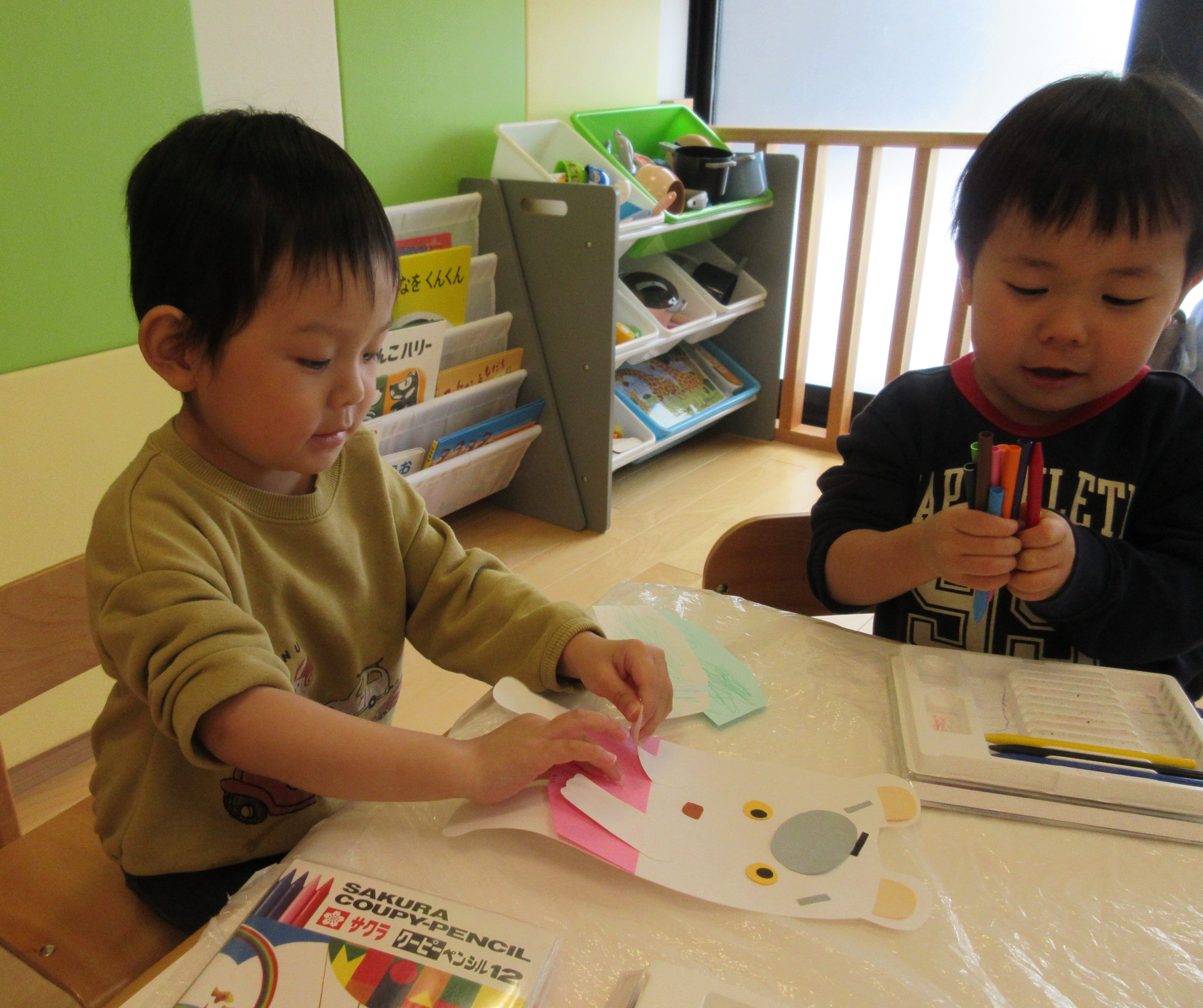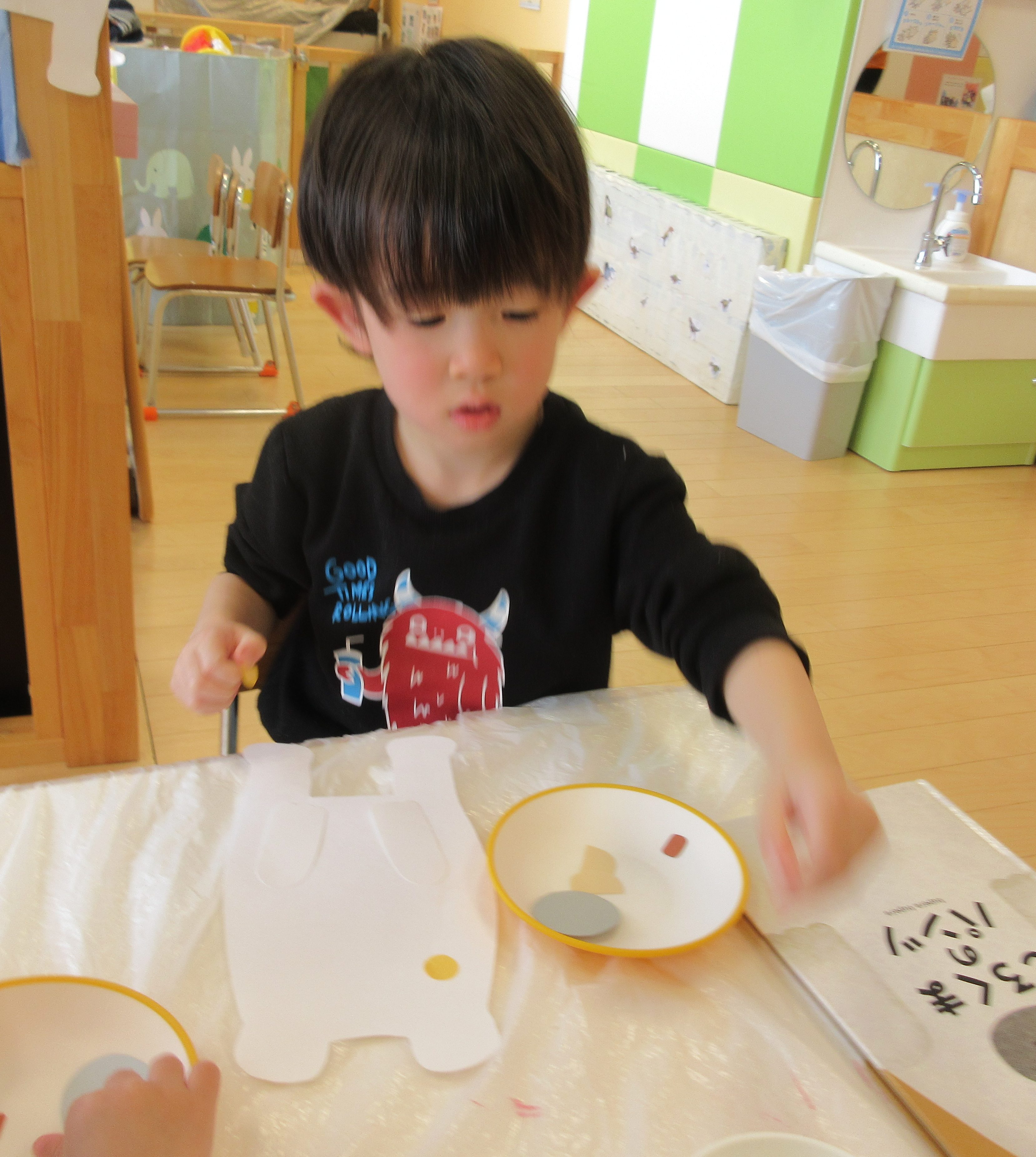 久しぶりのシール貼りでしたが、すぐにコツを掴んでペタペタと貼っていましたよ![]()