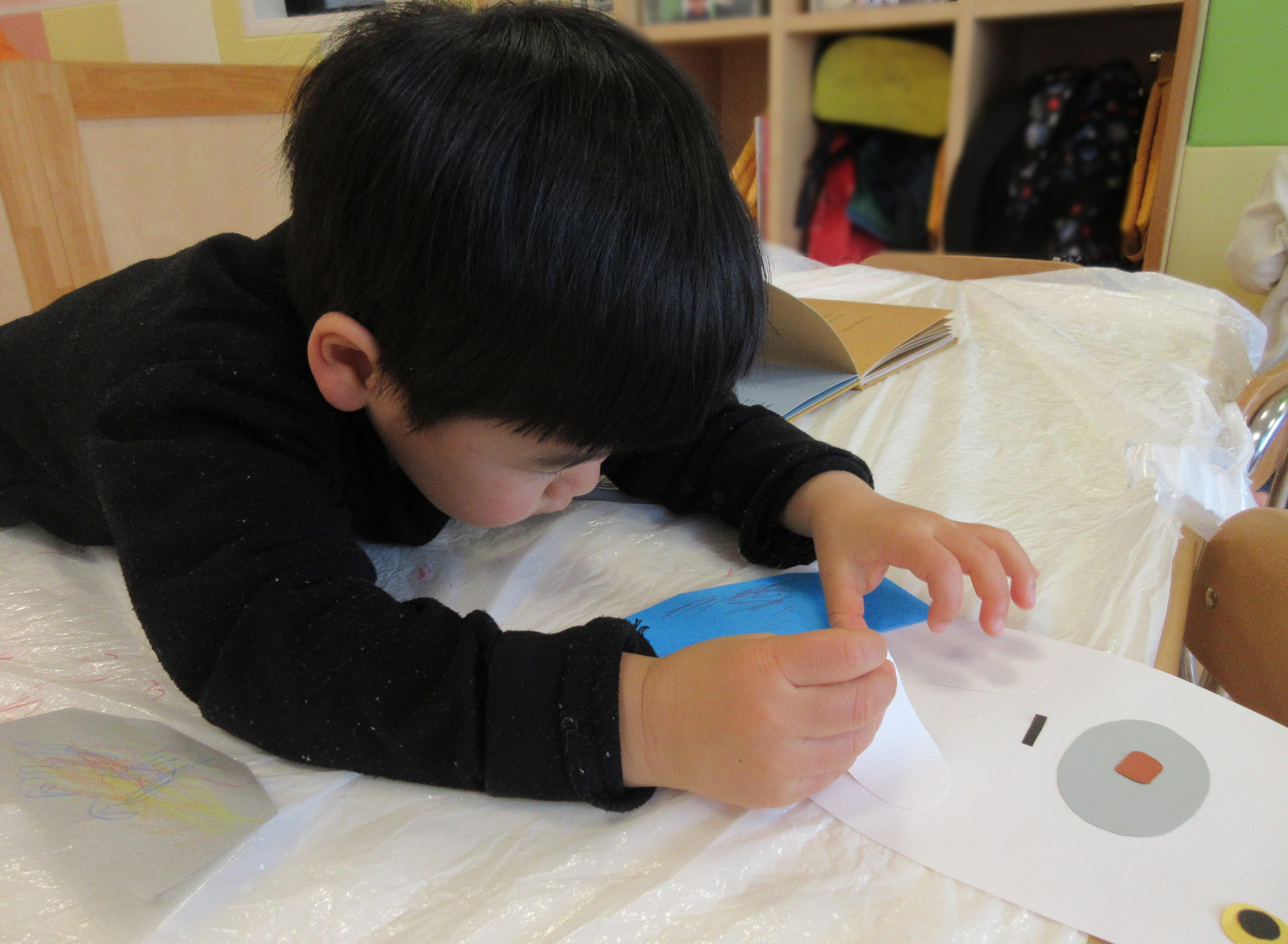 小さなお顔のパーツを、それぞれの好きな場所へ貼り付けていきます![]()