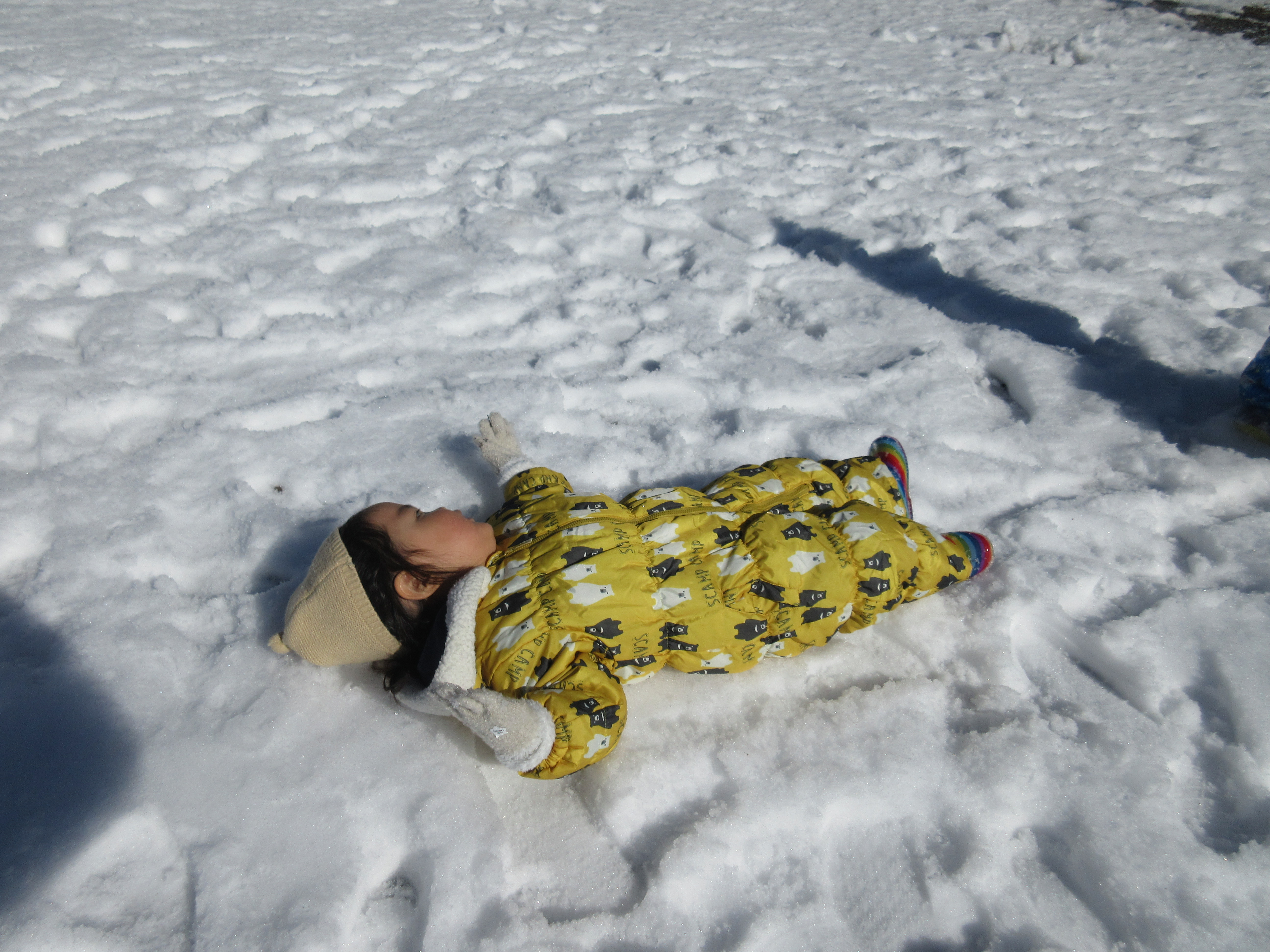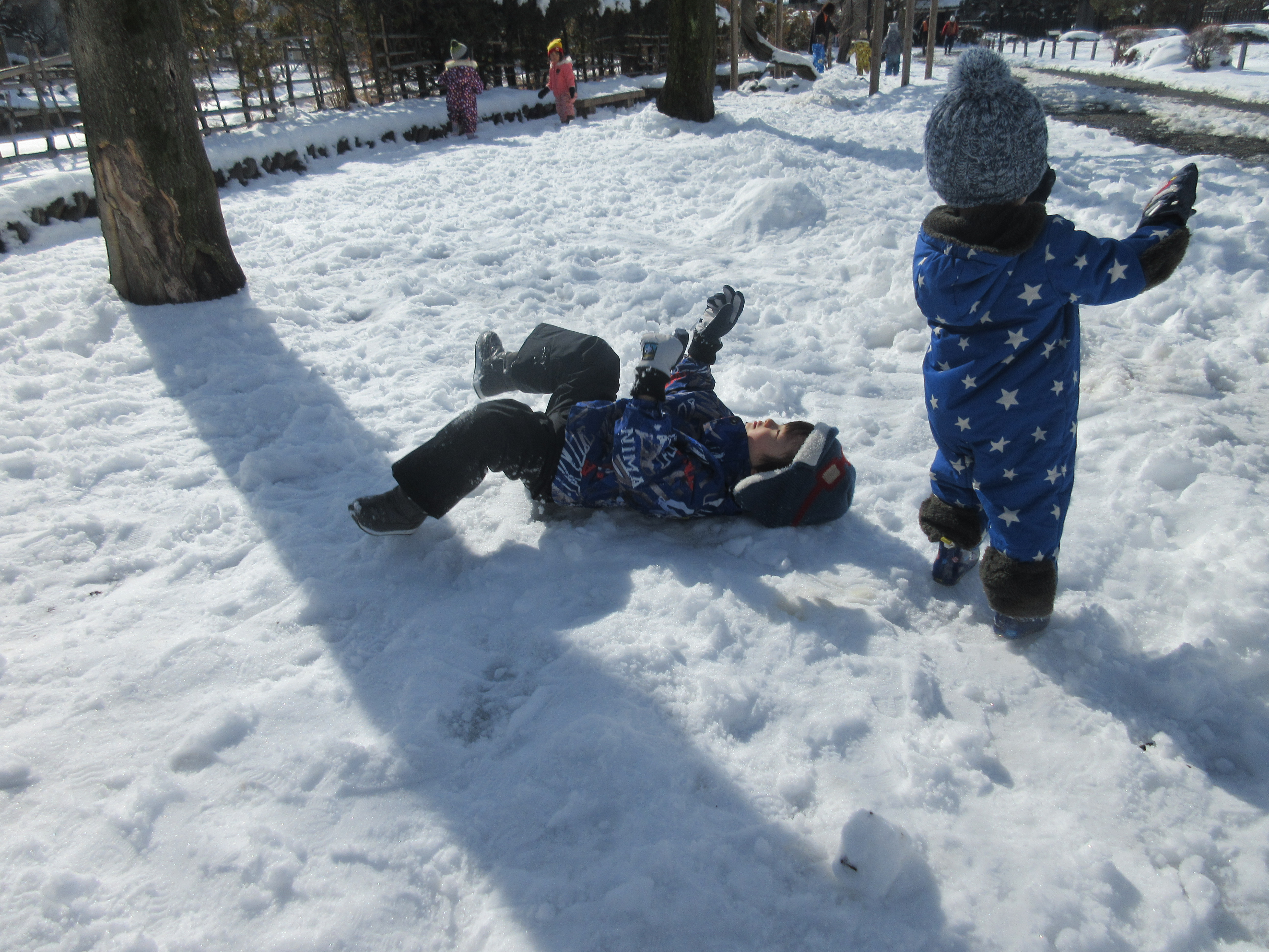 ⇩雪の上で寝てみる子もいて全身で雪を楽しんでいました![]()