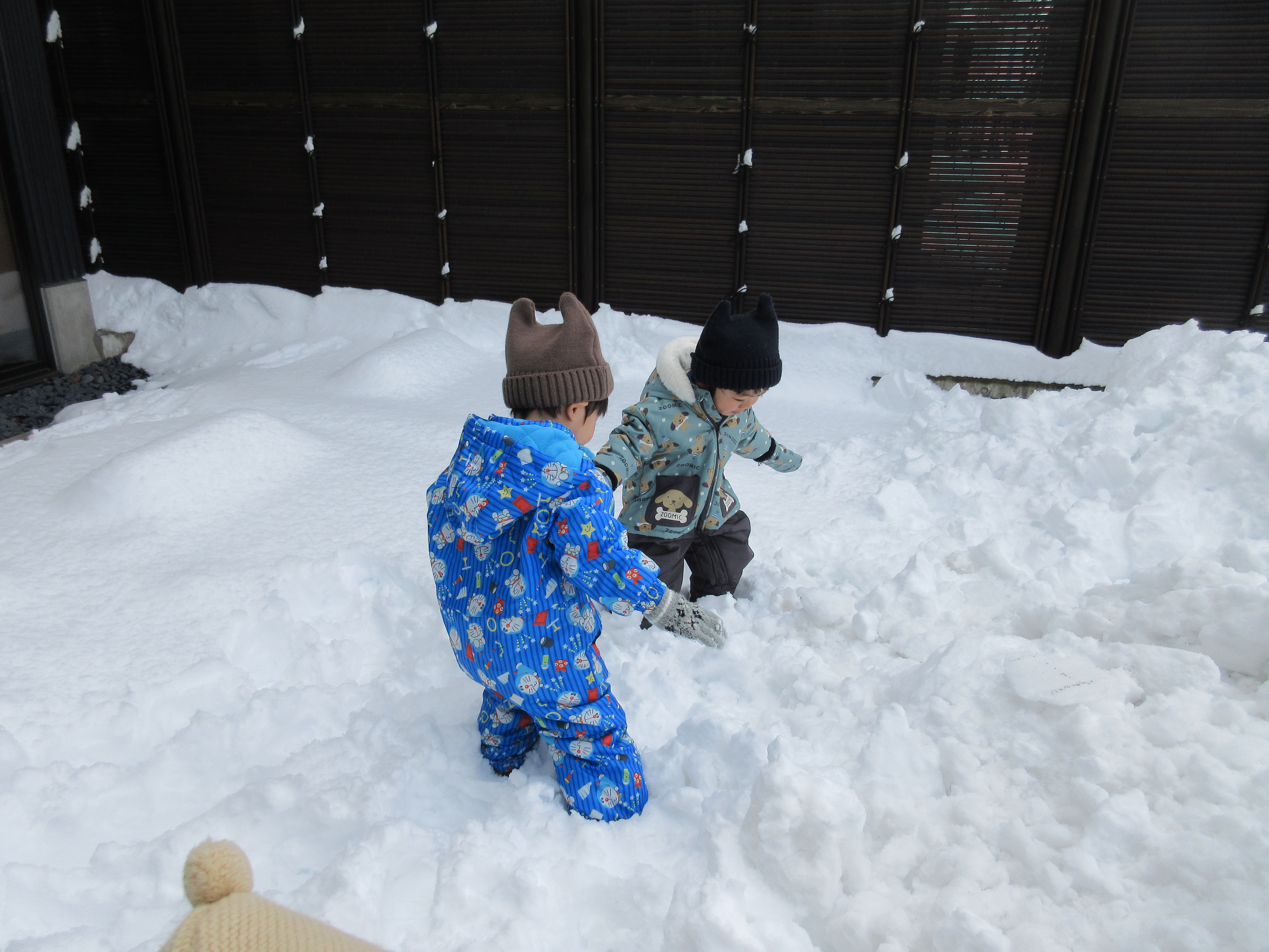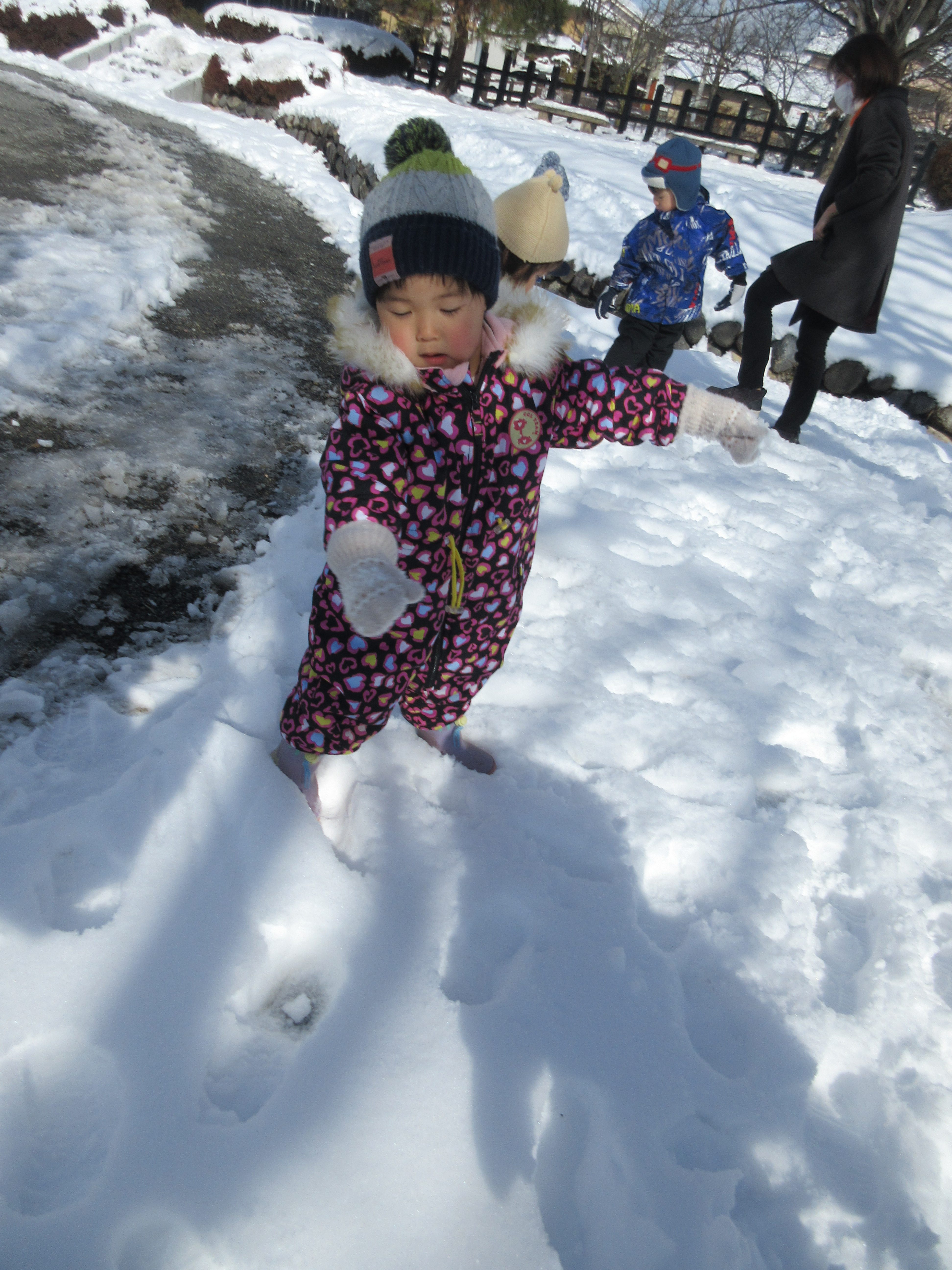 たくさんの雪に大はしゃぎなりんごぐみさんたちでした![]()