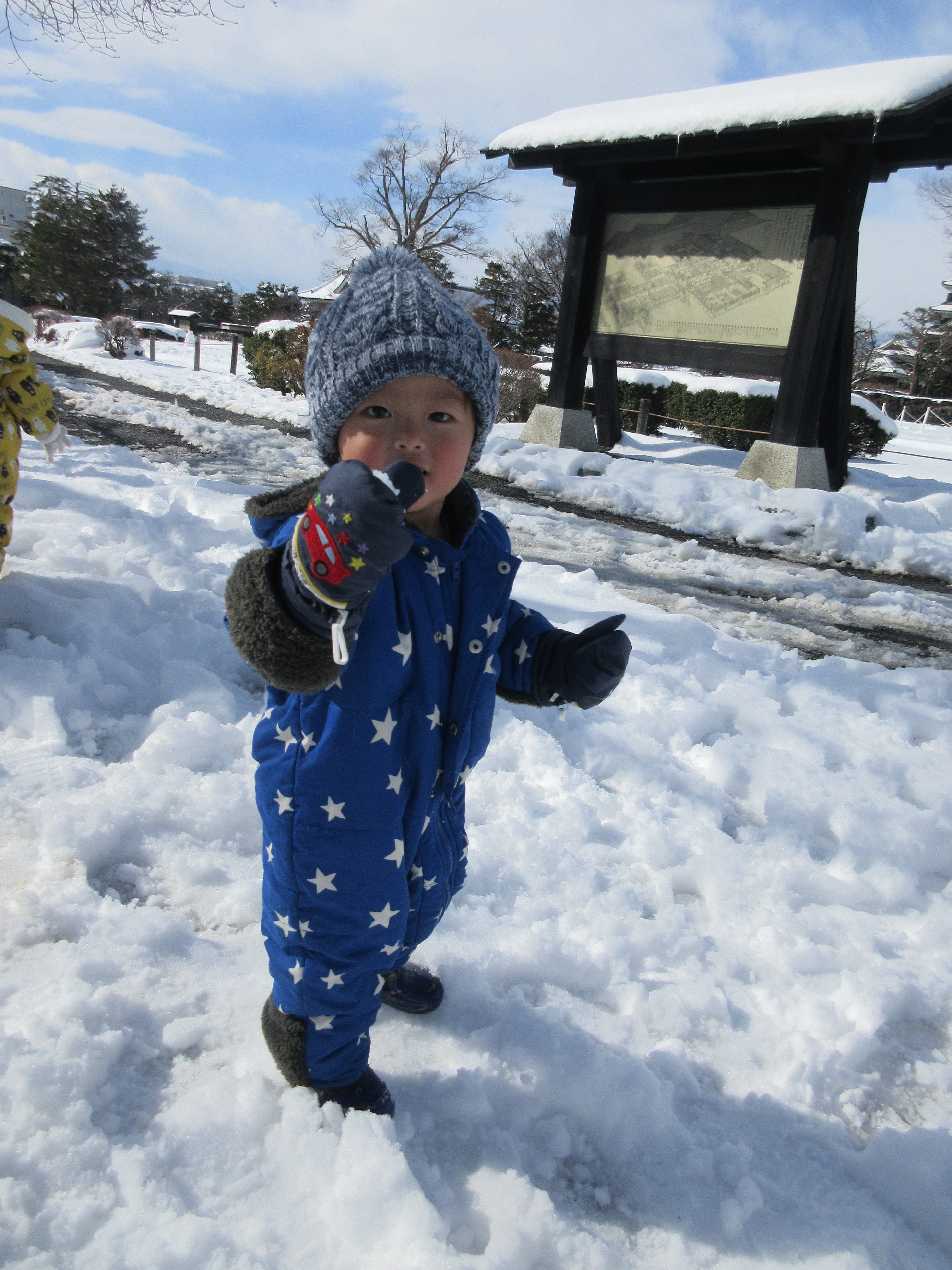 今週は大雪が積もったので、松本城へ雪遊びにもいってきました![]()