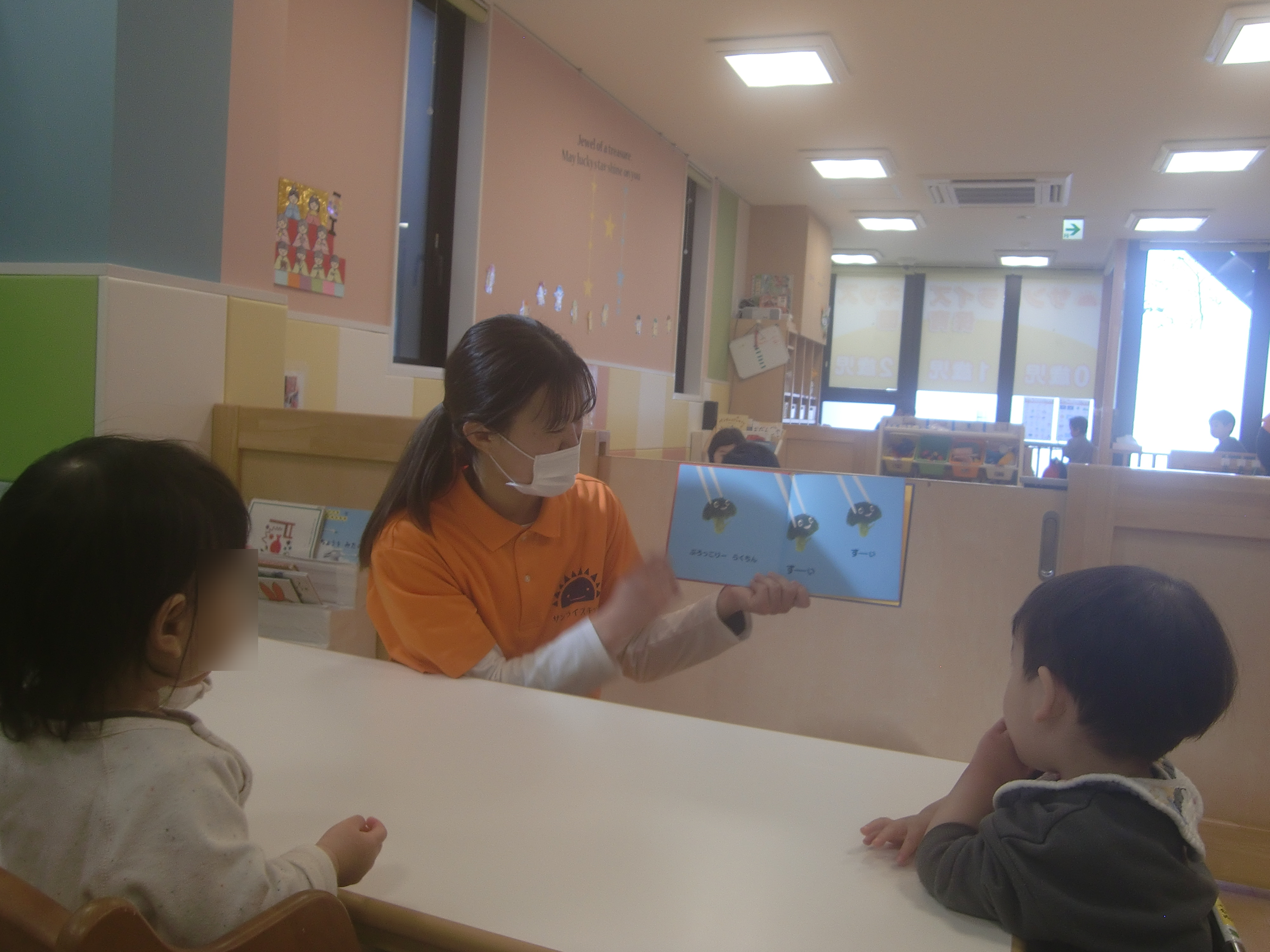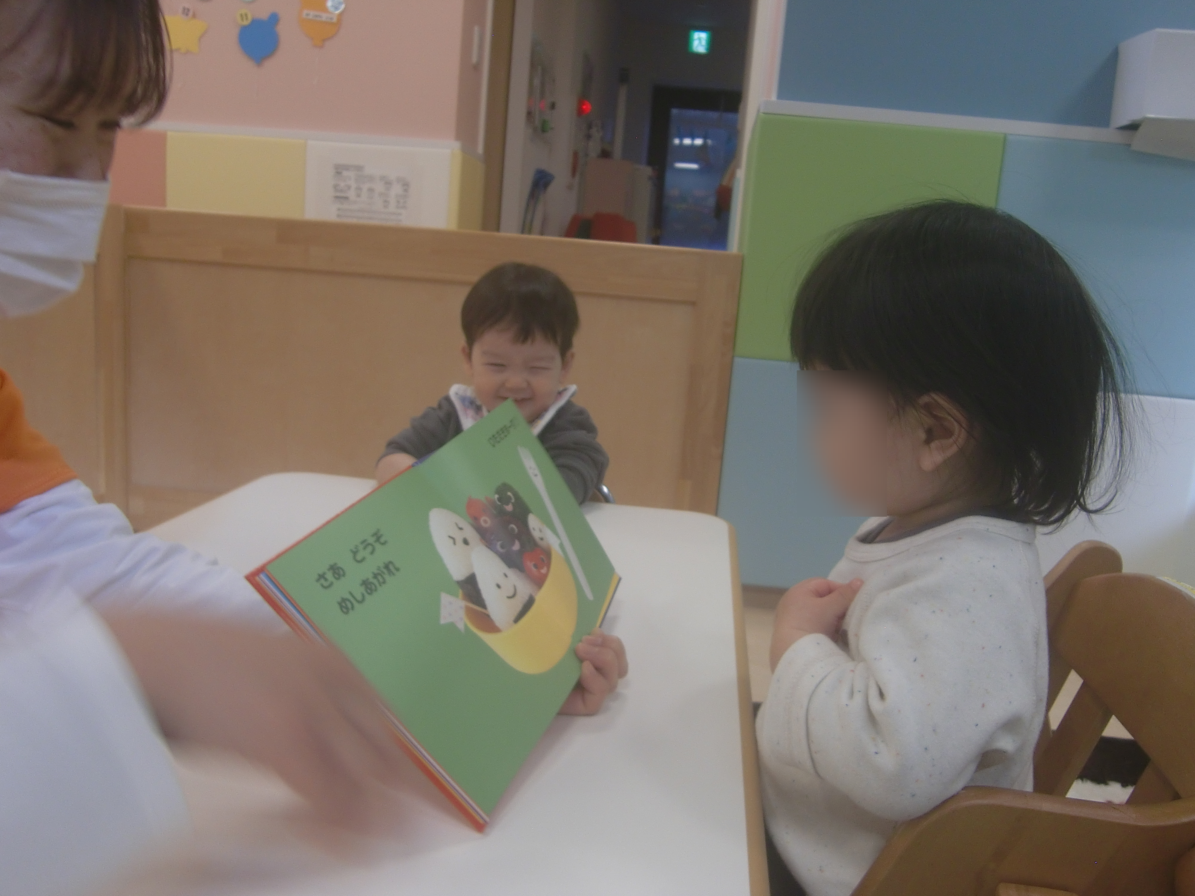 コロコロと転がる擬音では、子どもたちも一緒になって「コロコロ~」と言って一緒に絵本を楽しんでいます![]()