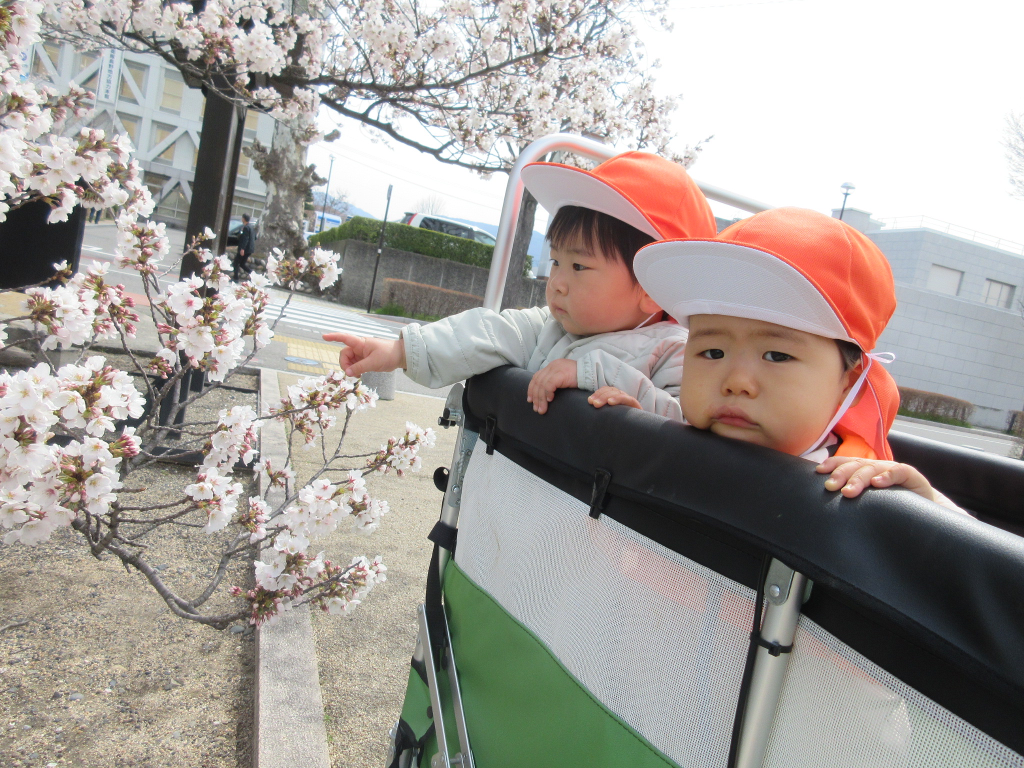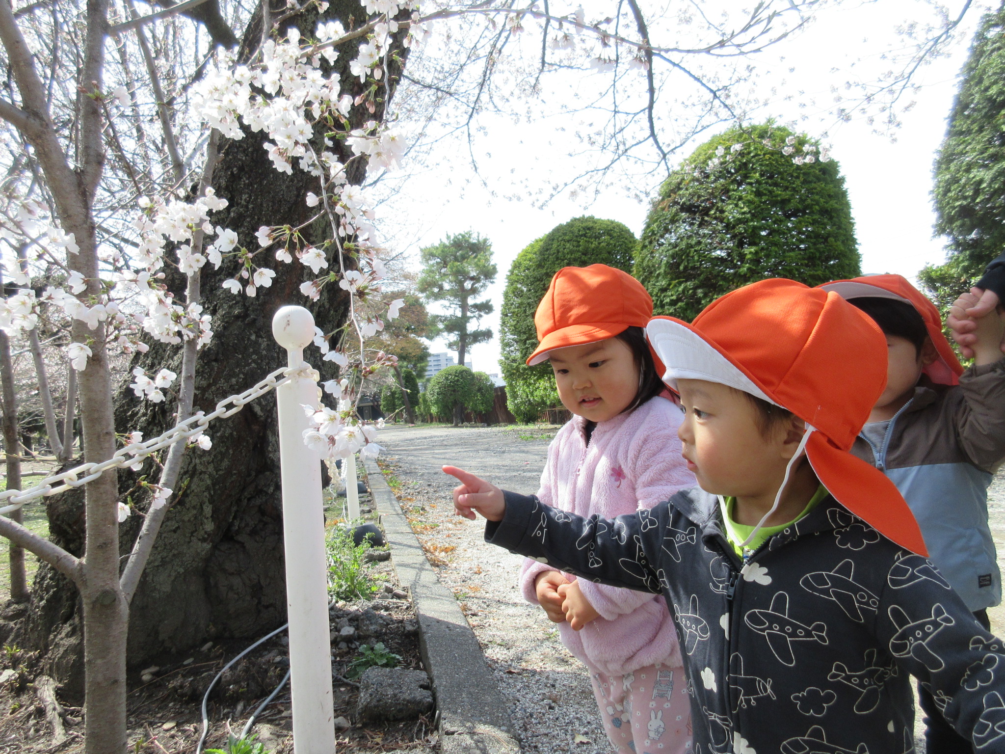 子どもたちも「おはなだ〜!」「さくら??」と興味津々です![]()