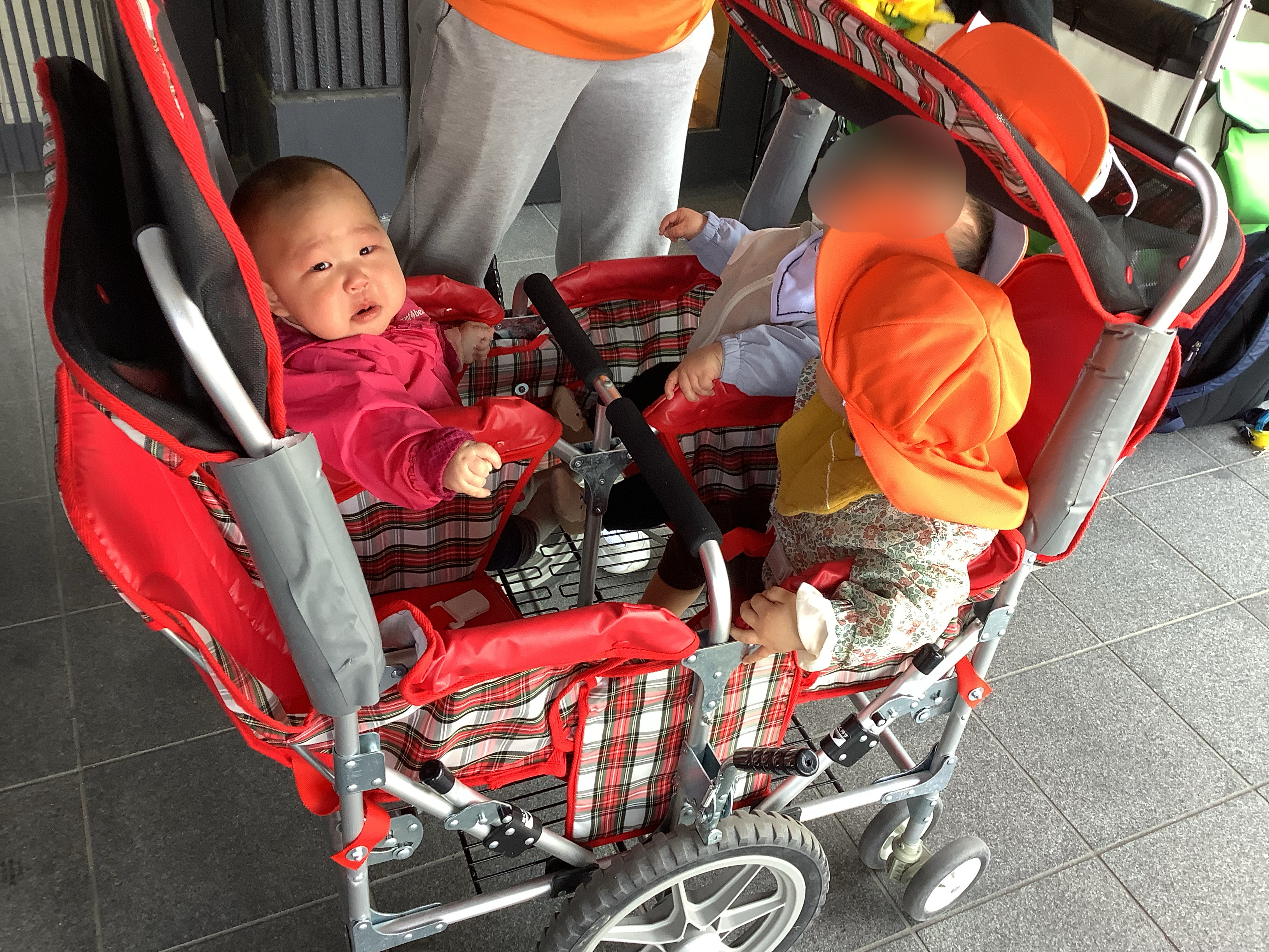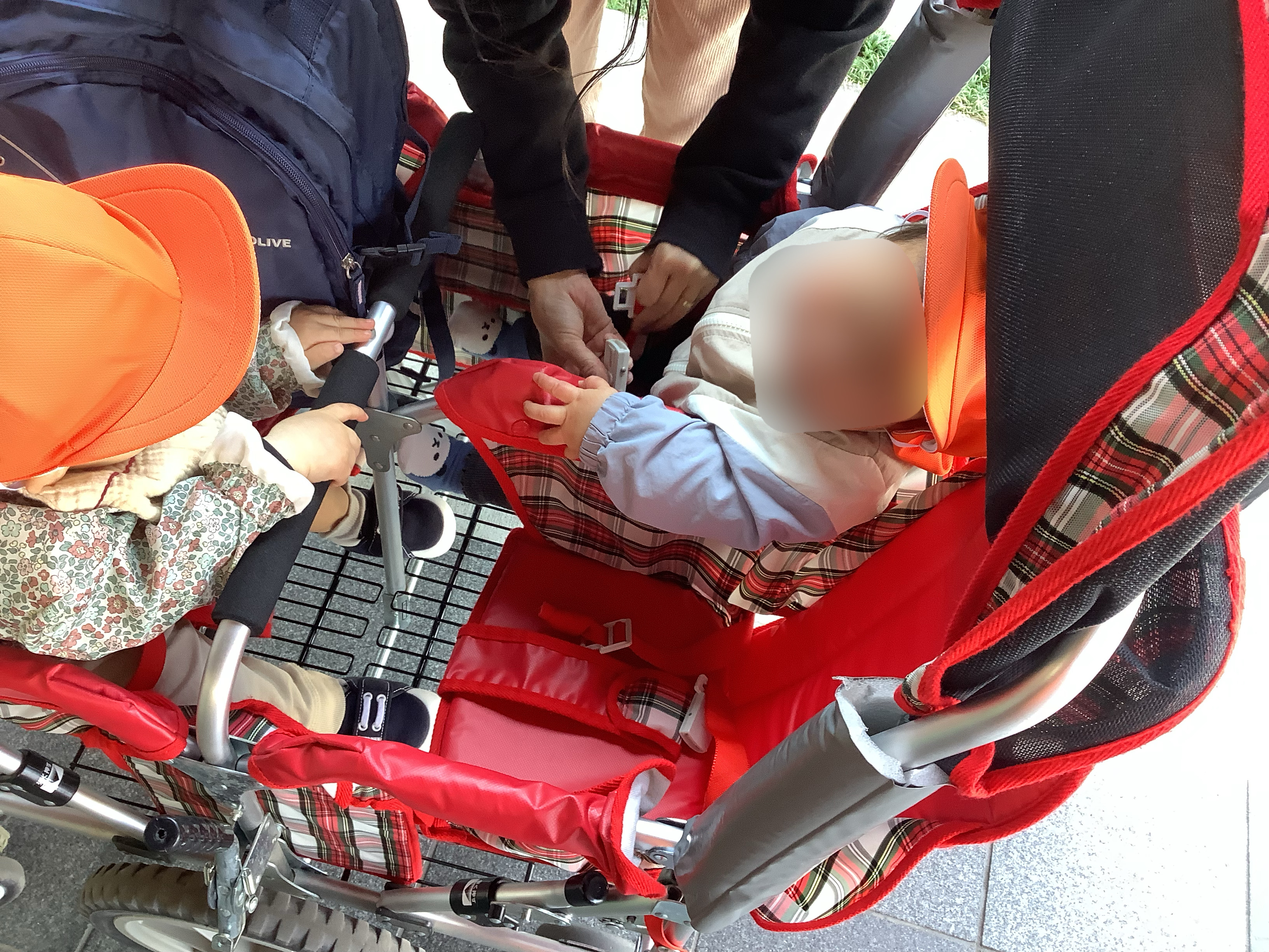 ↓カートから手を伸ばして指をさして見て見たり、(1人はカメラ目線になっていますが