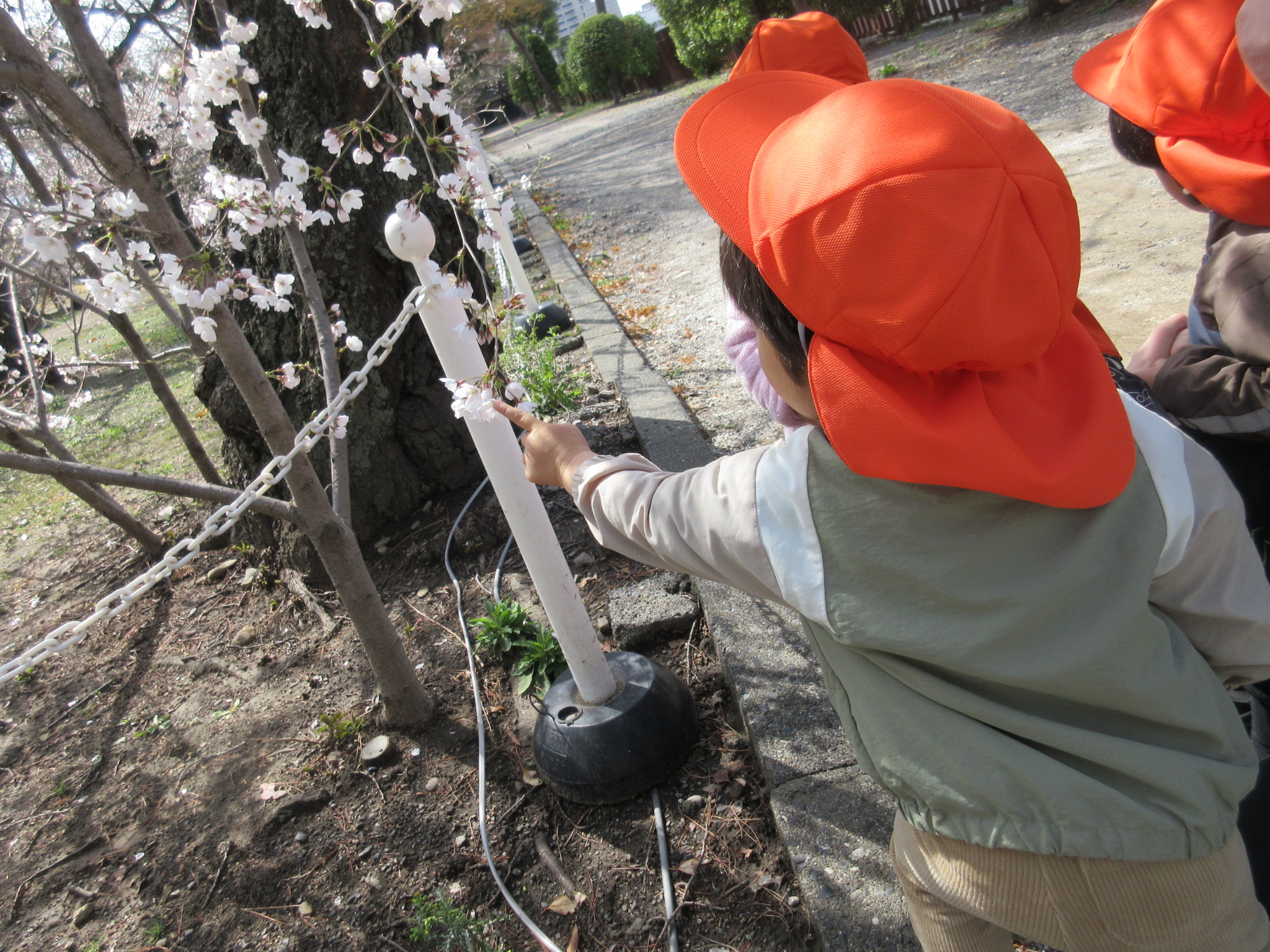 子どもたちの目線に咲いている桜を発見すると⇩