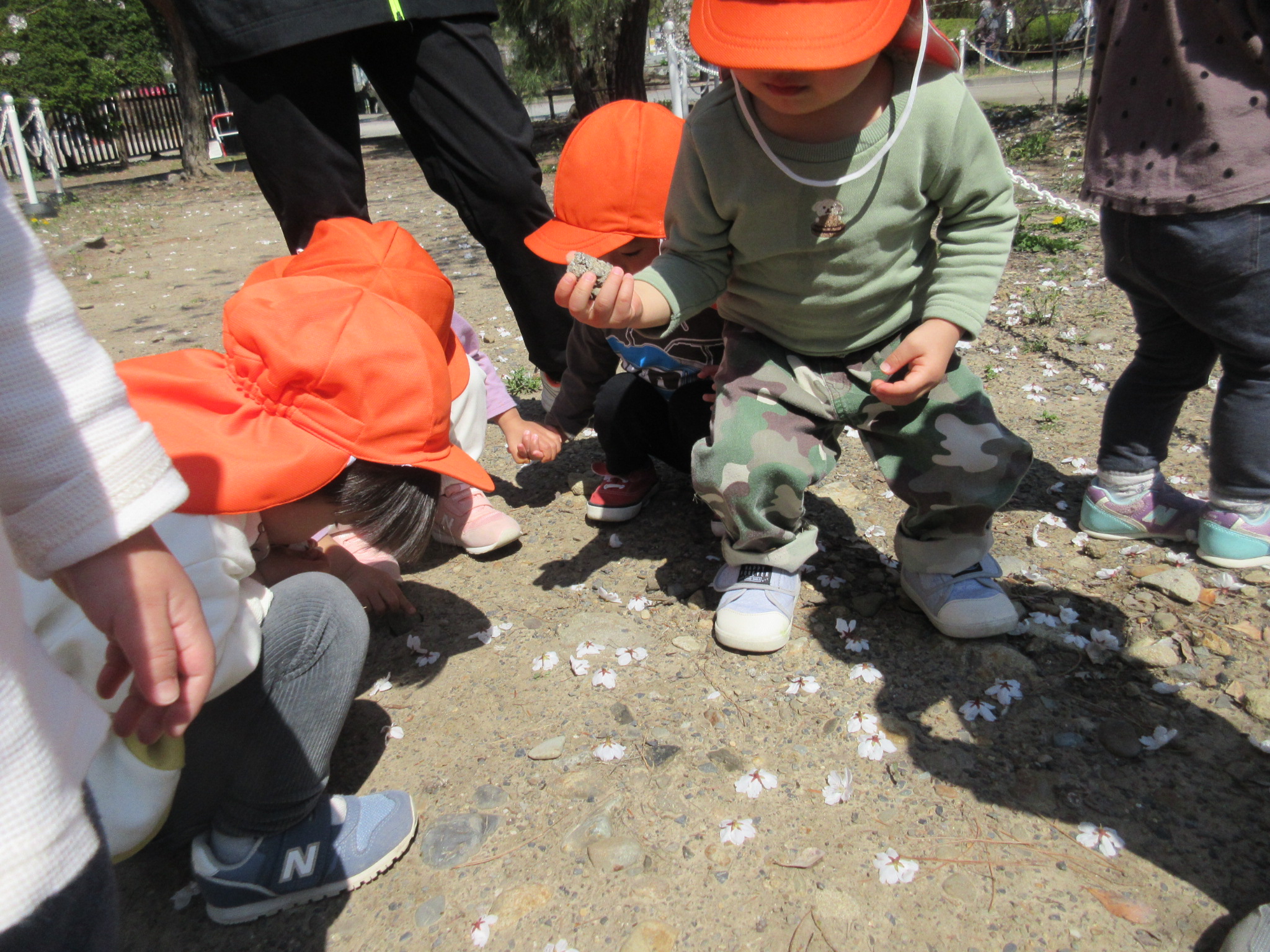 また地面に落ちていた桜の花びらを集める子もいました。