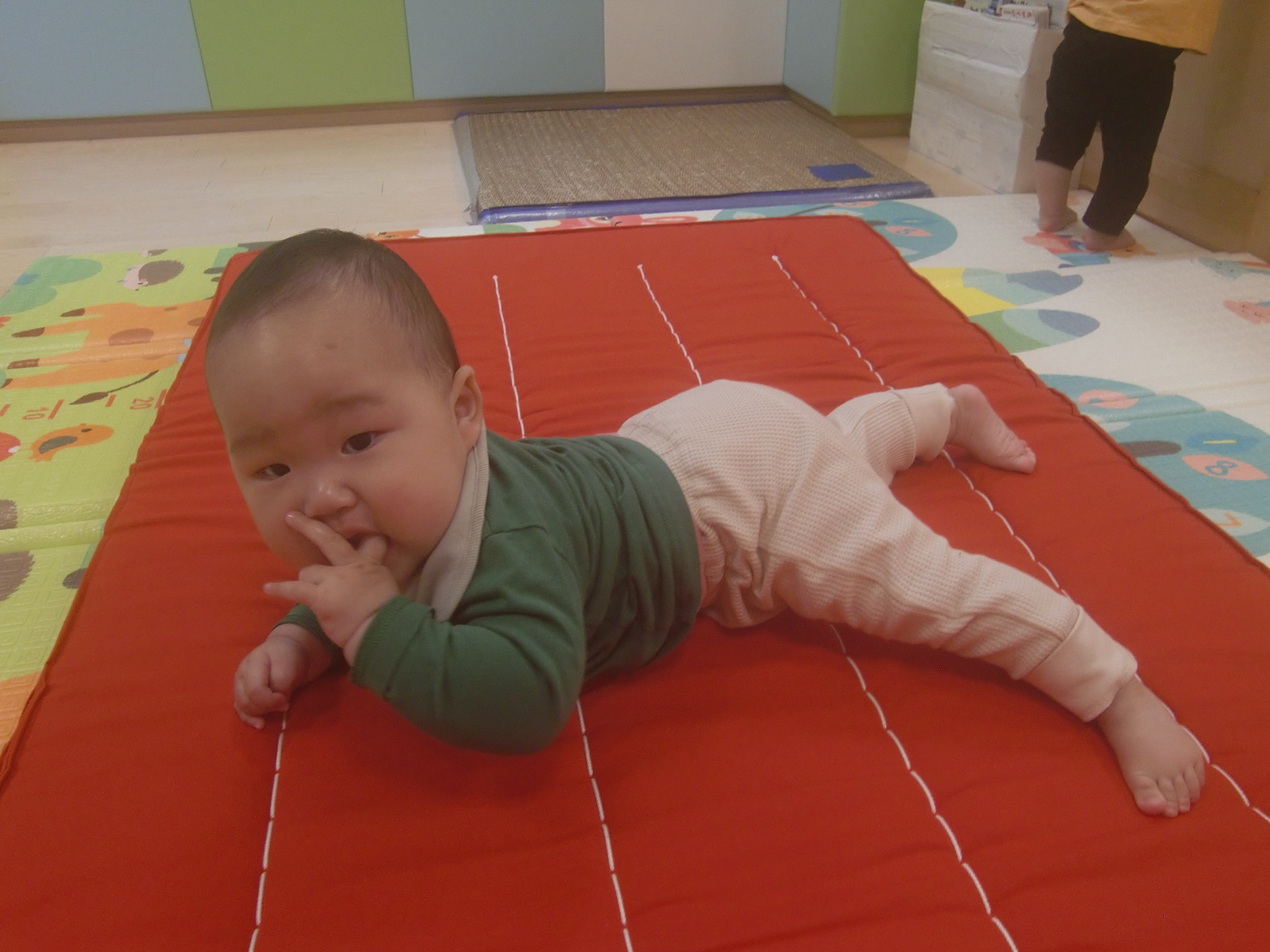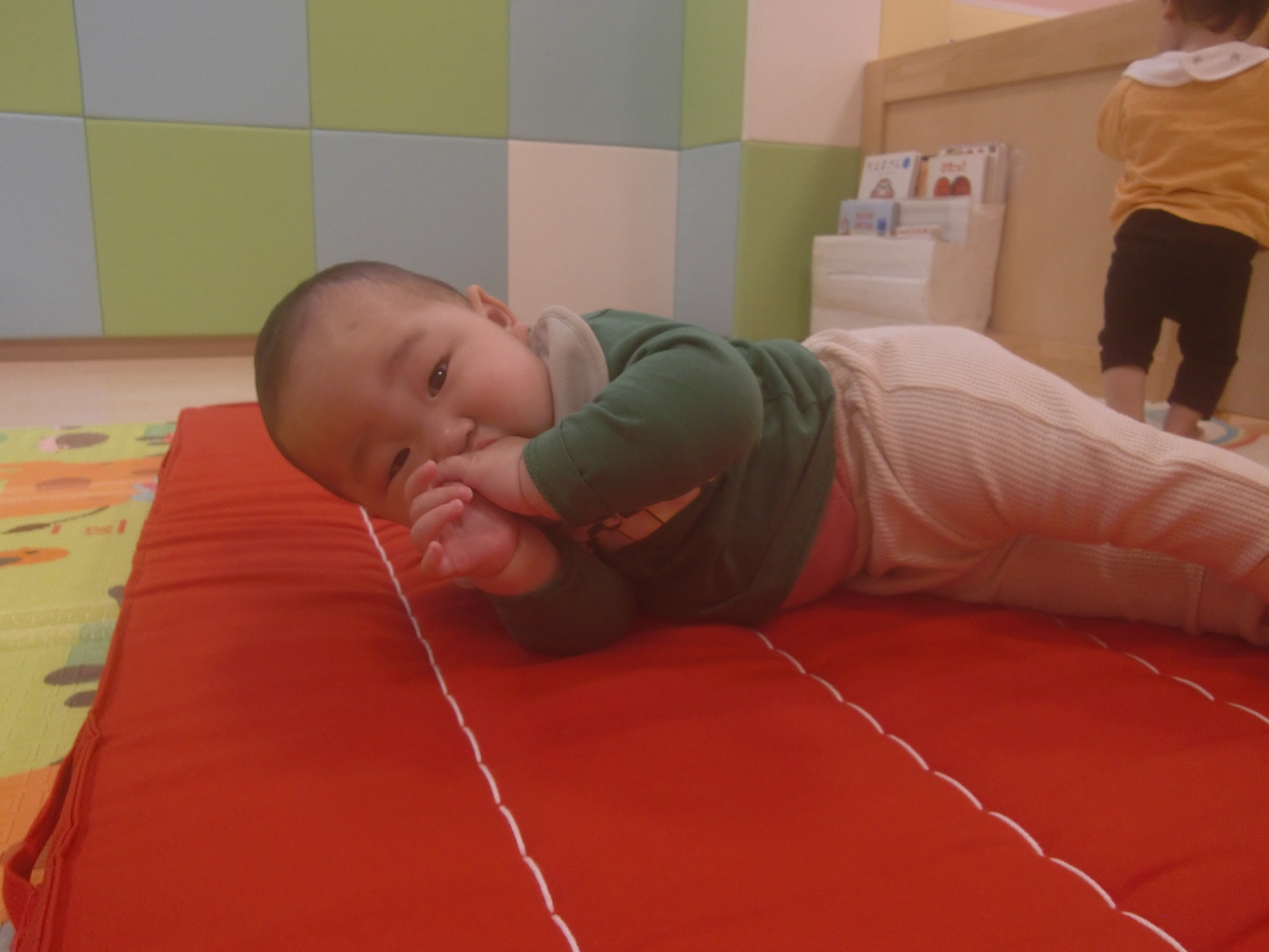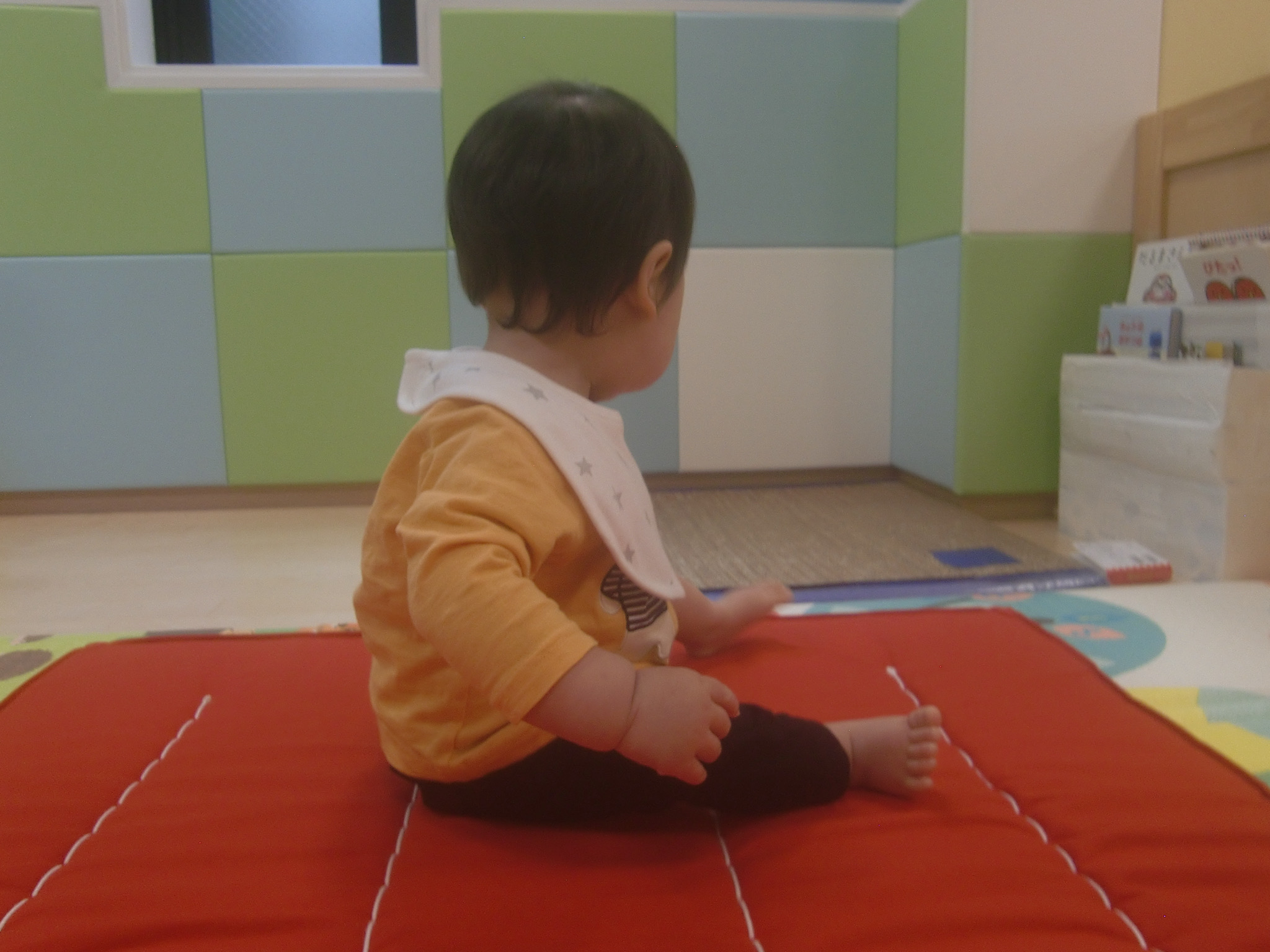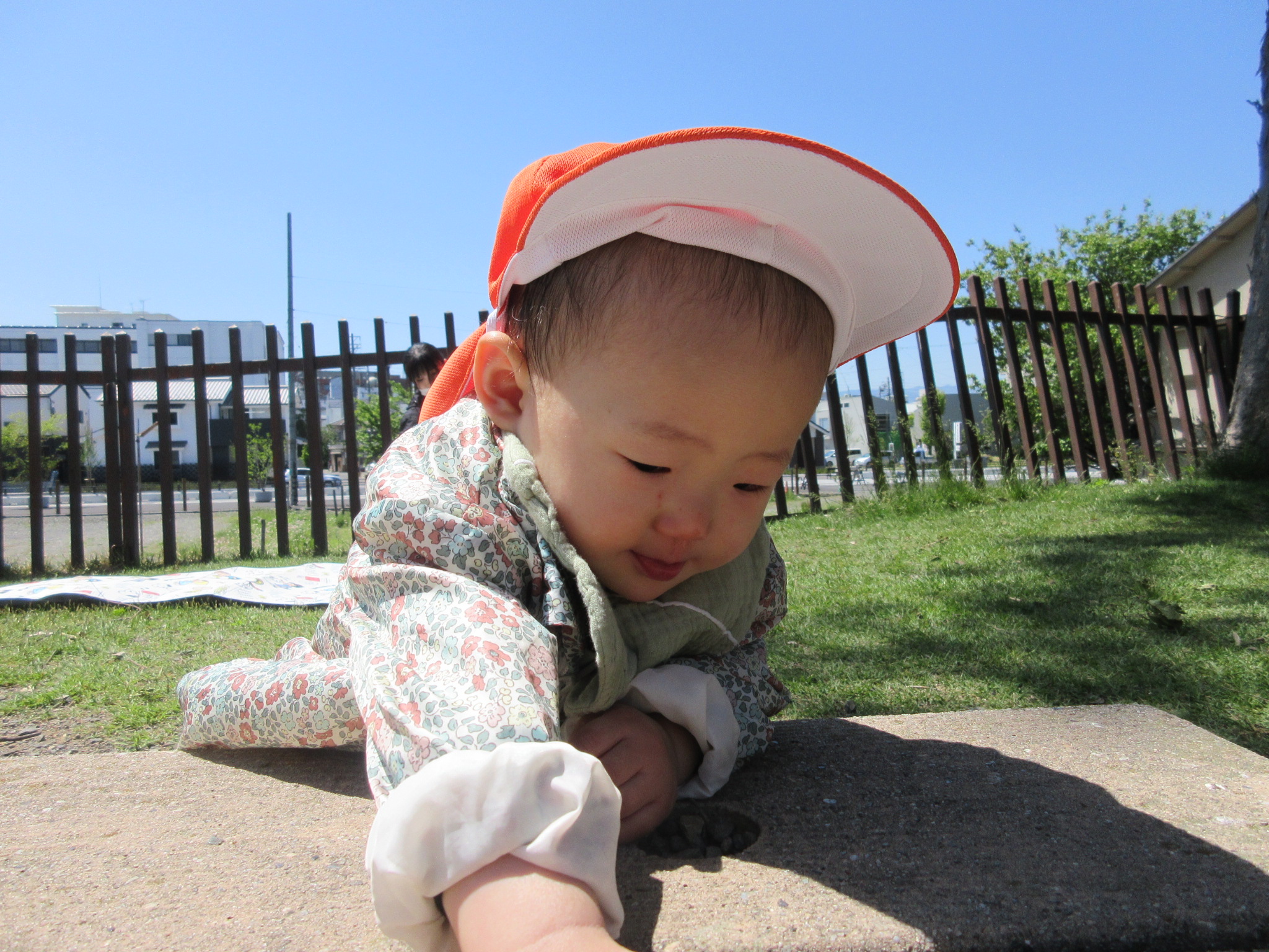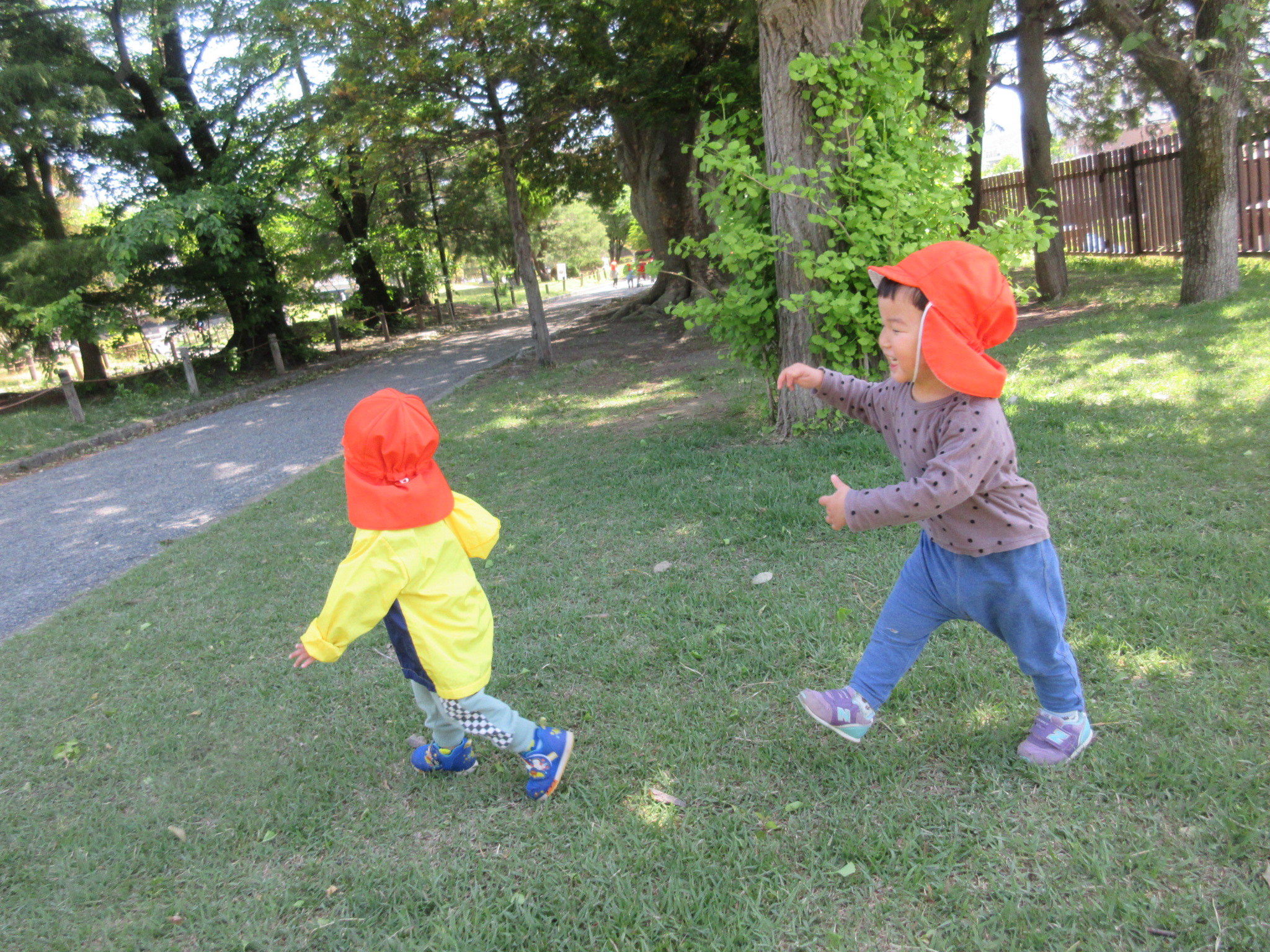 ↓また、以前はハイハイをしていた子も歩くことができるようになり、以前とは違った目線、景色で楽しんでいました![]()