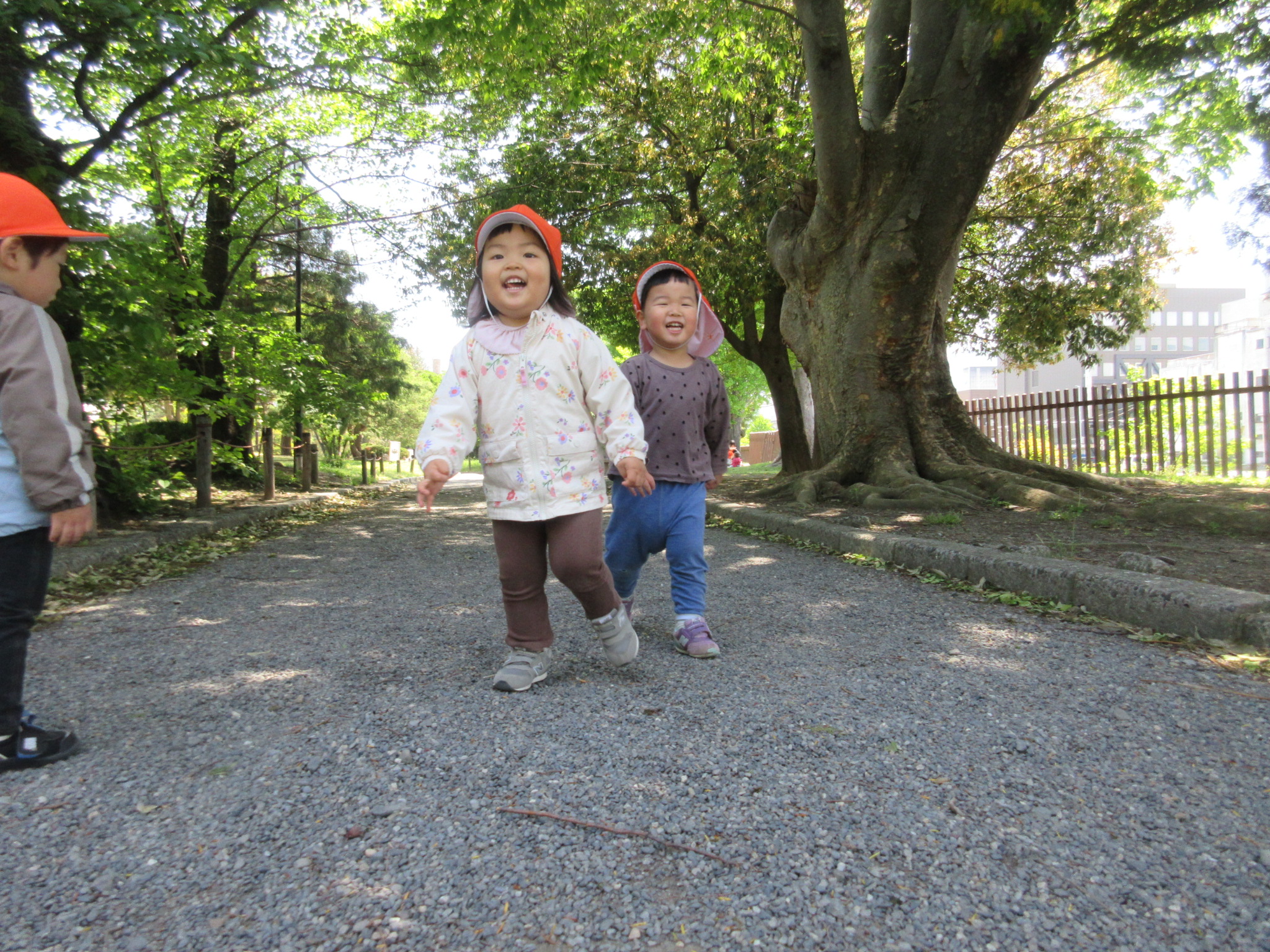↓また、友だちと砂利道で追いかけっこをして楽しむ姿もありました。