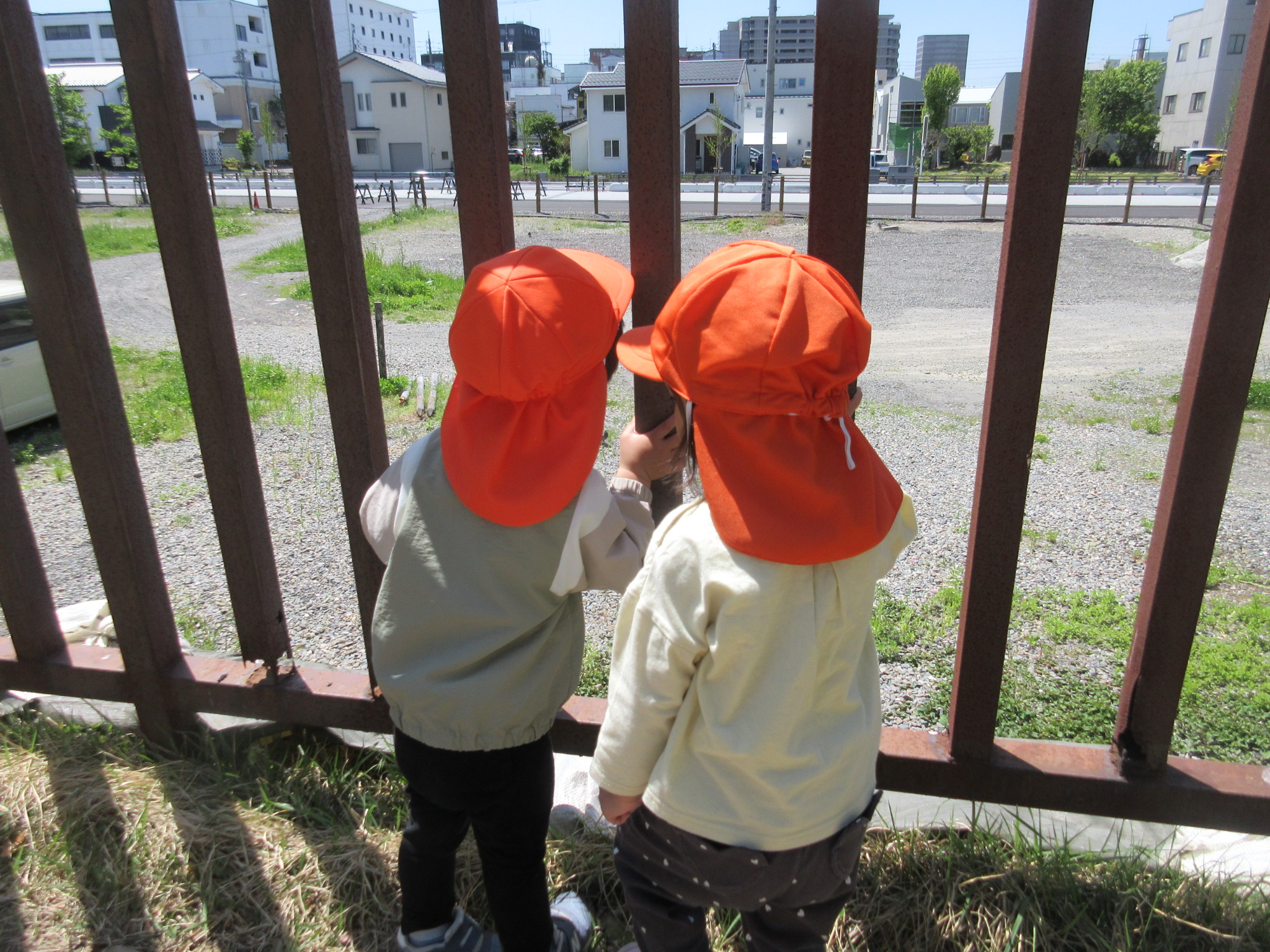 車来るかな〜?と覗いています![]()