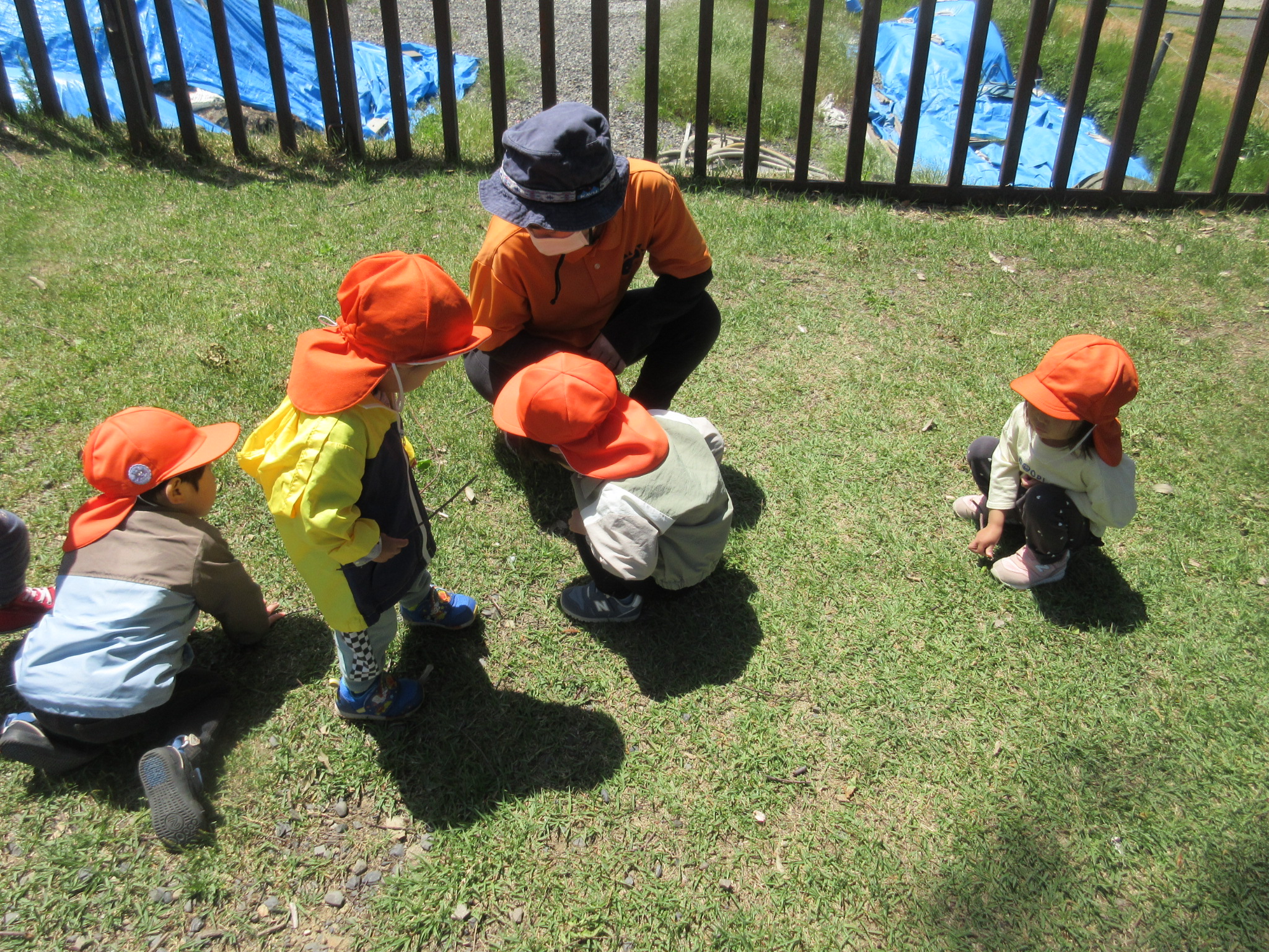 「アリさんいるかな〜?」「てんとう虫いるかな?」「虫さんいた!」など沢山の声が聞こえてきました![]()
