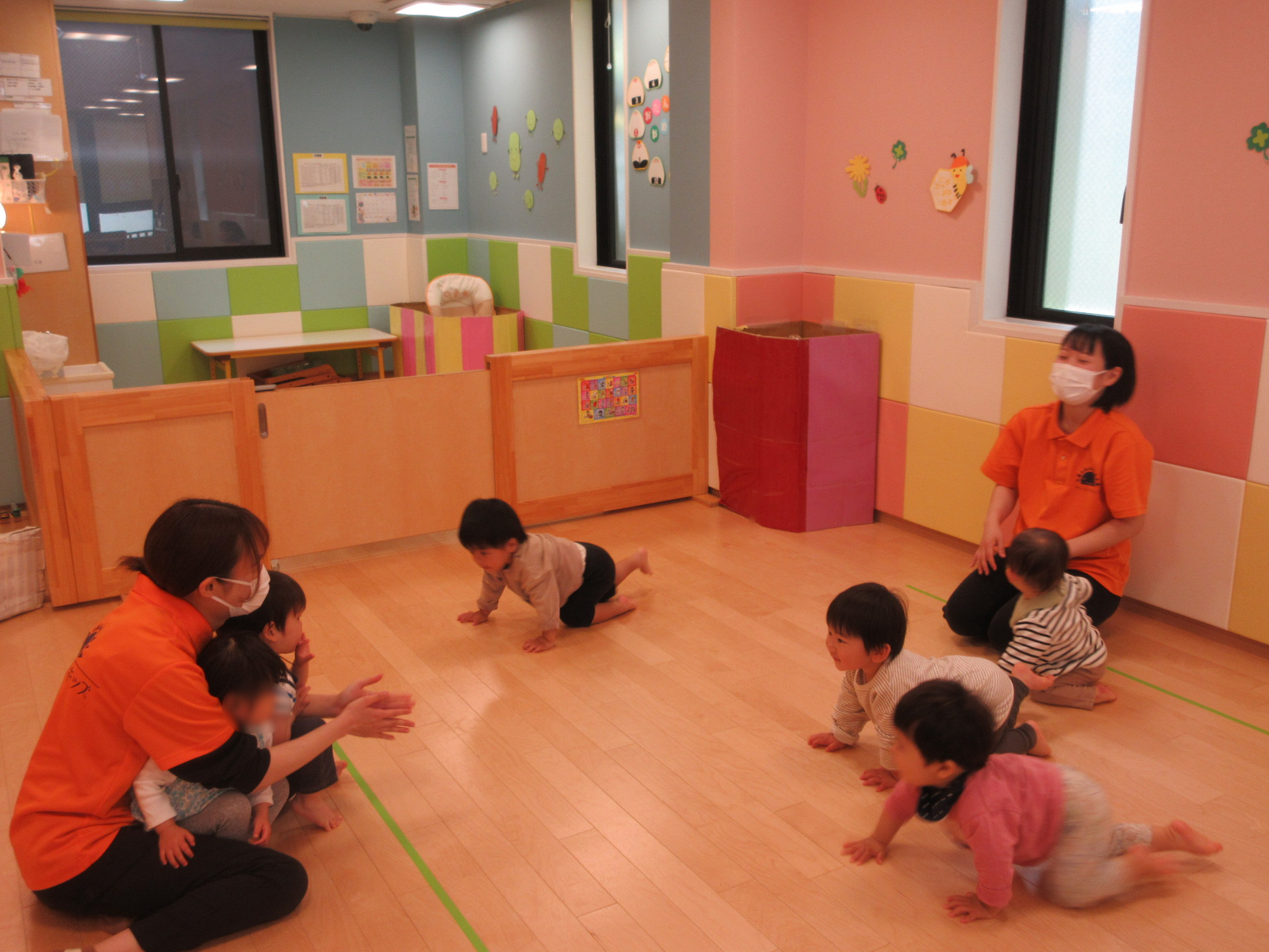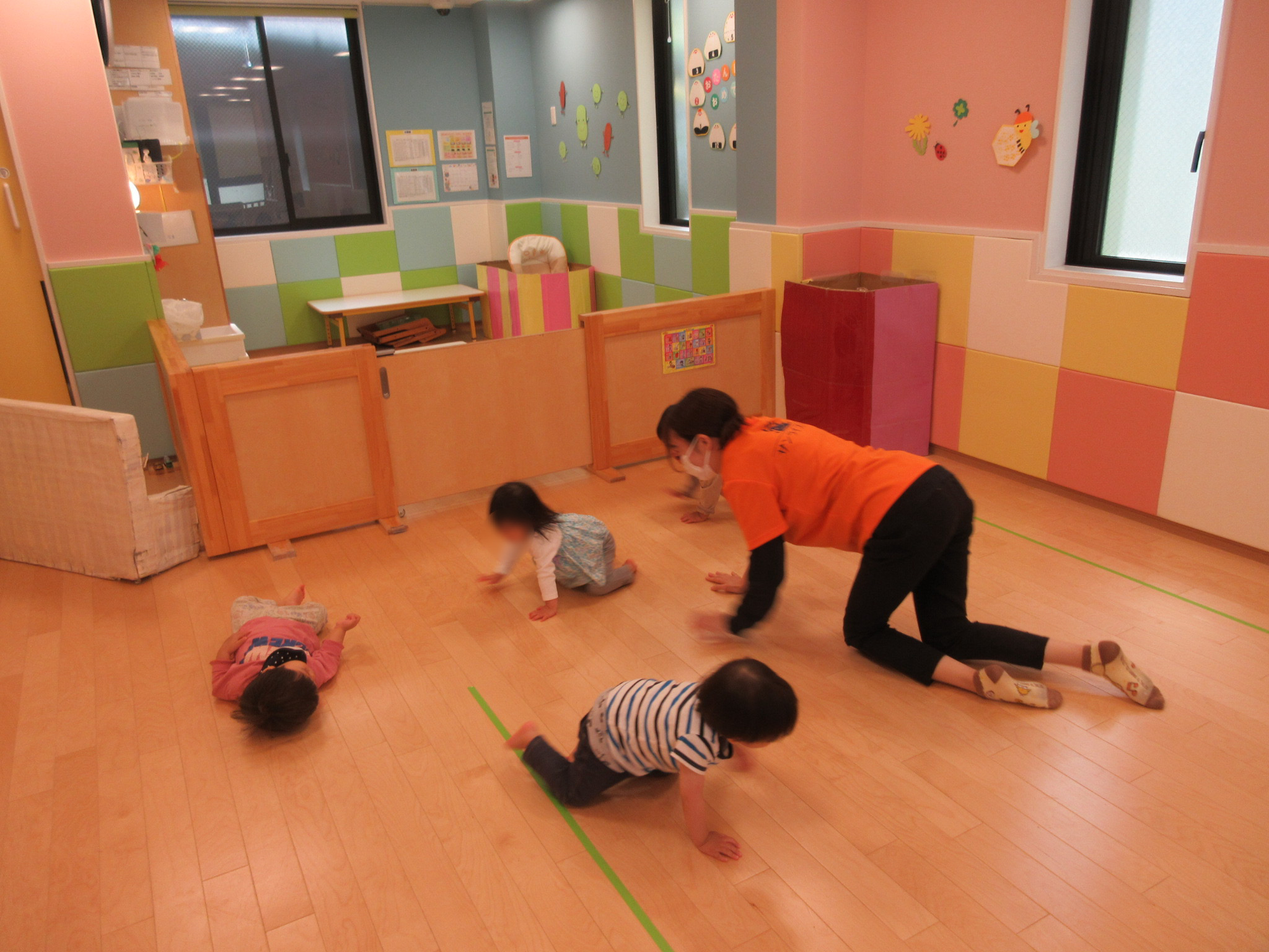 5月も後半になり、カリキュラムに慣れてきたのか、保育士の真似をしたり、のびのび体を動かしたりしている姿が多くみられました