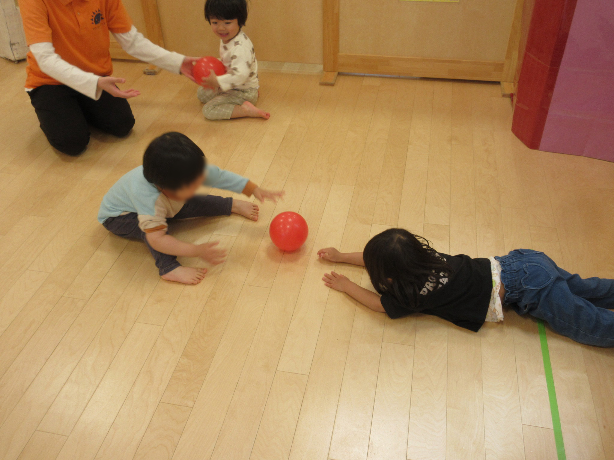 お友だちにボールをどうぞ!上手にコロコロ転がして渡すことができましたよ![]()