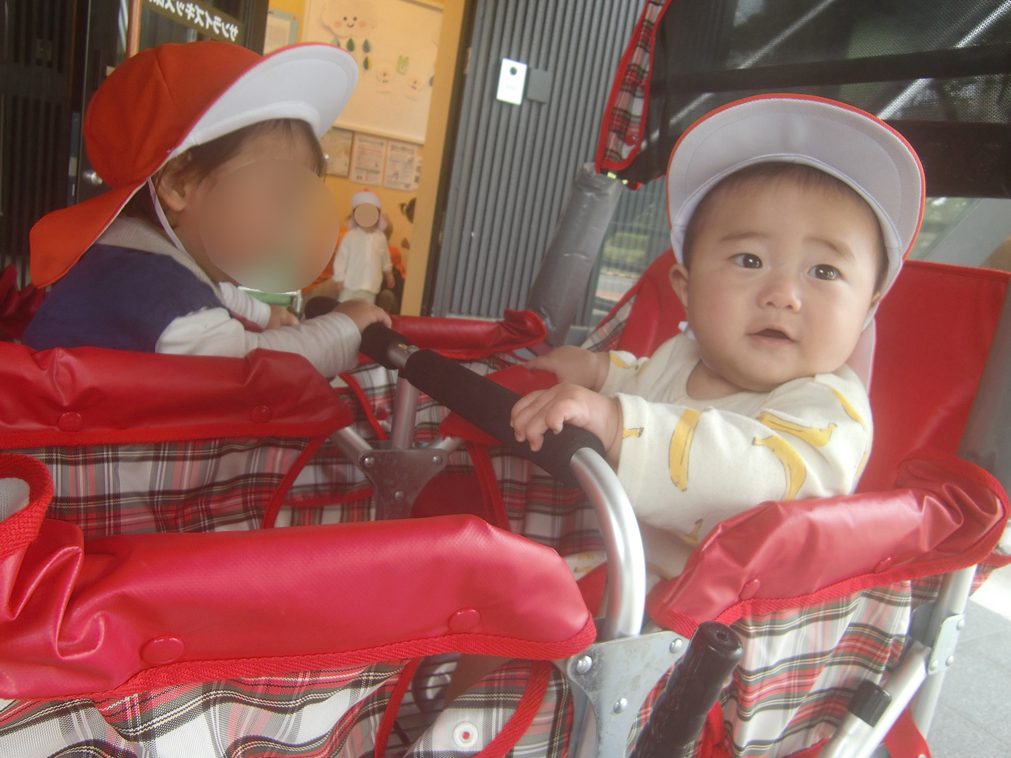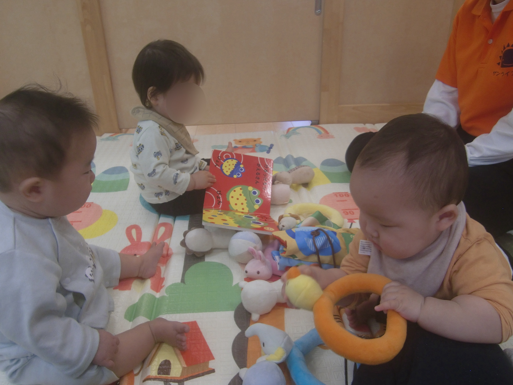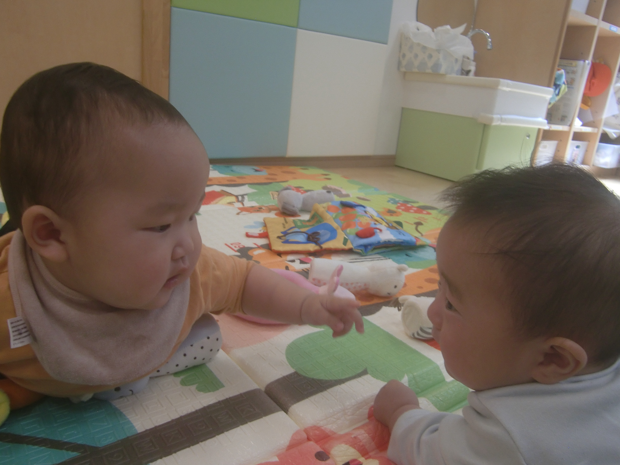 ↓お友だちに興味を示してじっと見つめたり、手を伸ばしてみようとする姿がありました![]()